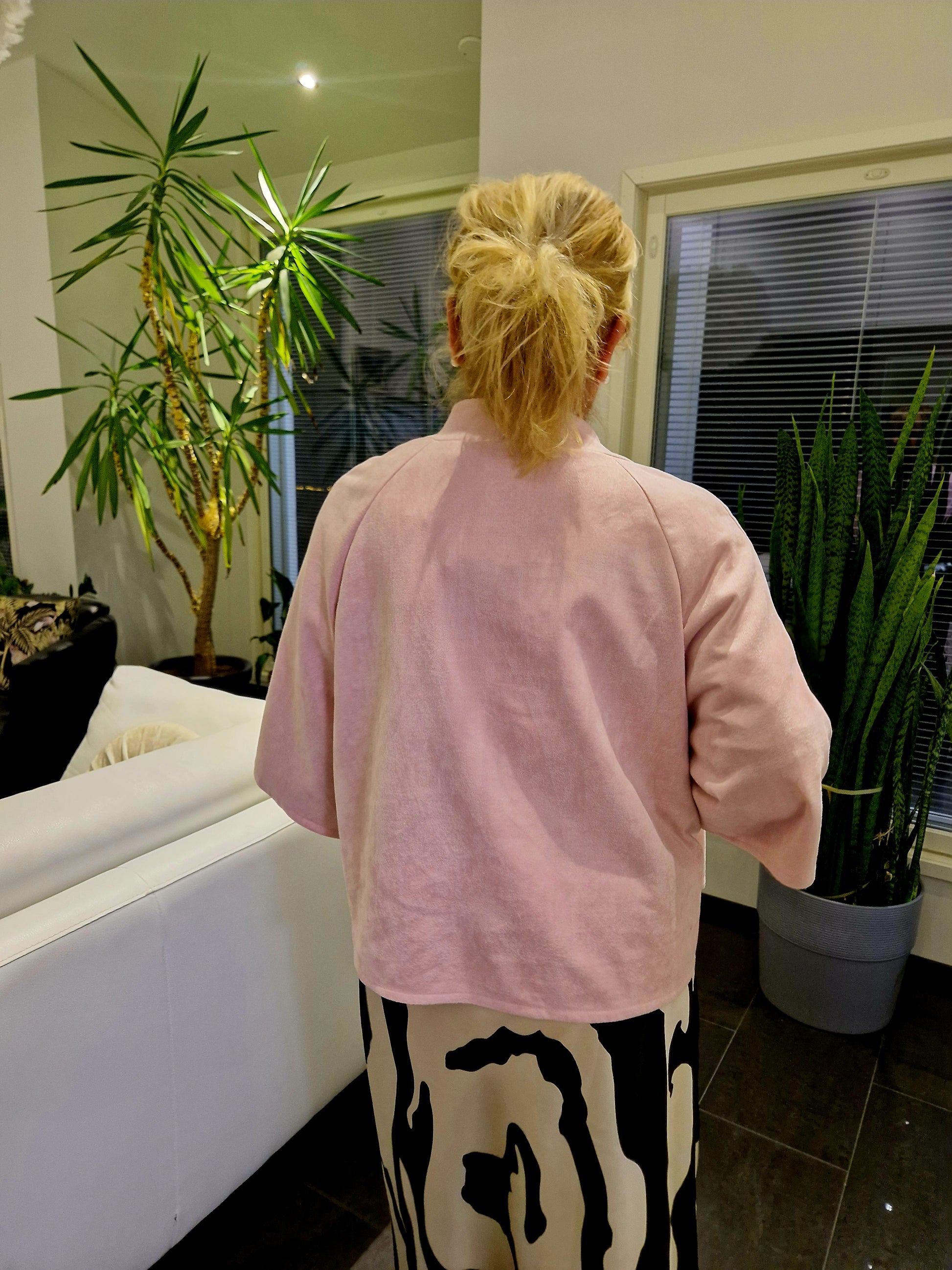 Sopii vaikkapa mekon kanssa tai ihan sellaisemaan. Pitkähihainen aluspaitakin kiva niin että hihat näkyy jakun hihojen alta. Helppo jakku!