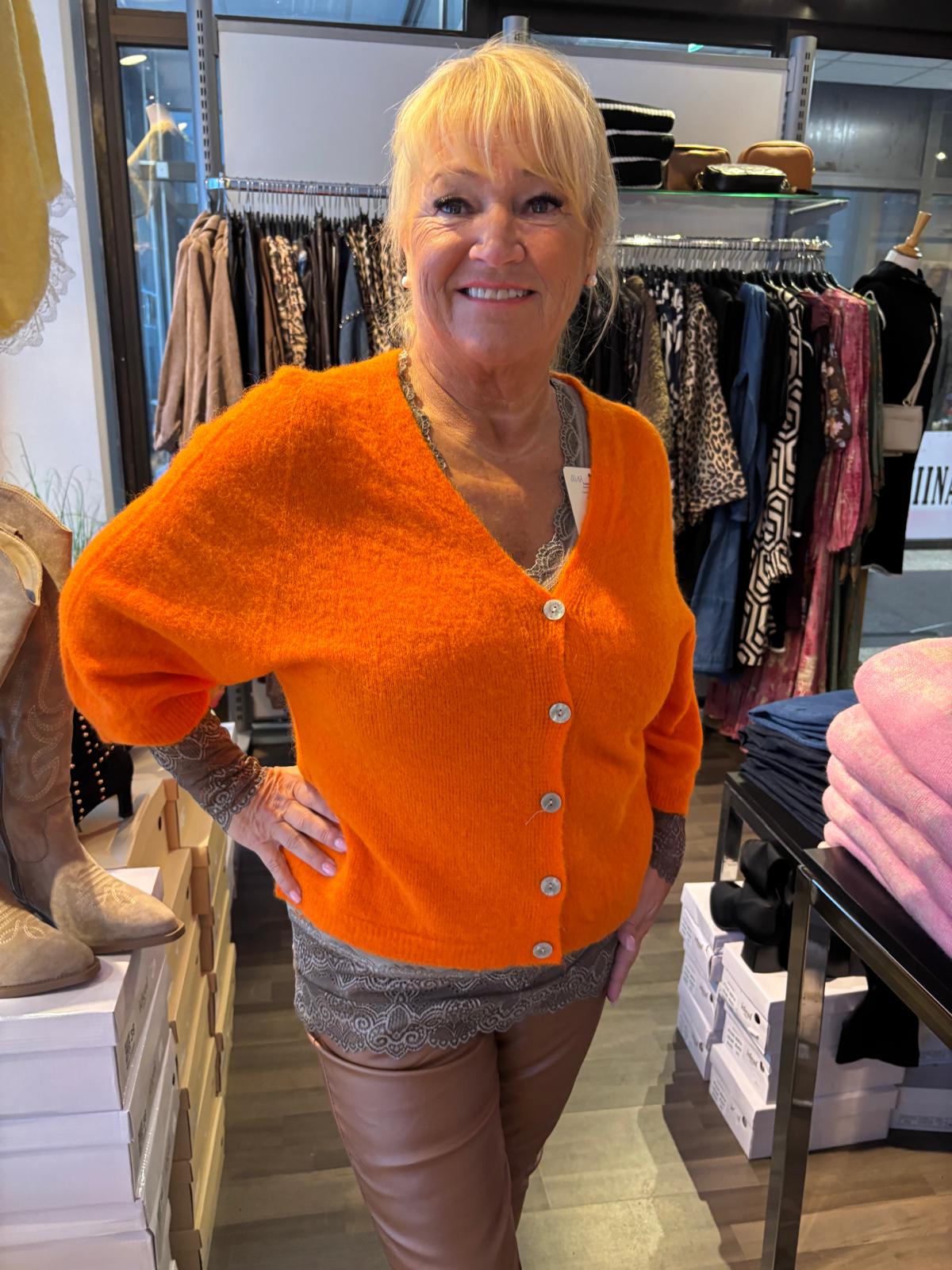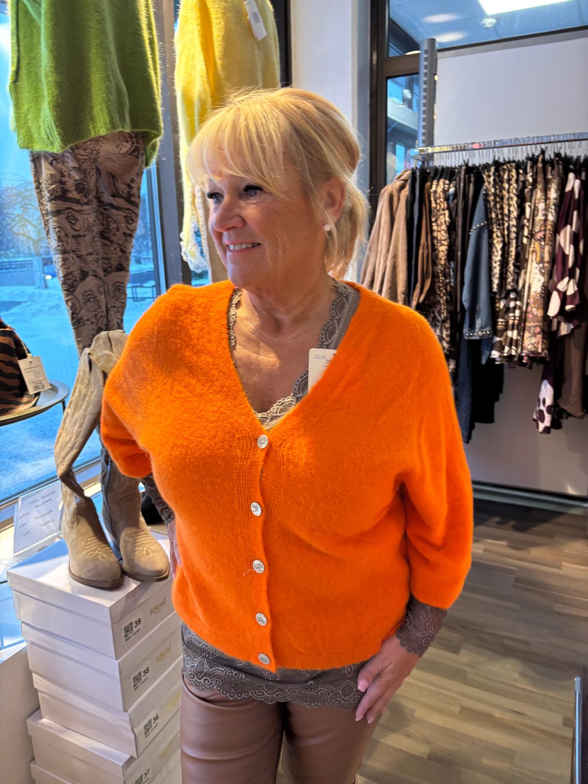 Pehmeä neuletakki vajaamittaisilla leveillä hihoilla.