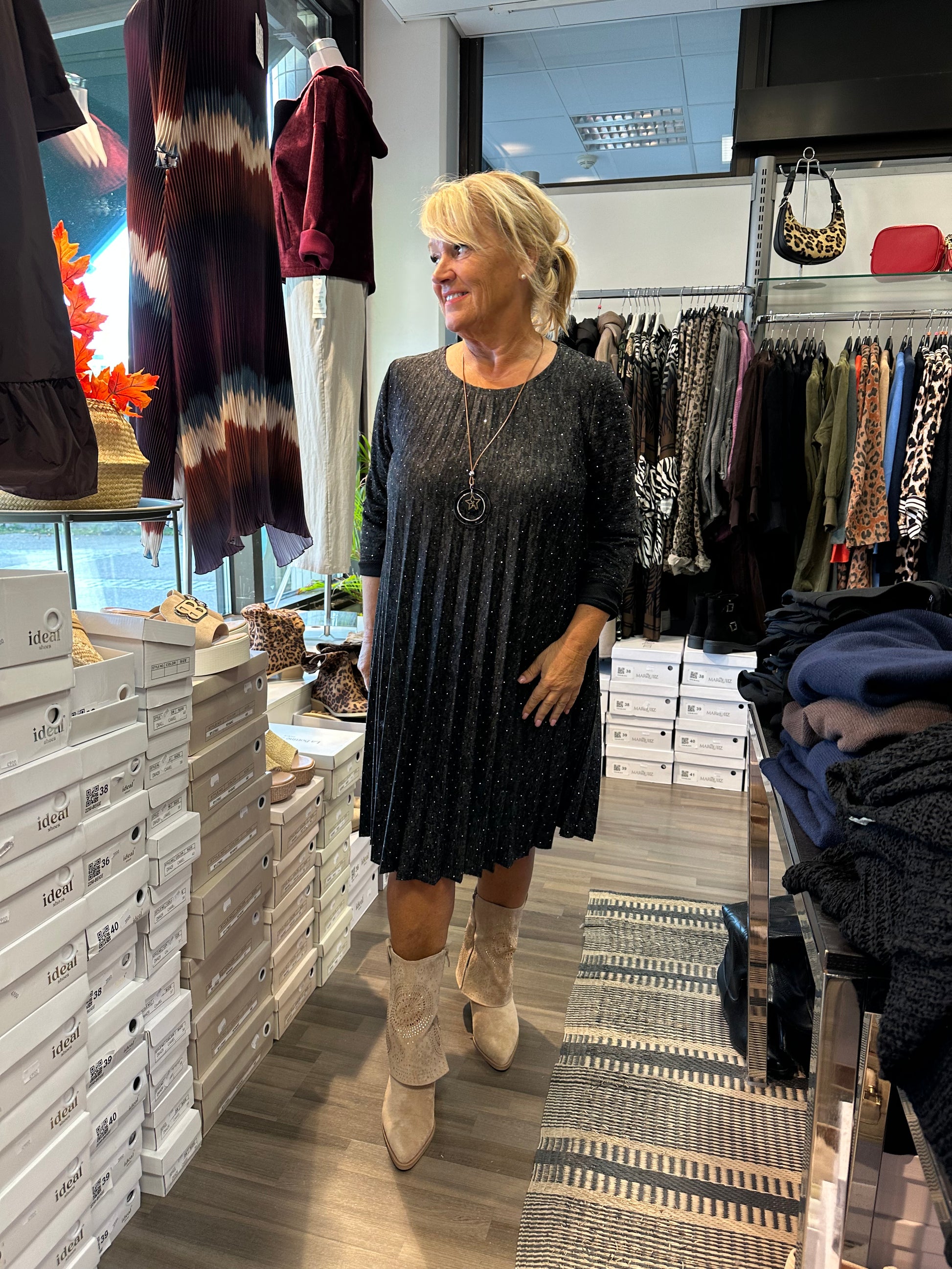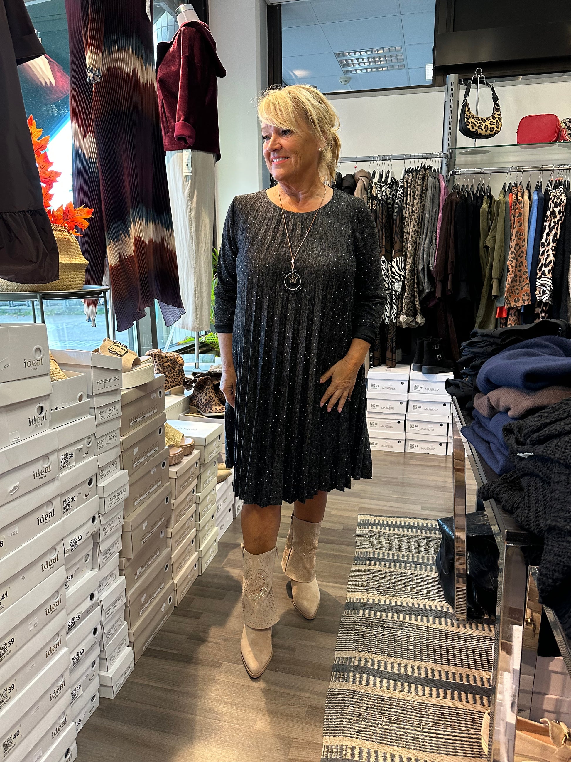 A-linjainen pliseerattu neulemekko makeella blingillä.