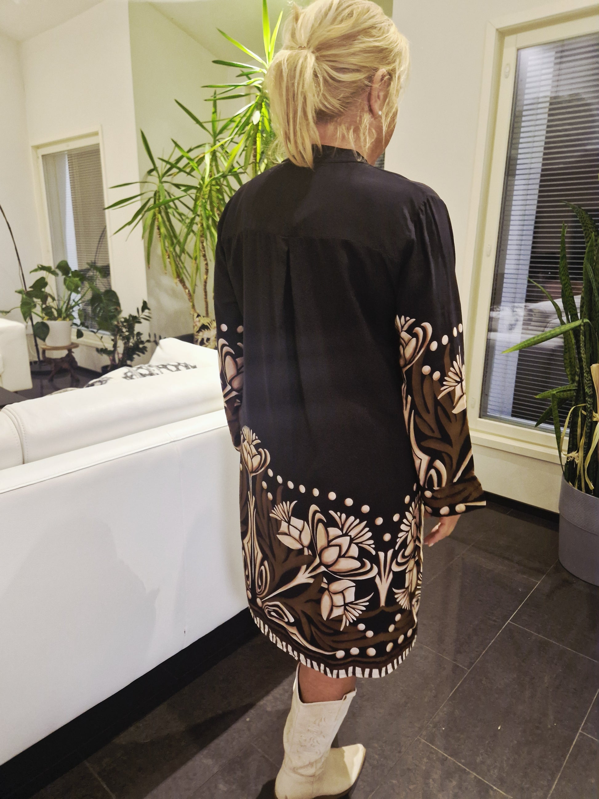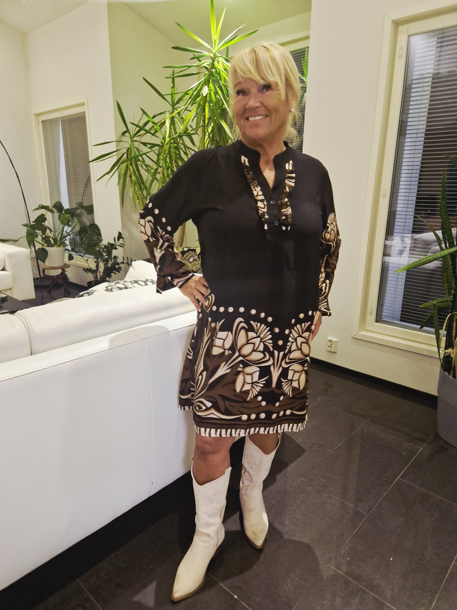 Ihana uutuus Martalta! Tunika tai mekko, 100% viskoosi. Himpun vajaamittainen hiha, halkio. Edestä pituus n. 95cm ja takaa vähän pidempi n. 100cm.