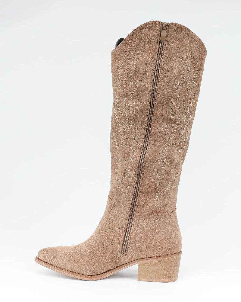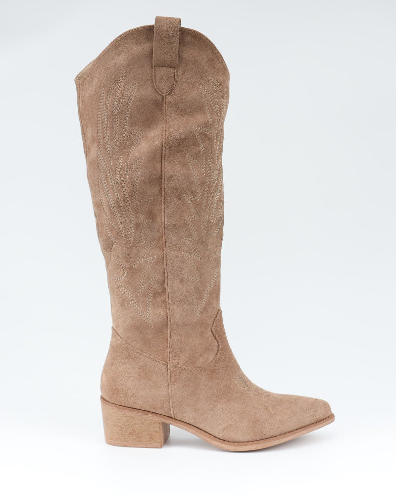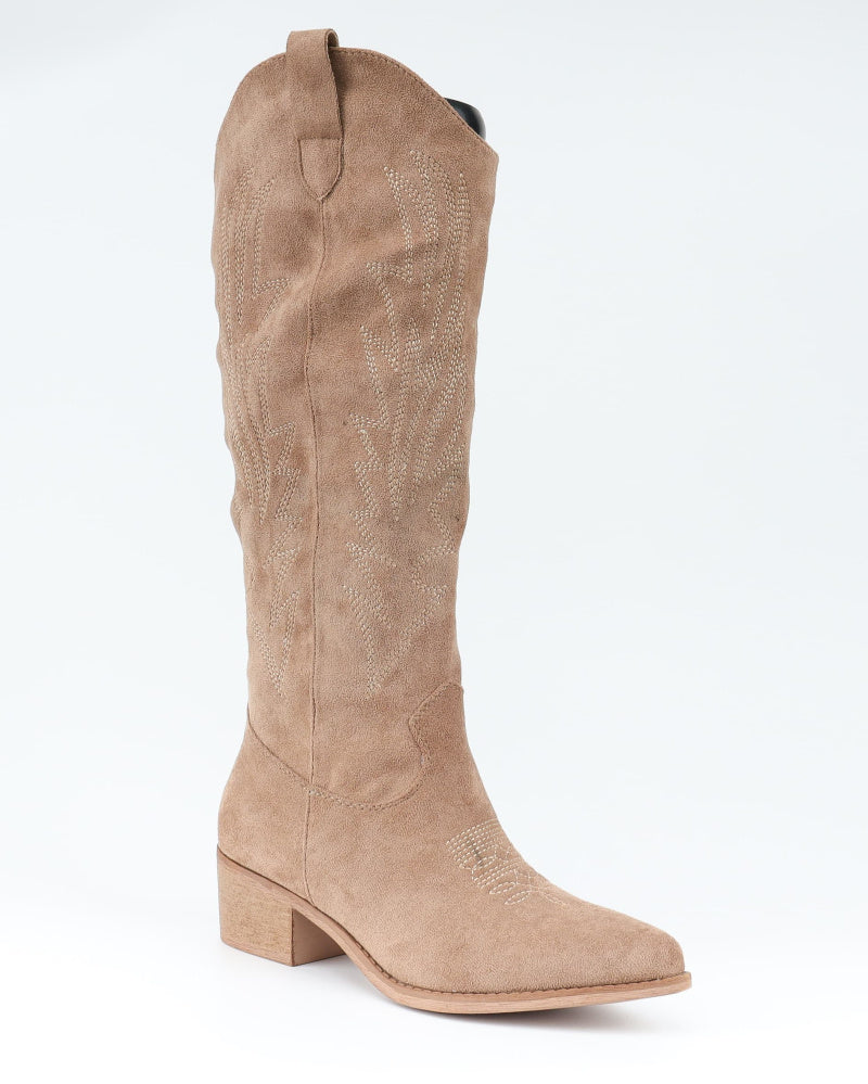 Makeet cowboy-tyyliset bootsit pienellä korolla. Sisäpuolella täyspitkä vetoketju. Vastaa normaalia kokoa.