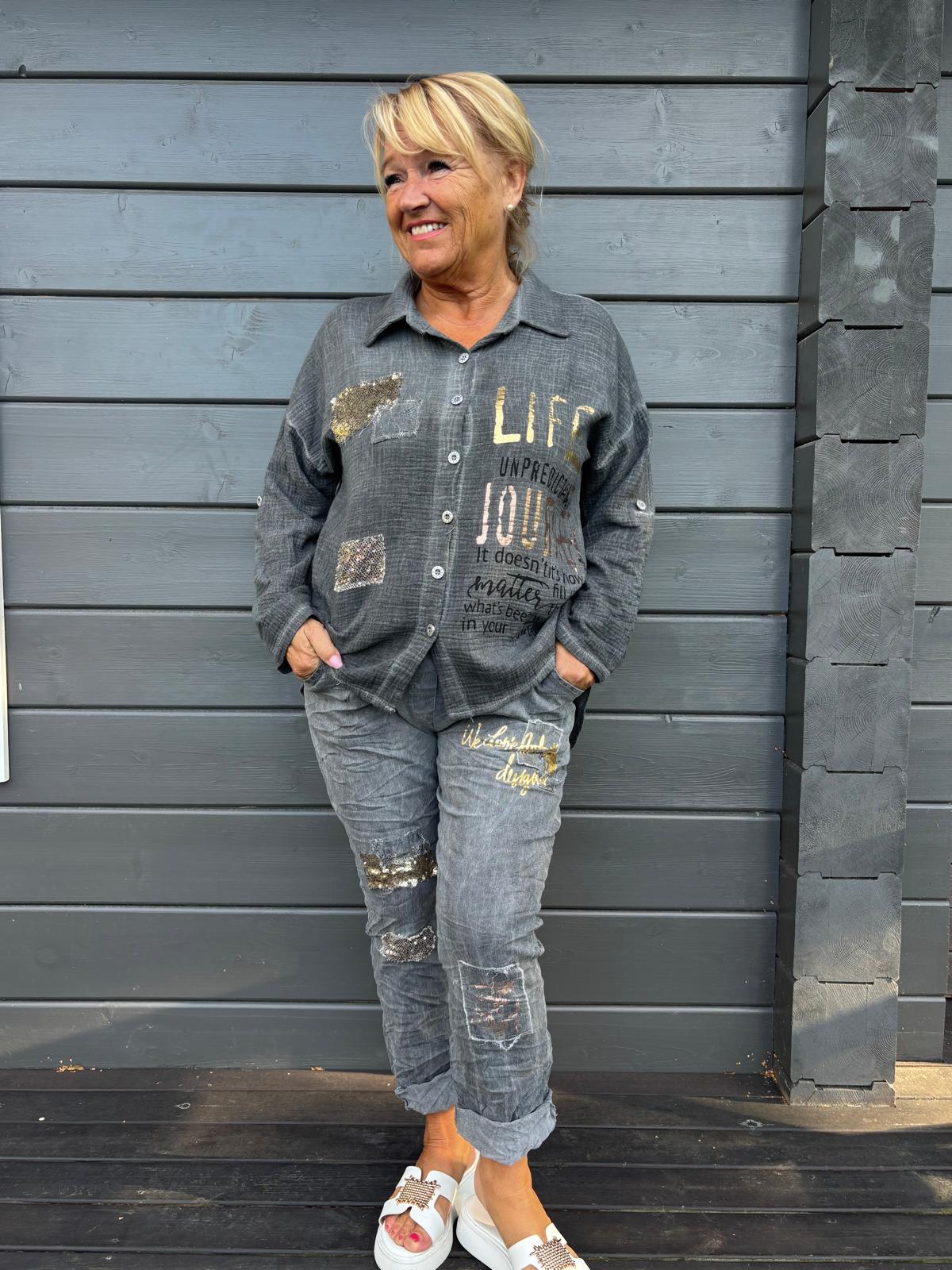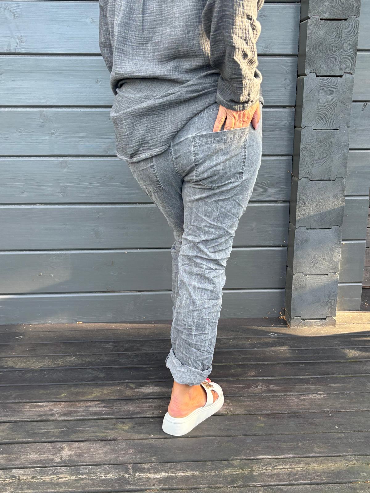 Joustavat, kevyet viskoosihousut. Joustava vyötärö, jossa nyöri. Edessä ja takana taskut.