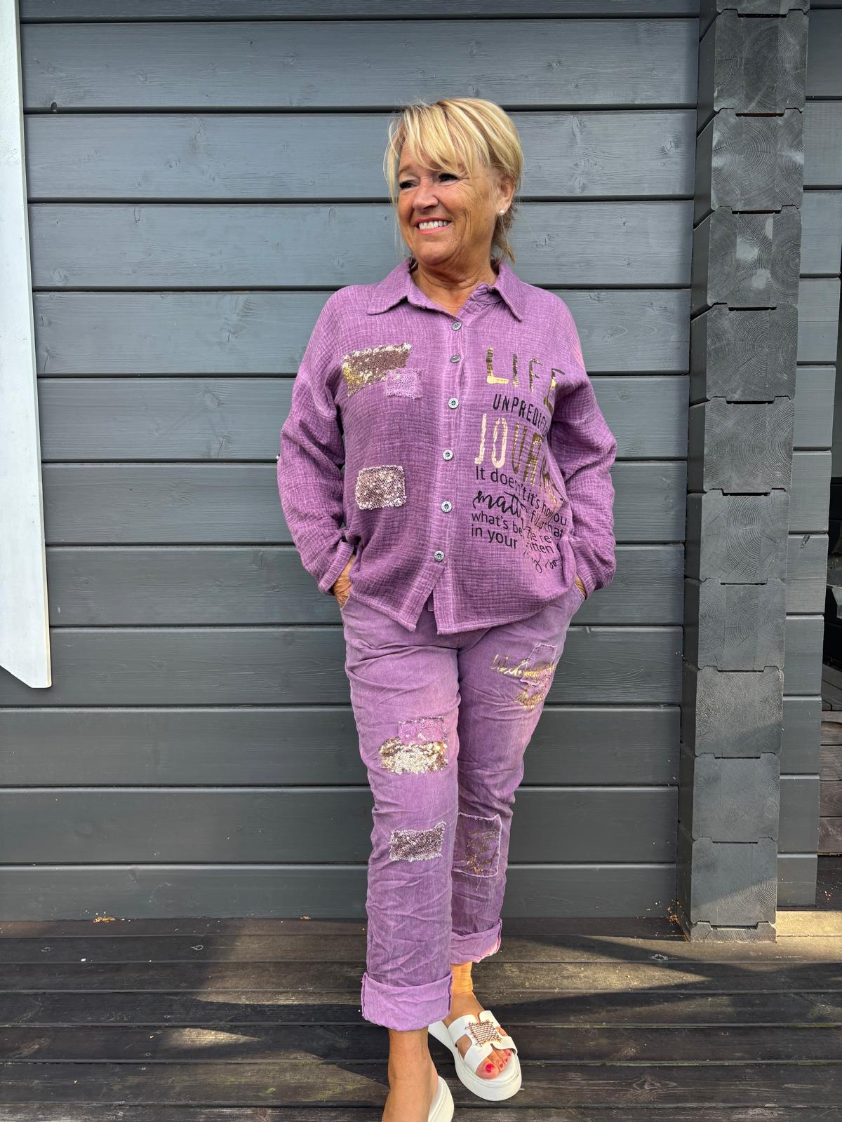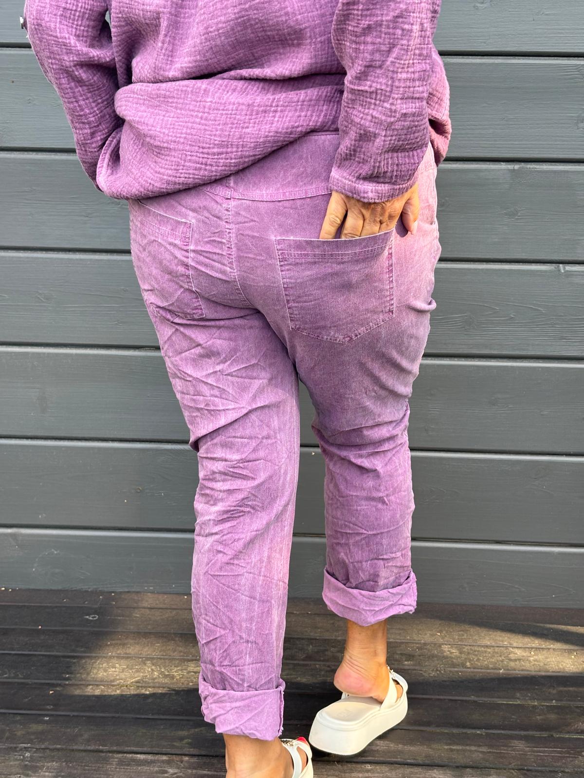 Joustavat, kevyet viskoosihousut. Joustava vyötärö, jossa nyöri. Edessä ja takana taskut.