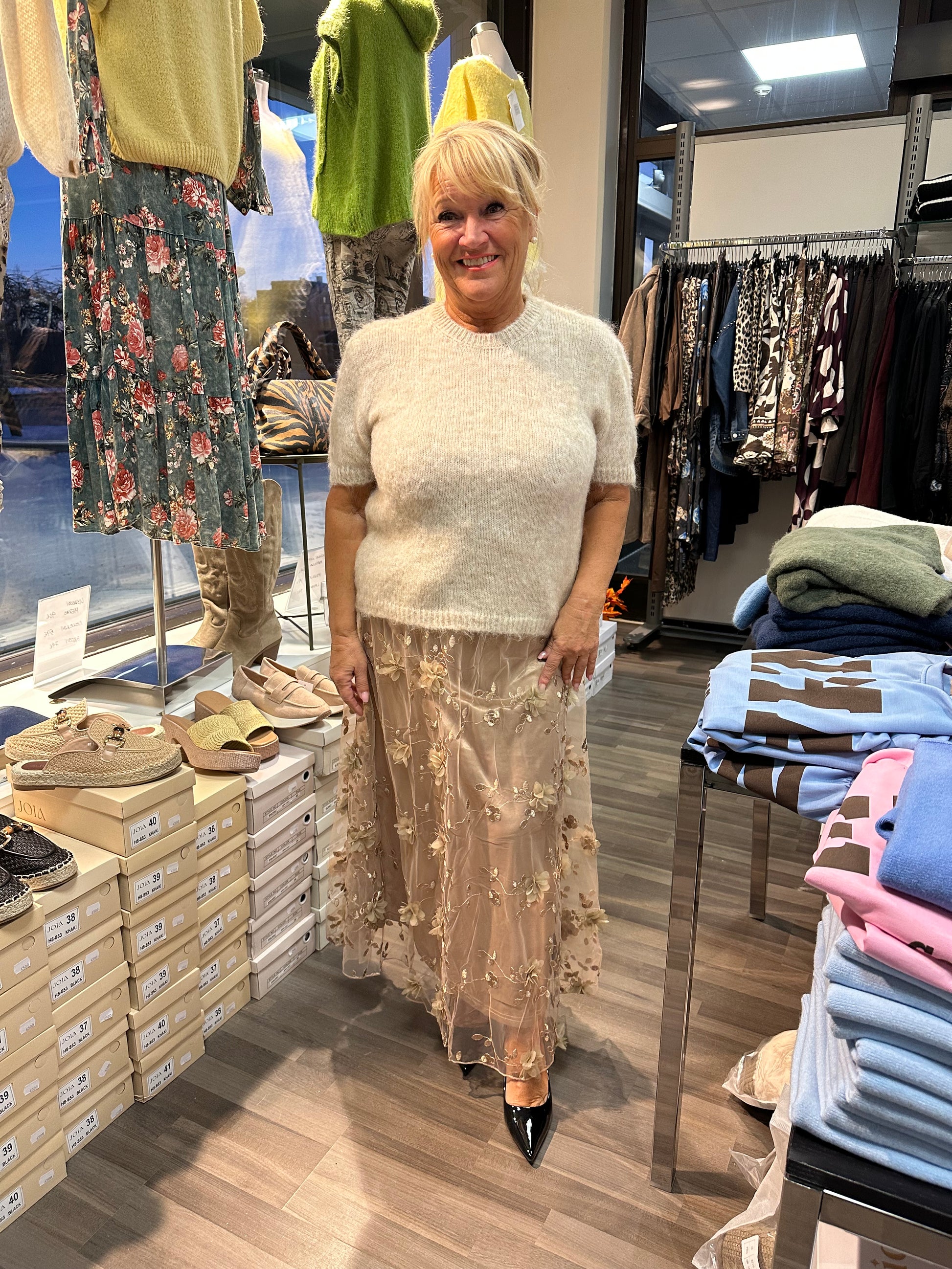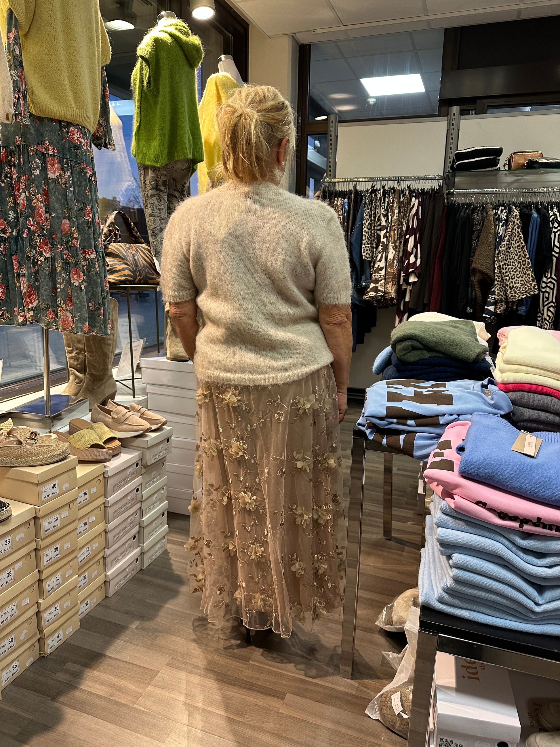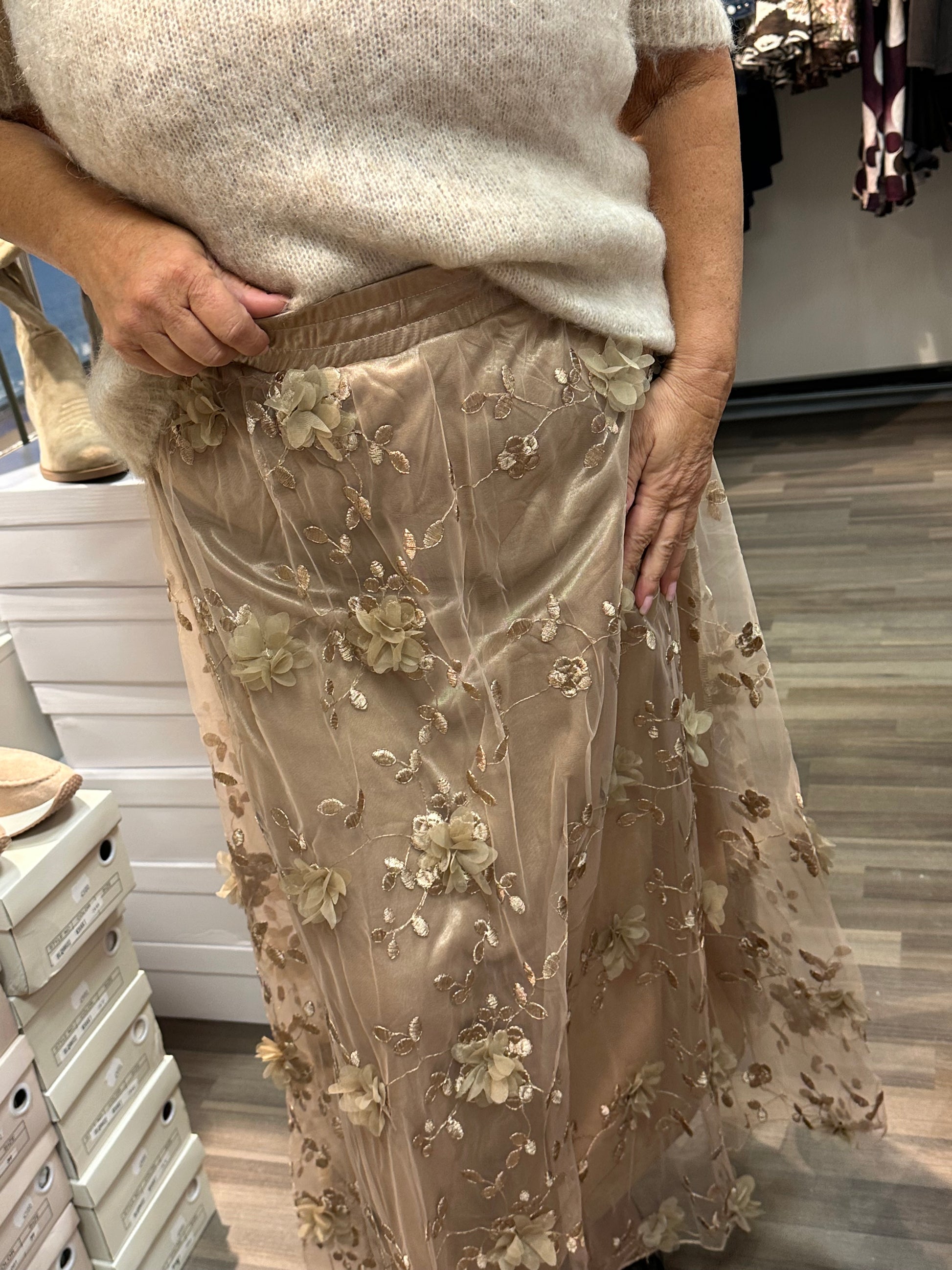 Upea tyllihame 3D-kukilla! Joustava vyötärö. Trikoinen lyhyempi vuori.