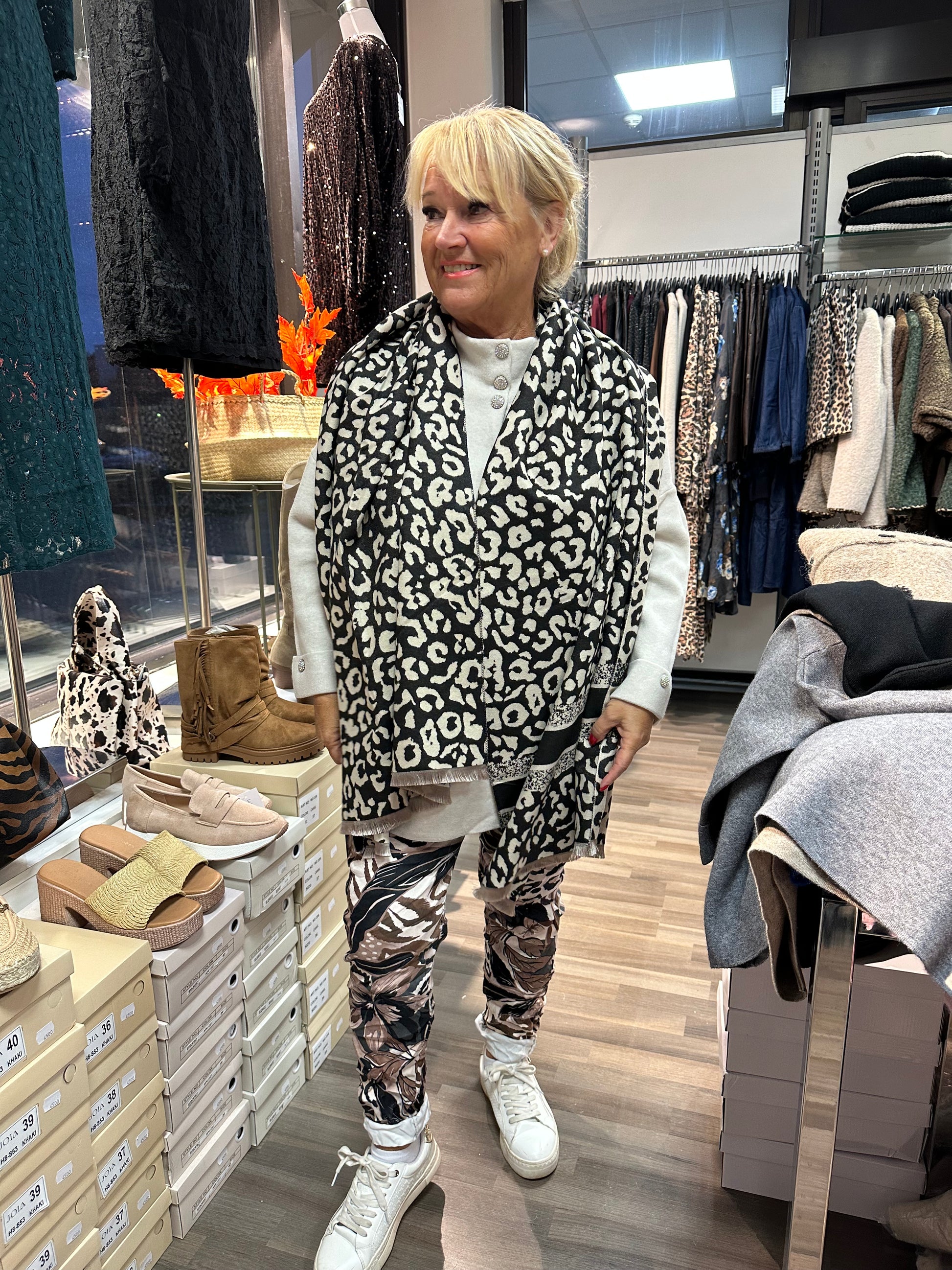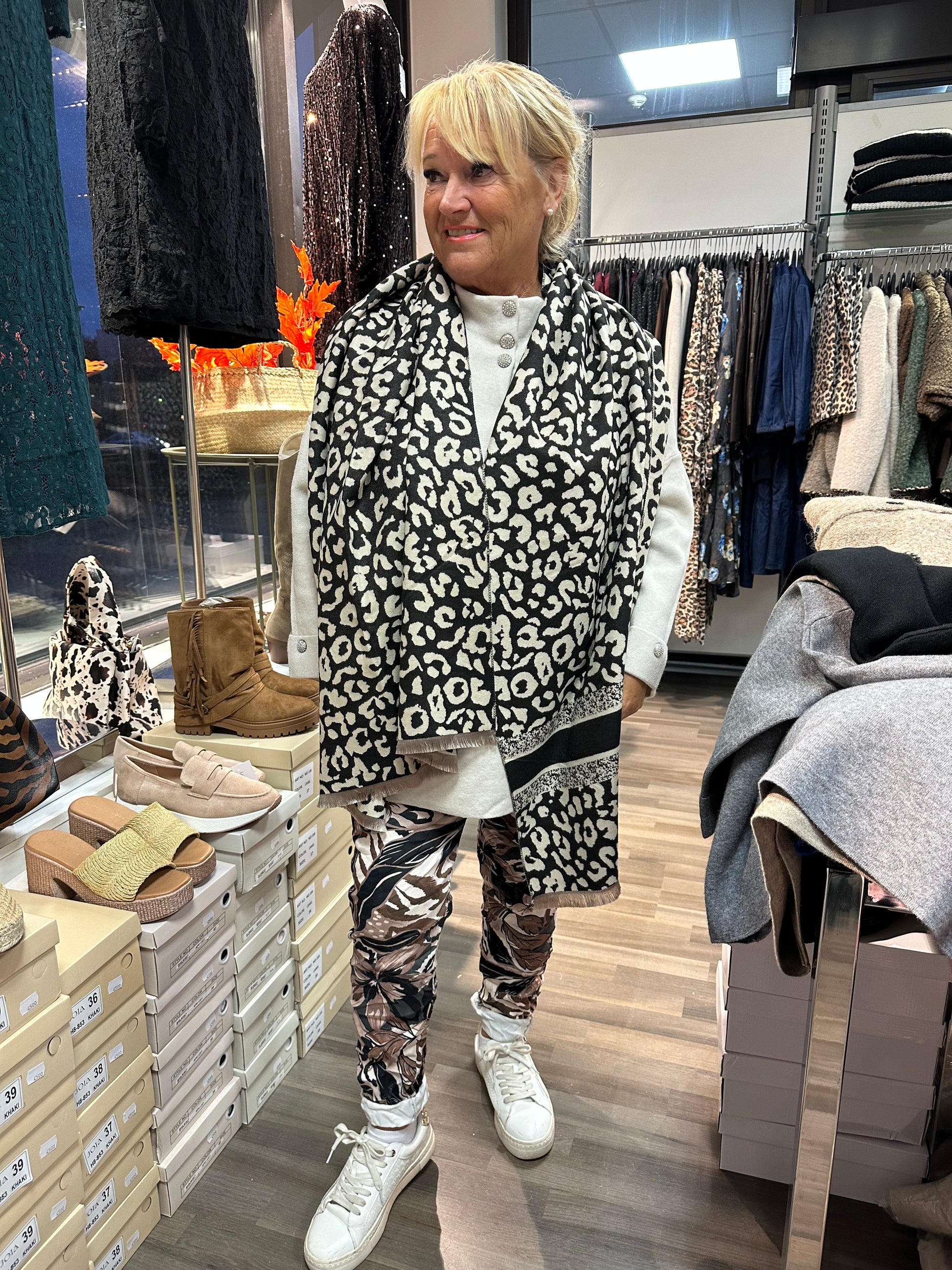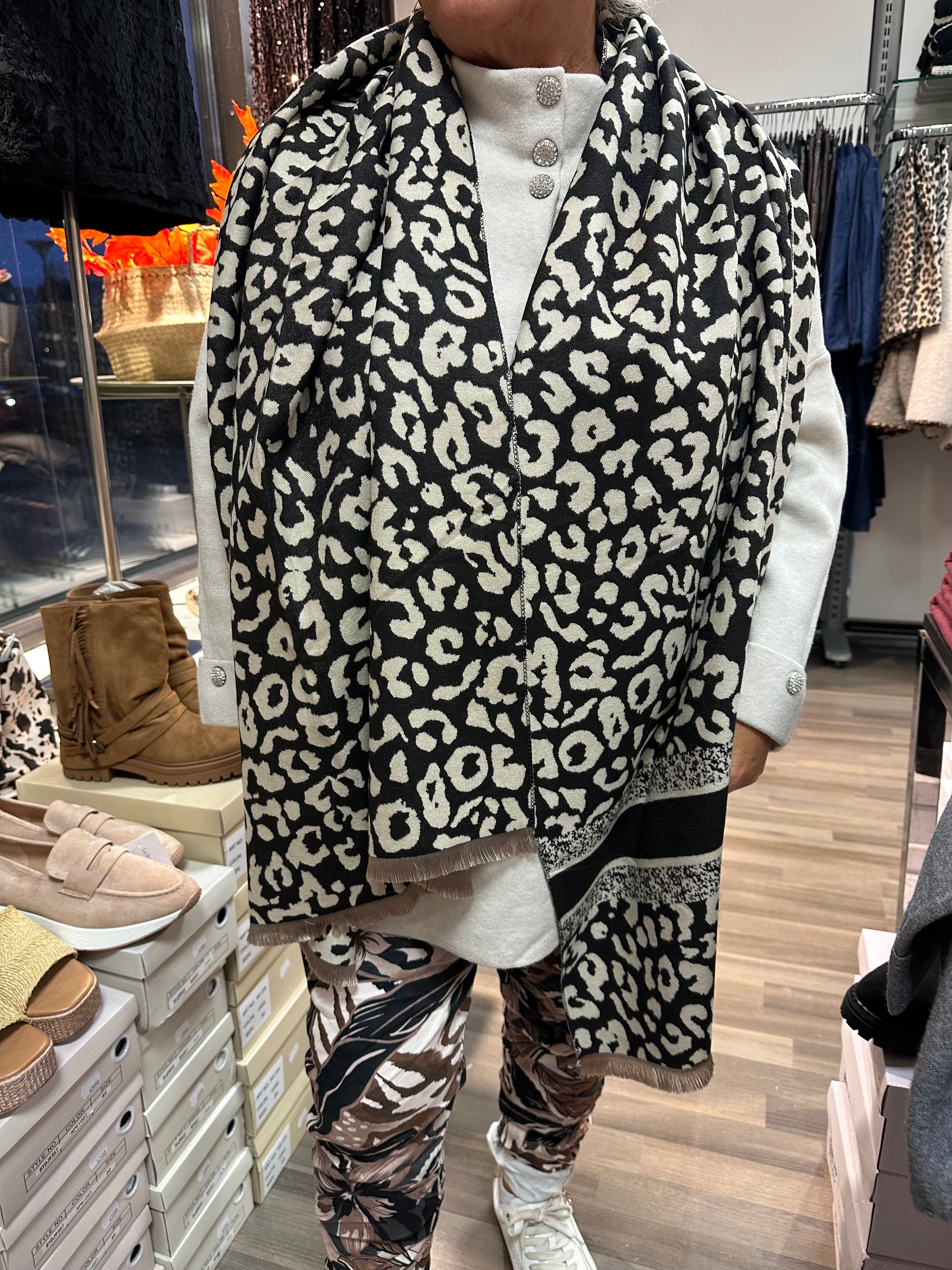 Iso kaulahuivi laadukkaan tiheäneuloista ja luistavaa neulosta. Pienet hapsut reunoilla.