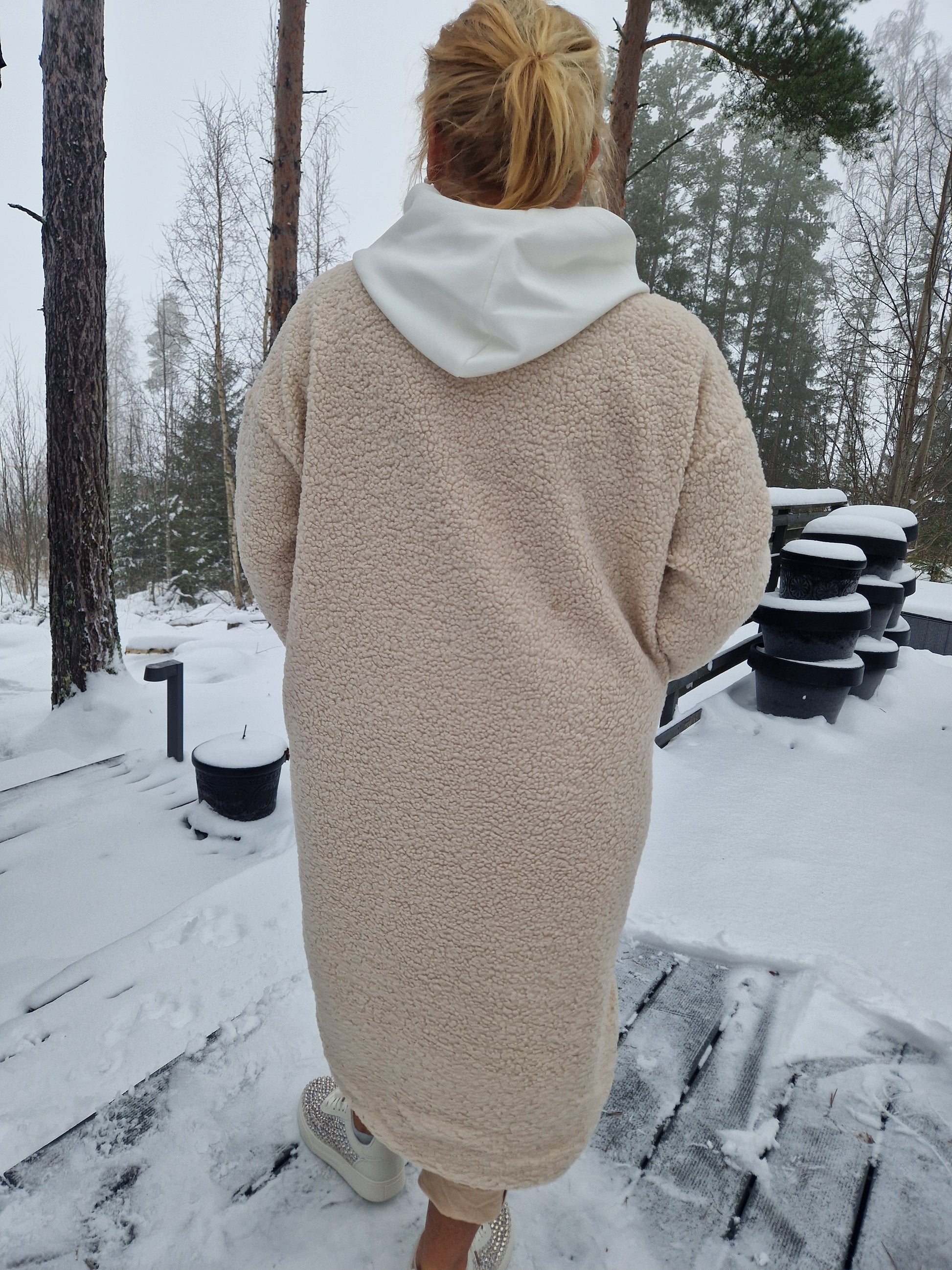 Kaulukseton teddy takki vaalea beessi