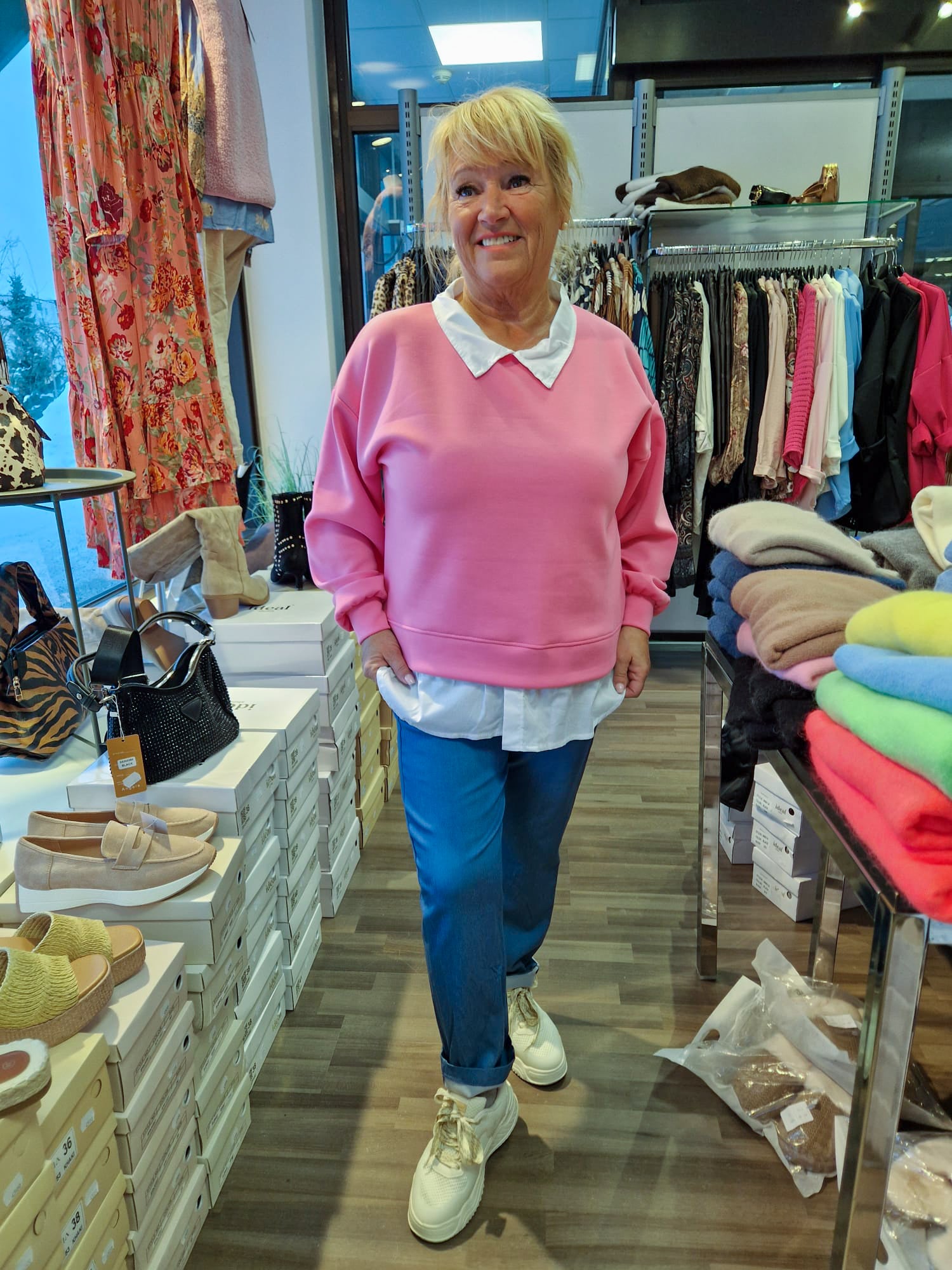 Kiva kauluspaita-college, jossa on ikäänkuin kauluspaita alla. Mukava tuttu viskoosi-polyester laatu.