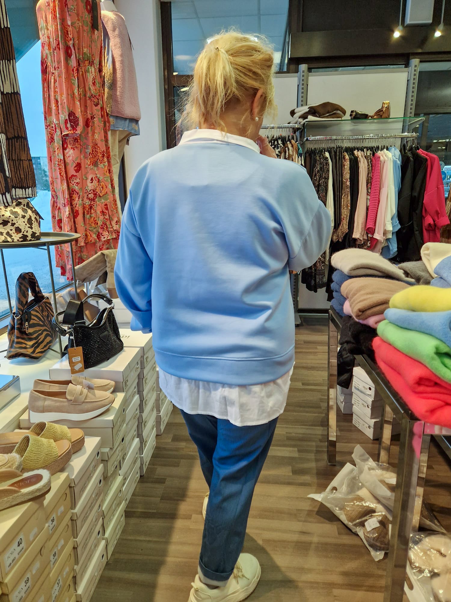 Kiva kauluspaita-college, jossa on ikäänkuin kauluspaita alla. Mukava tuttu viskoosi-polyester laatu.