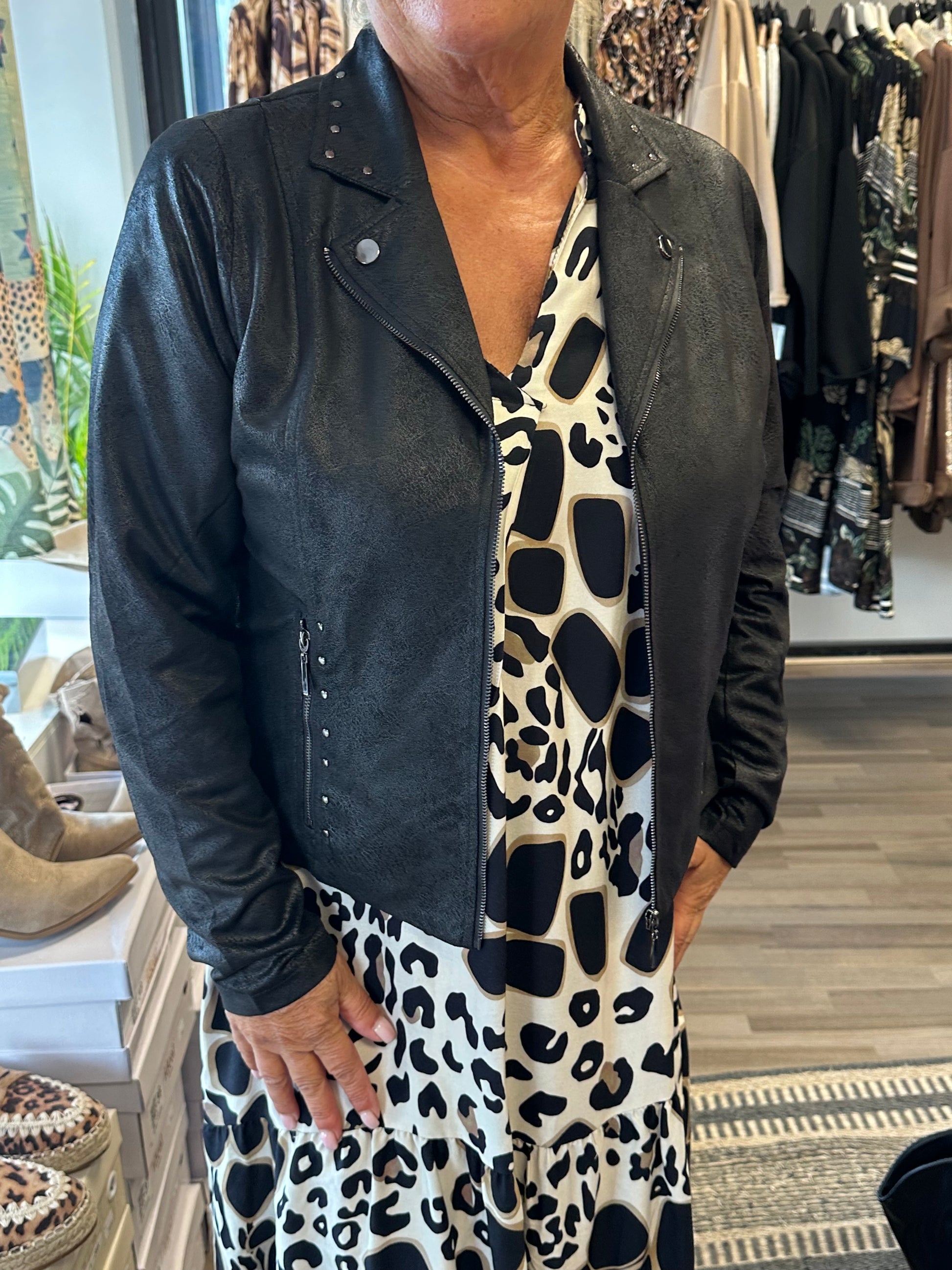 Pehmeä, elävä pintainen jakku. Kivat vetoketju ja niittikoristeet. Vuoreton ja kevyt jakku, jonka voit yhdistää moneen juttuun! Koot S-XXL. Minulla päällä koko L, olen noin 40/42.