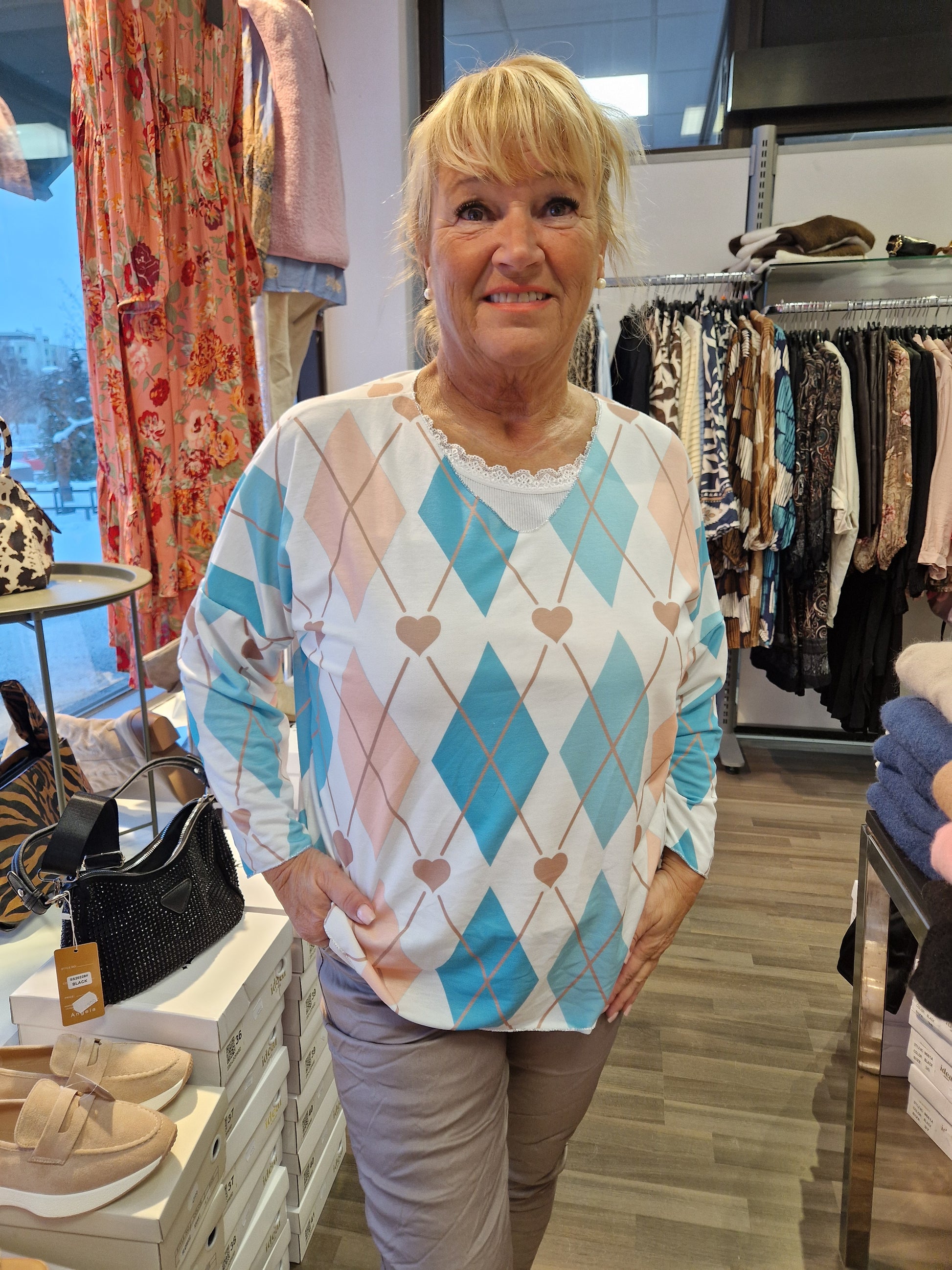 Keväinen ruutupusero turkoosi