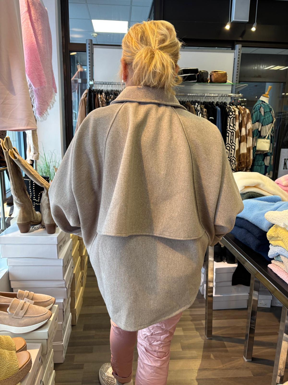 Vähän viittamainen, leveä lepakkohihainen jakku.