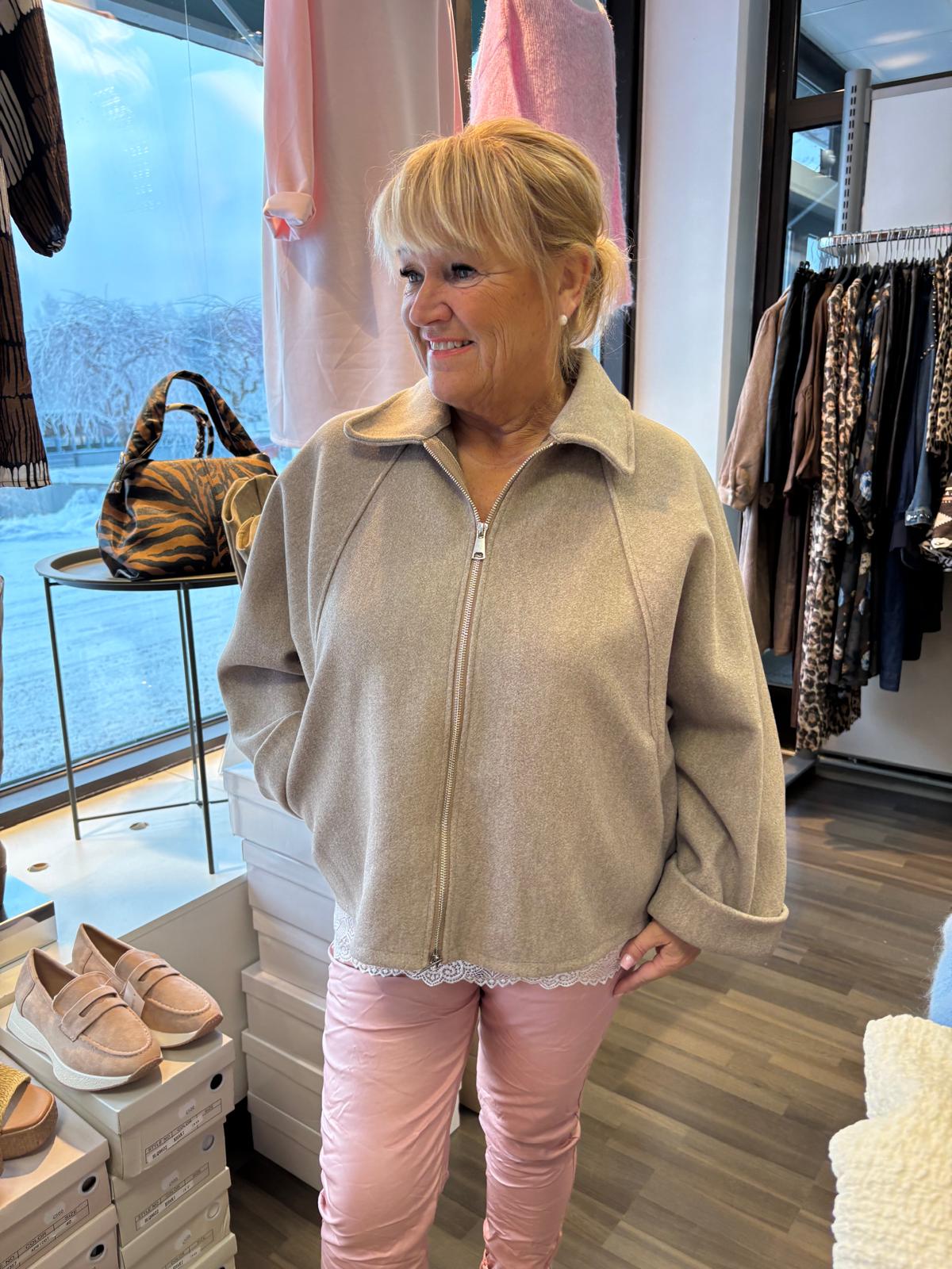 Ihan uusi ilmeinen jakku, vuoreton. Kaulukset ja vetoketjukiinnitys. Taskut edessä. Selässä juju! Vahvan tuntuista materiaalia.