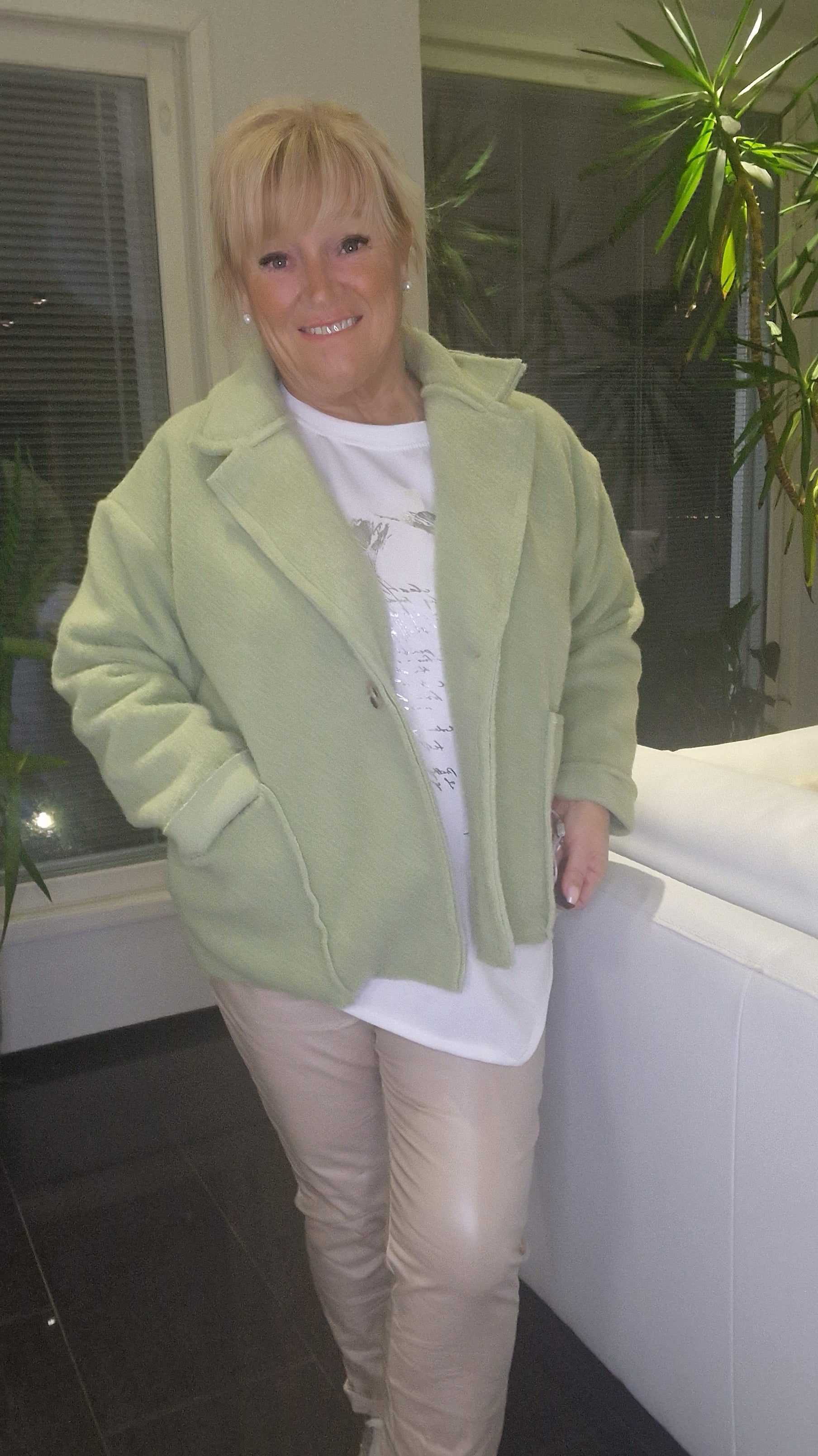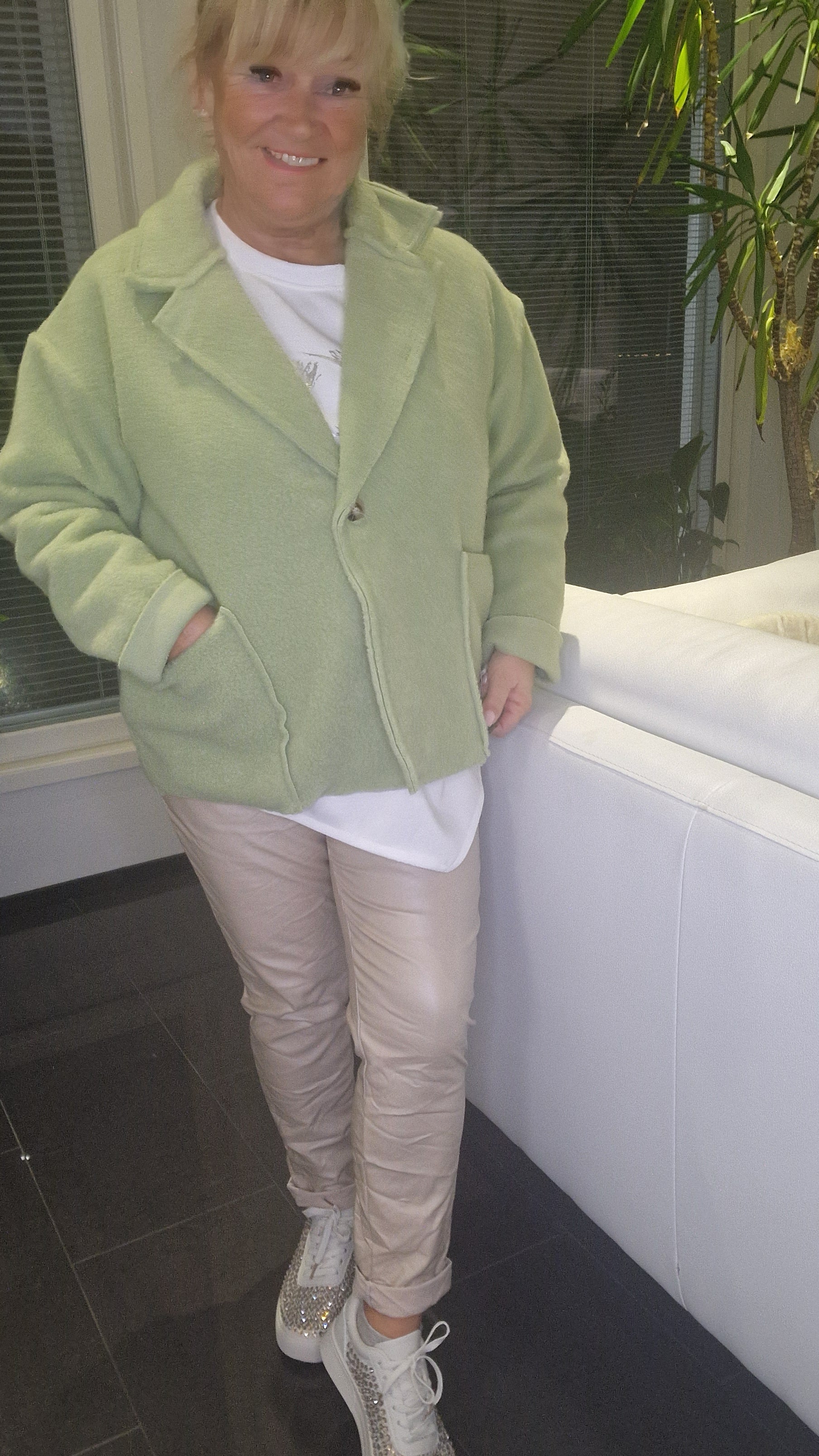 Pehmeä, vähän "huovutetun" oloinen jakku kevääseen.