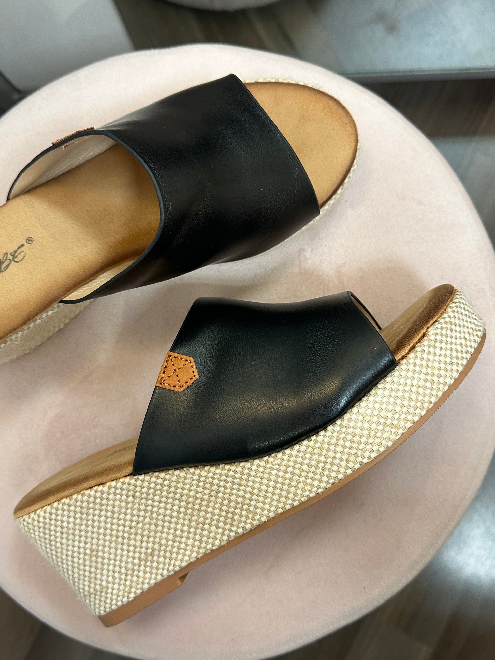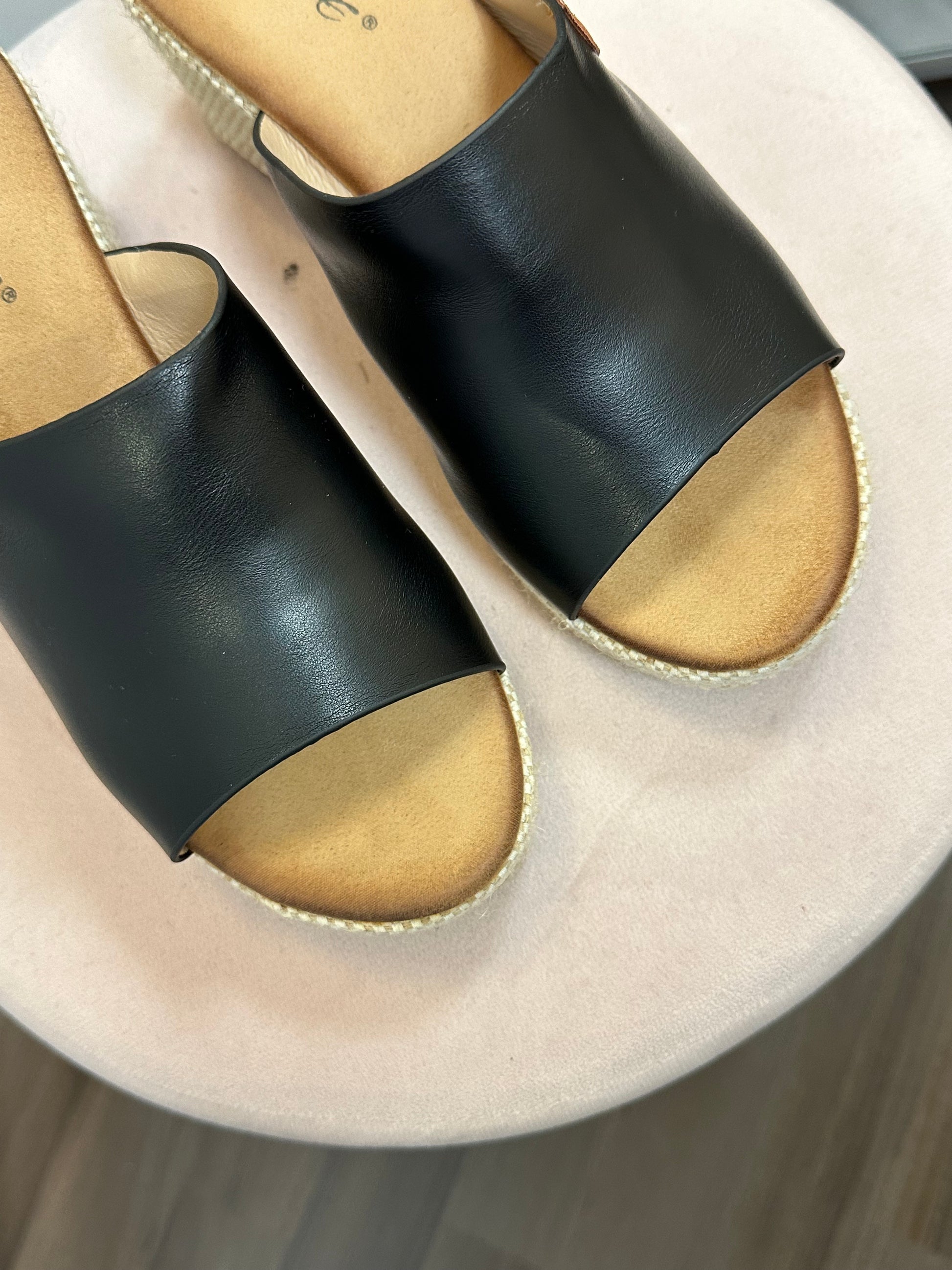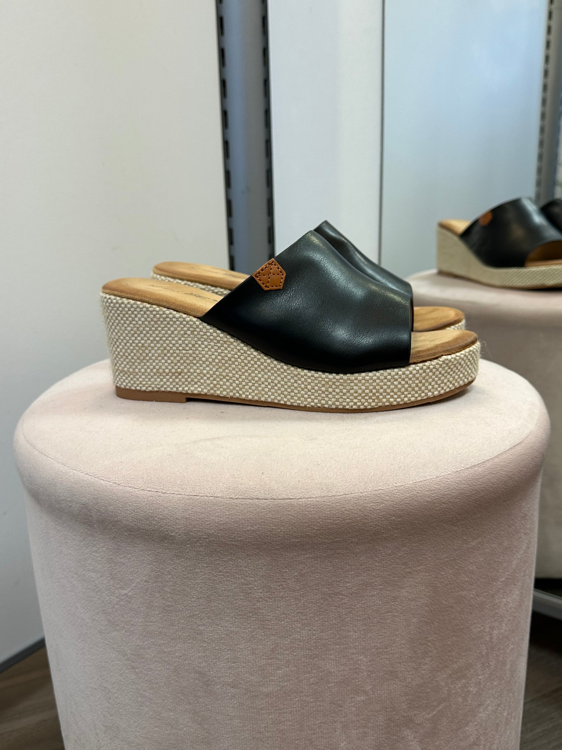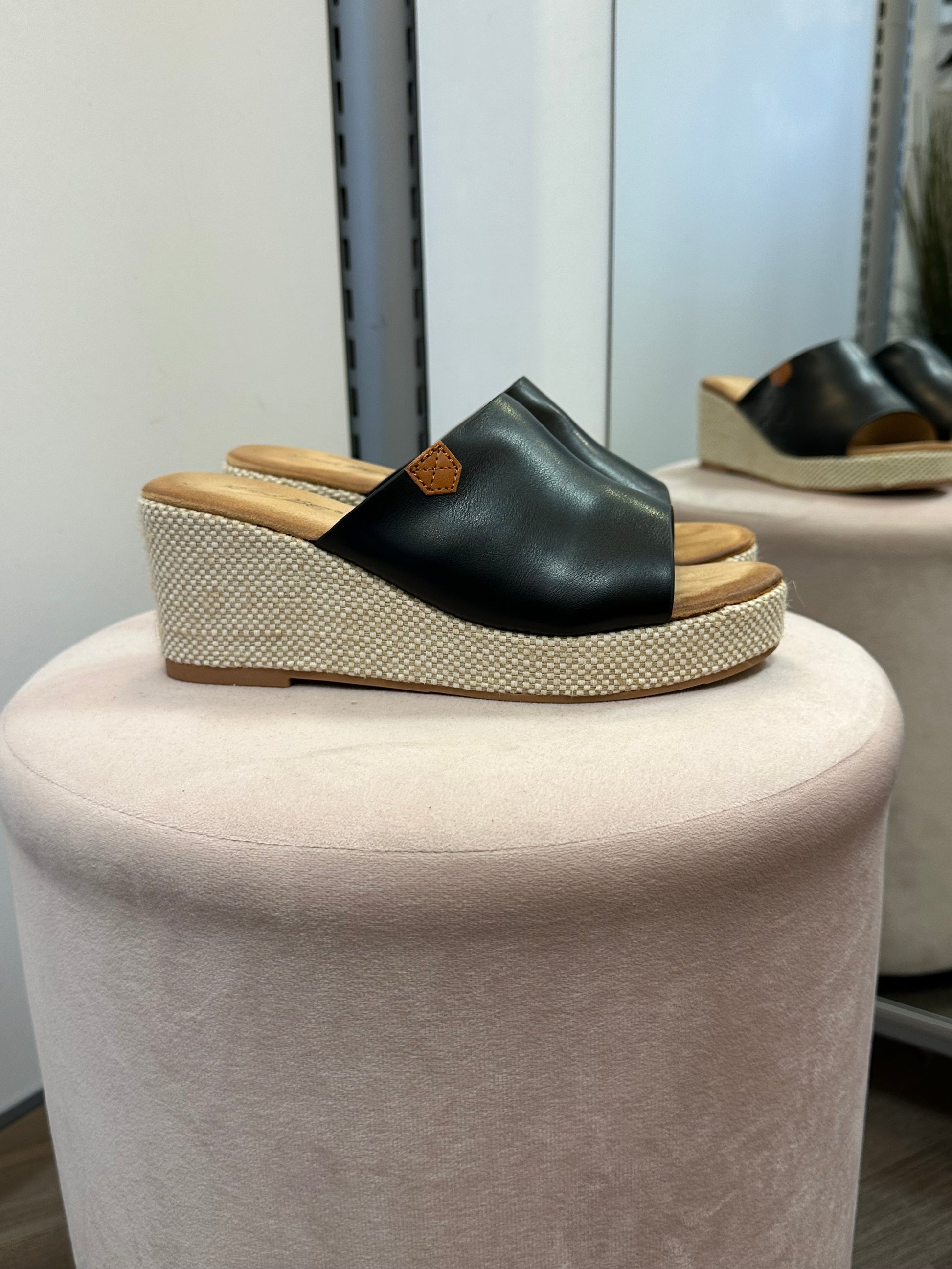 Mukavan kevyet kiilakorkosandaalit, joissa miellyttävän pehmeä pohjallinen. Keinonahka.