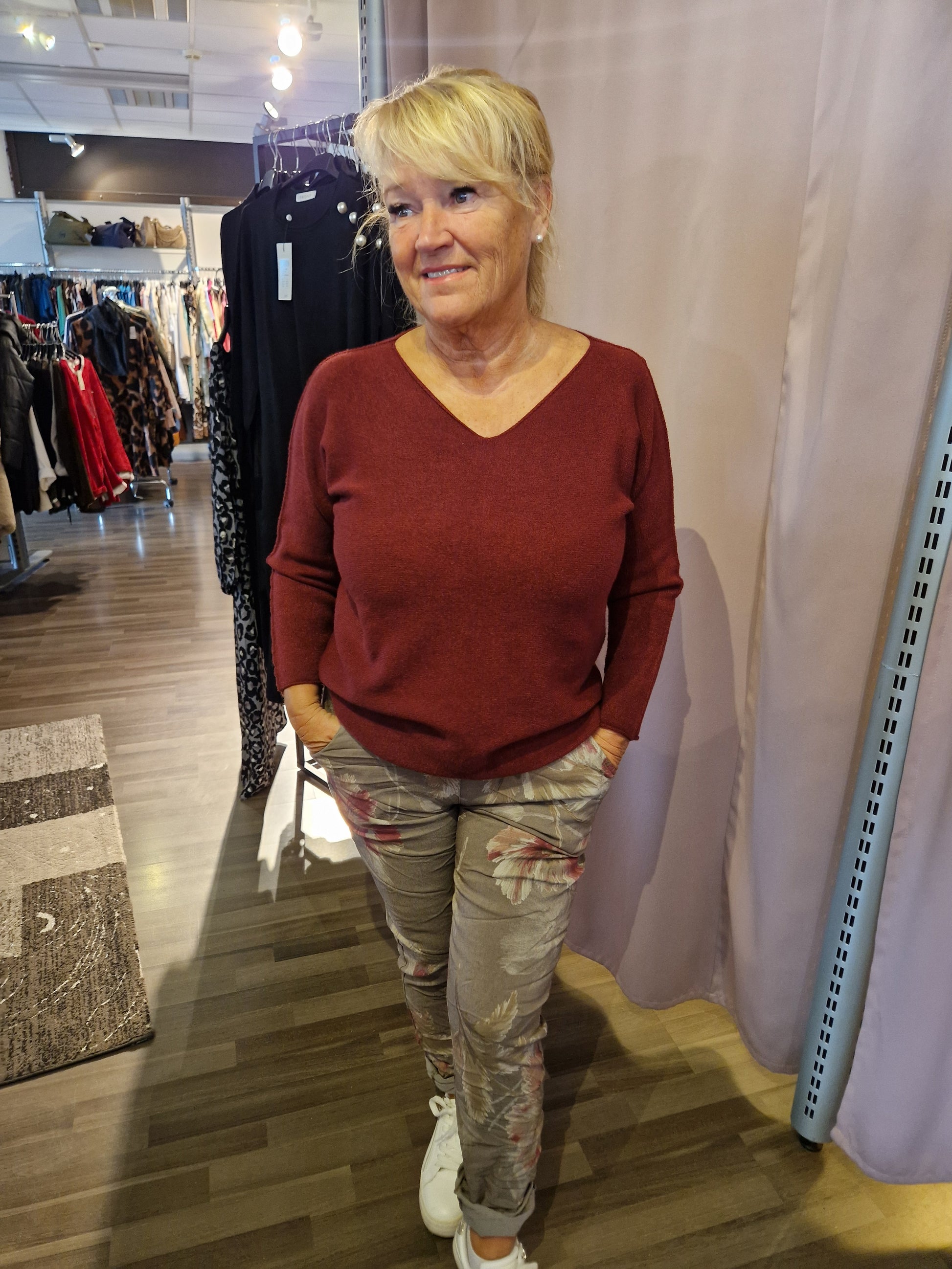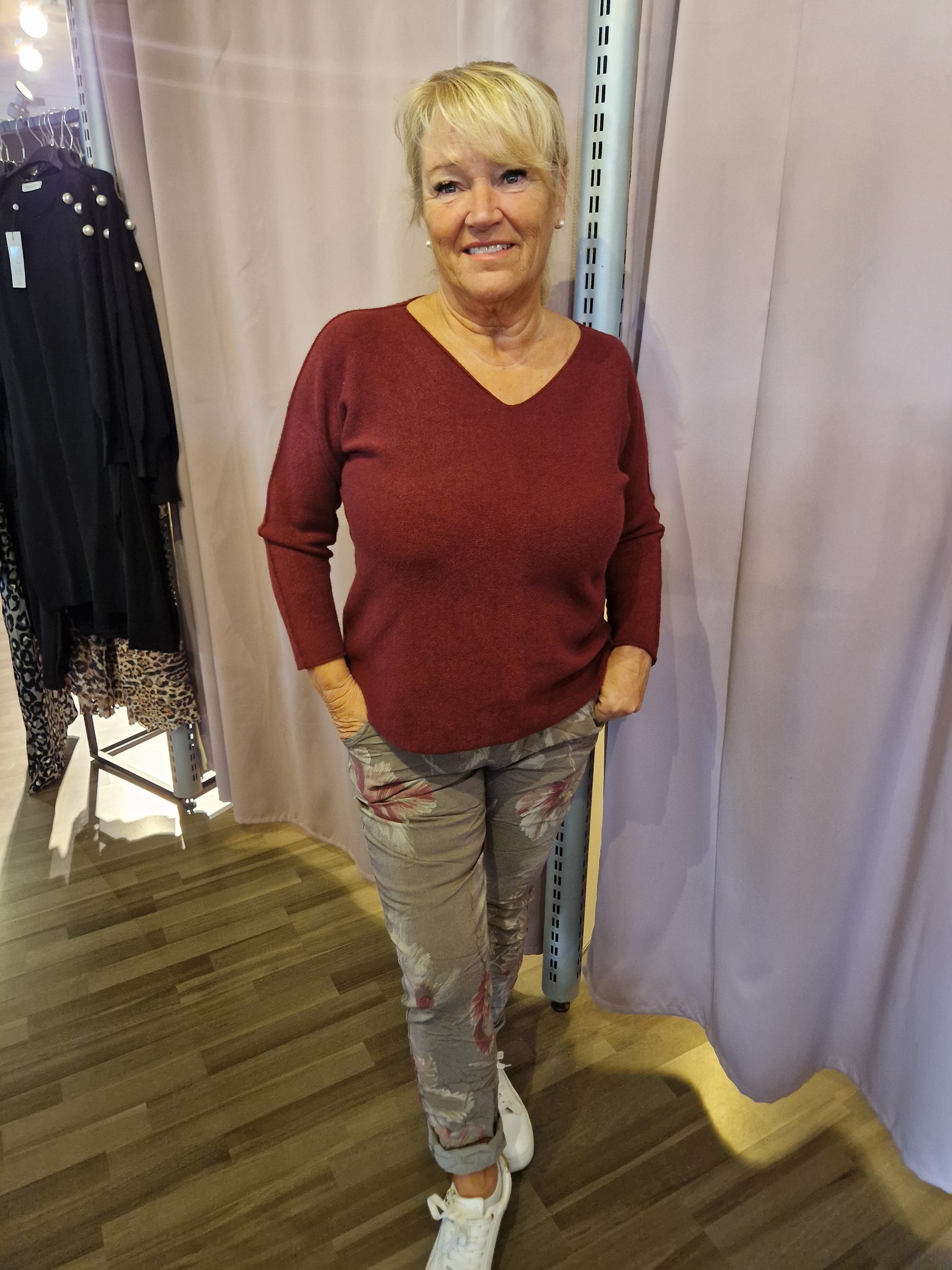 Kukkahousu taupepohjaväri/viininpunainen kukka