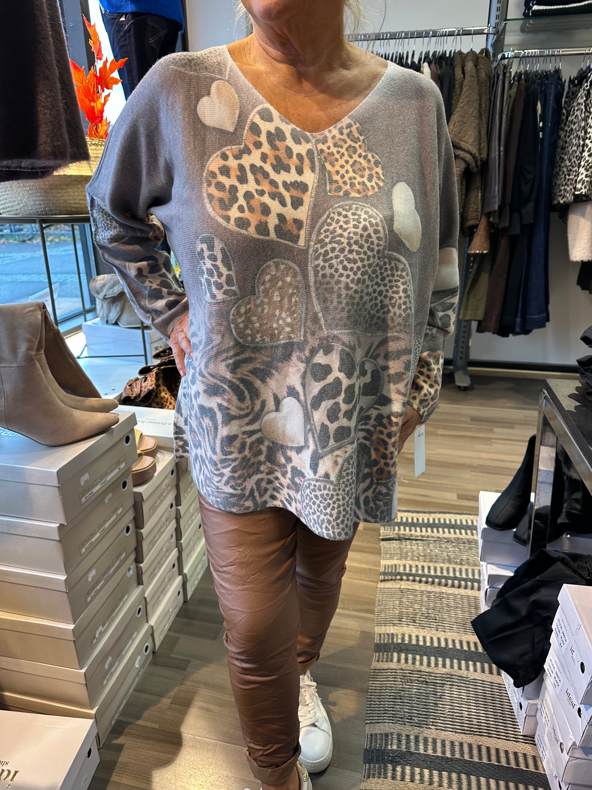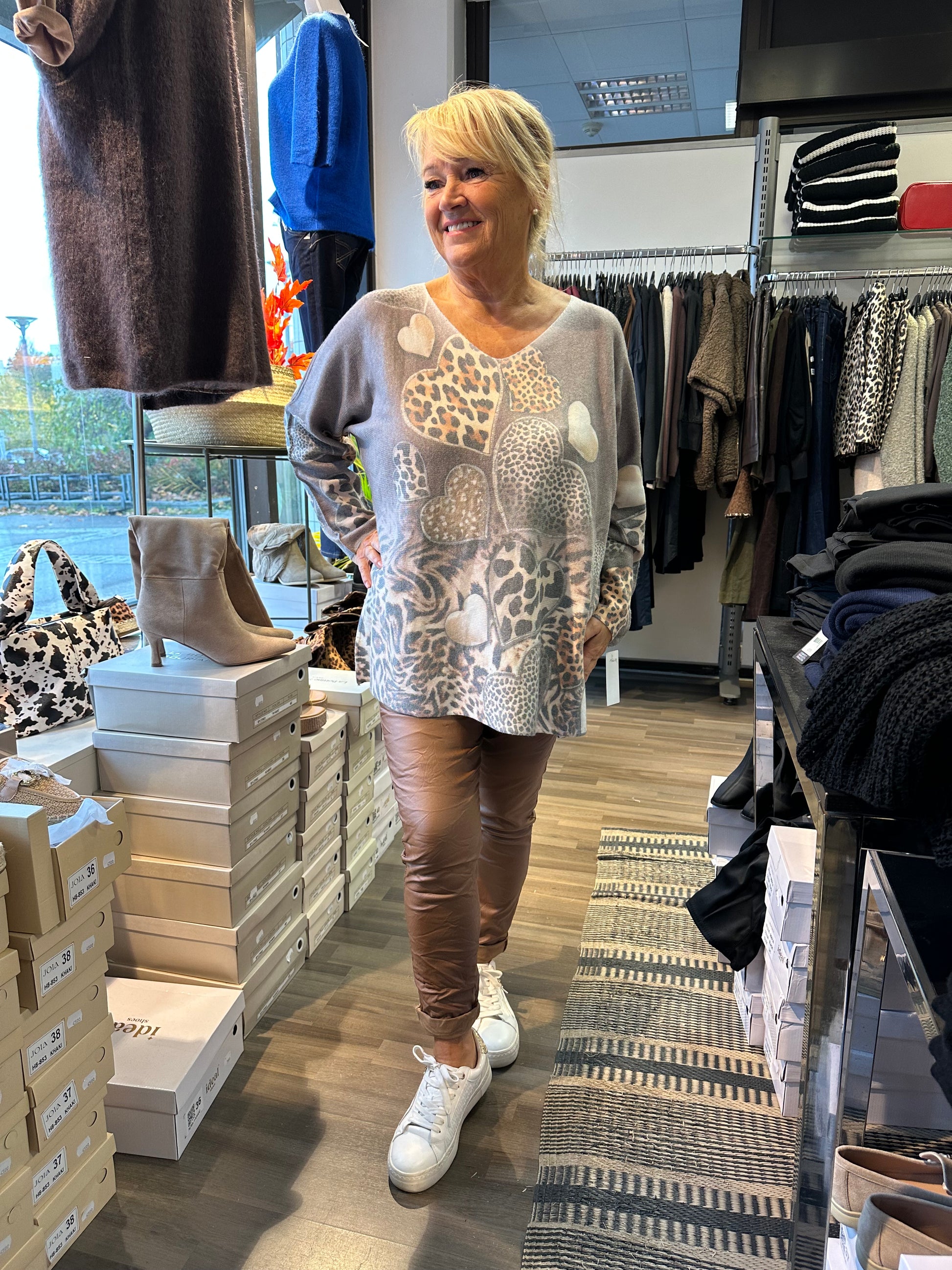 Kiva kuviollinen neulepusero reilumpaa kokoa. V-pääntie. Mukava laatu.