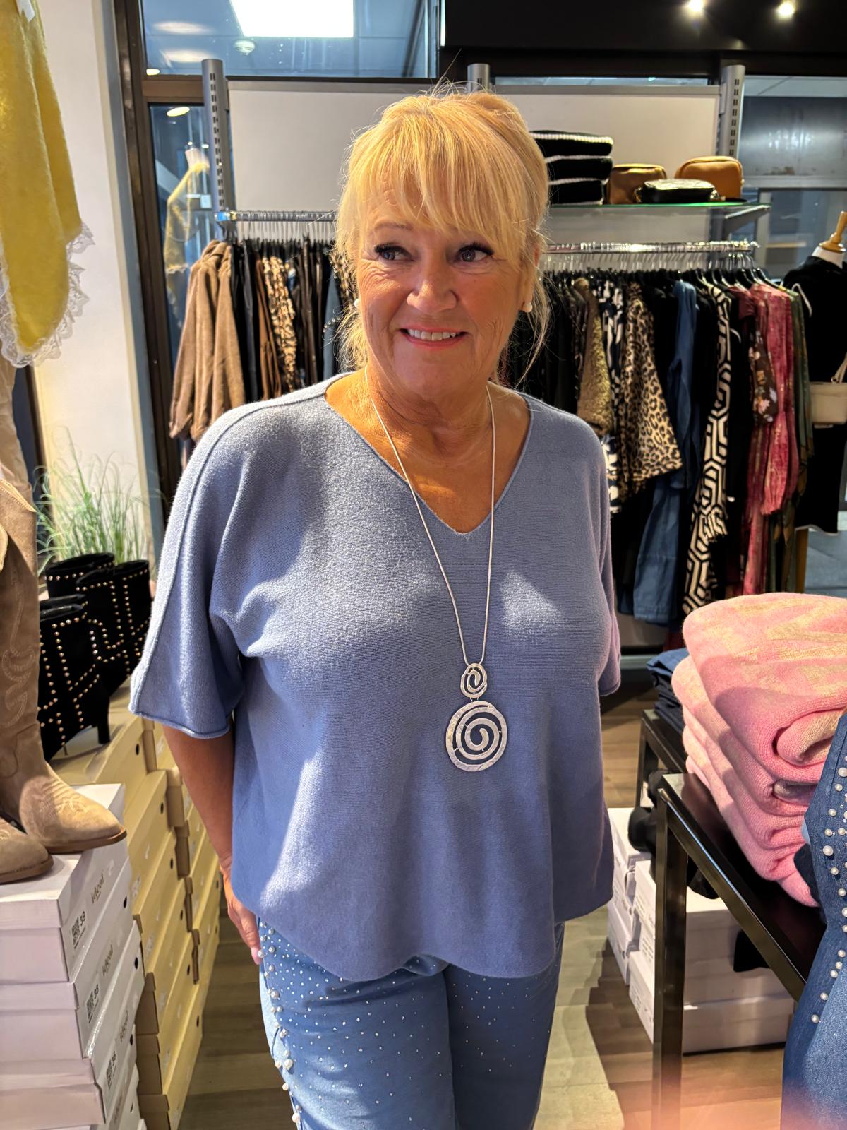 Lyhyemmän mallinen, v-aukkoinen viskoosisekoite neule.