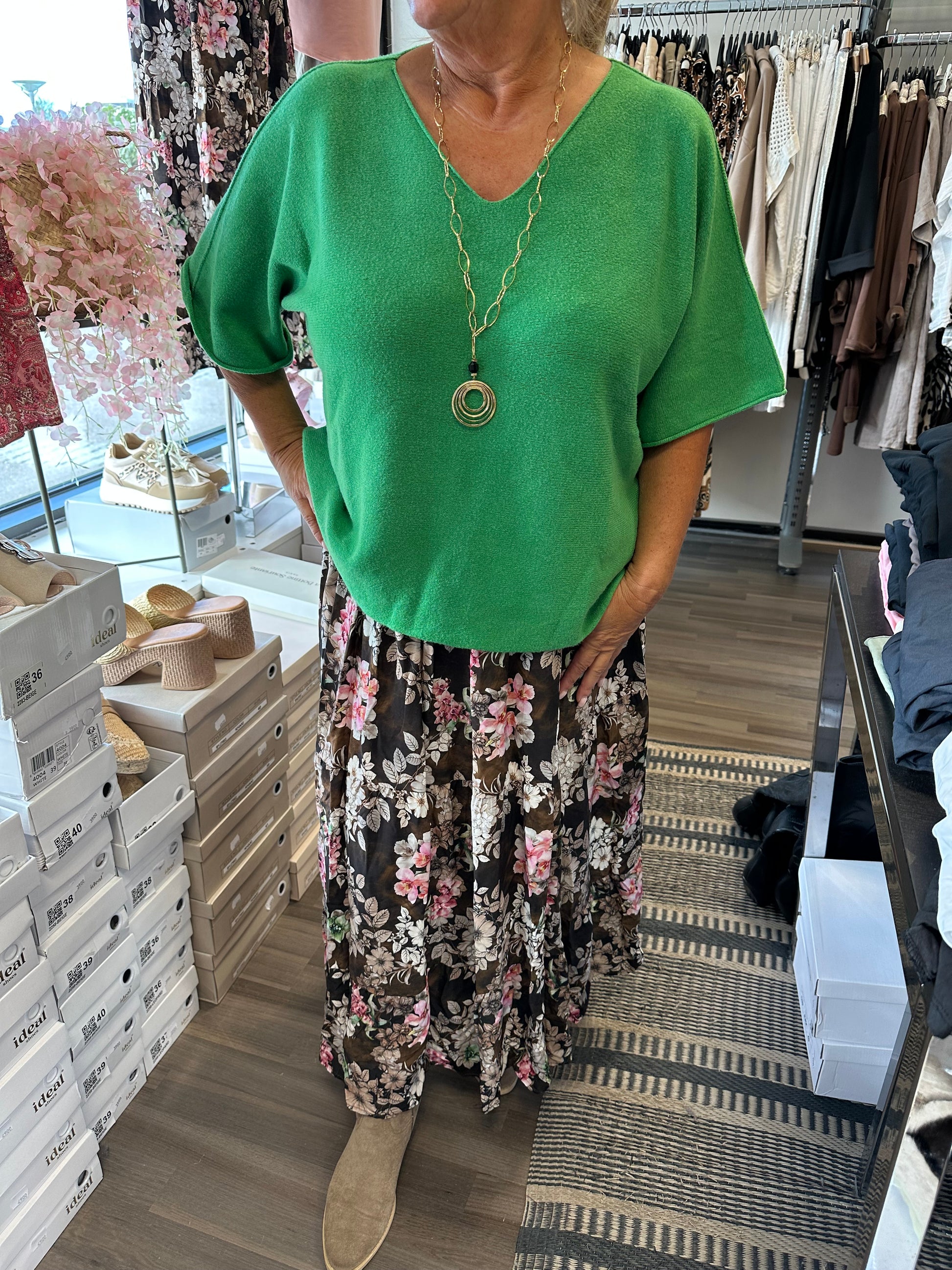 Lyhyemmän mallinen, v-aukkoinen viskoosisekoite neule.