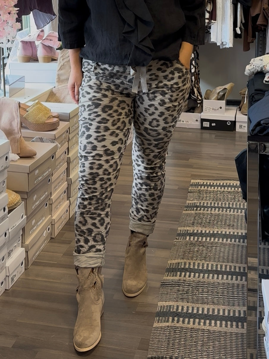 Joustavat, kevyet viskoosihousut. Joustava vyötärö, jossa nyöri. Edessä ja takana taskut.