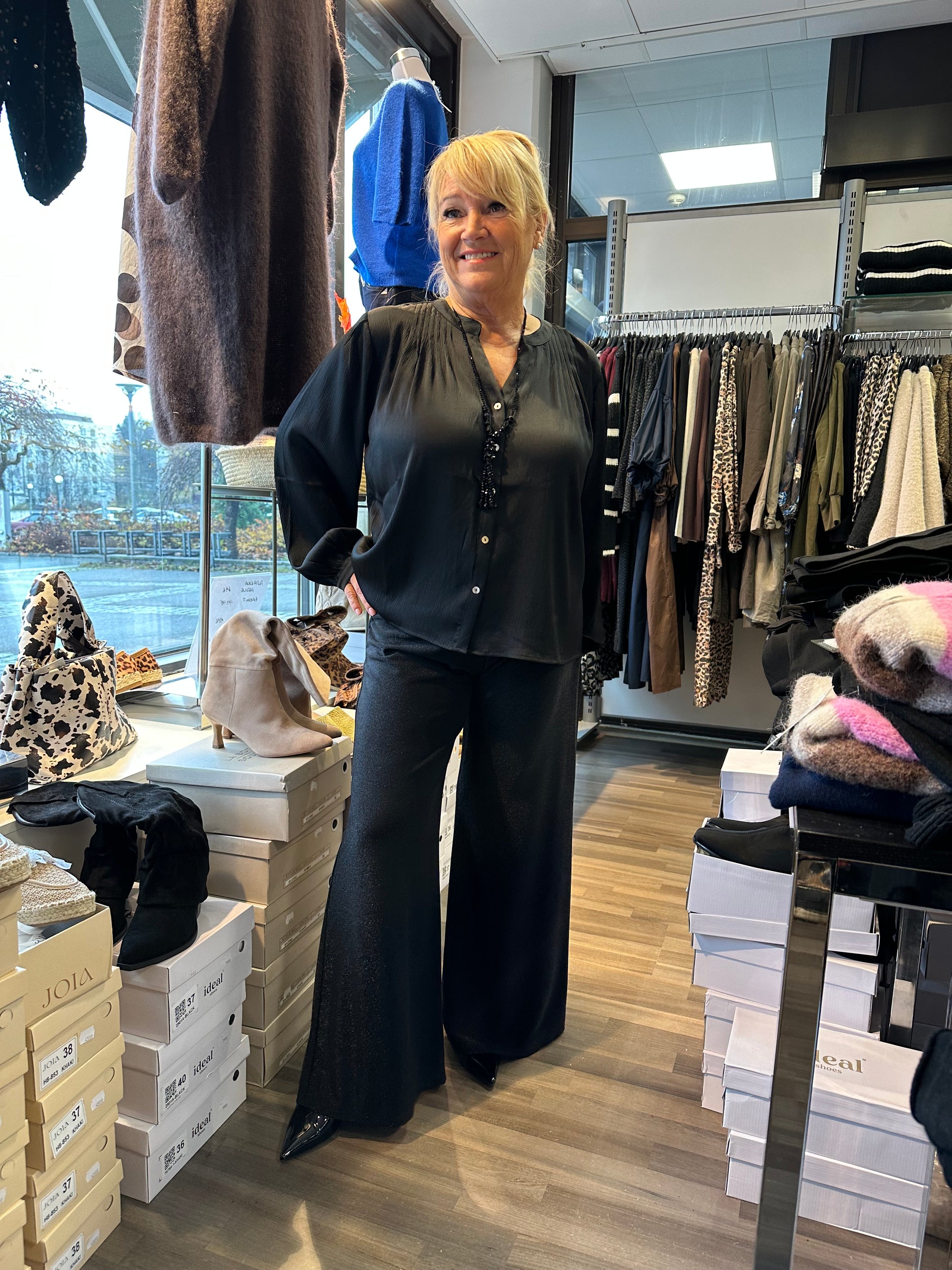 Makeet leveälahkeiset glitterhousut! Miellyttävää joustavaa lurex-materiaalia.