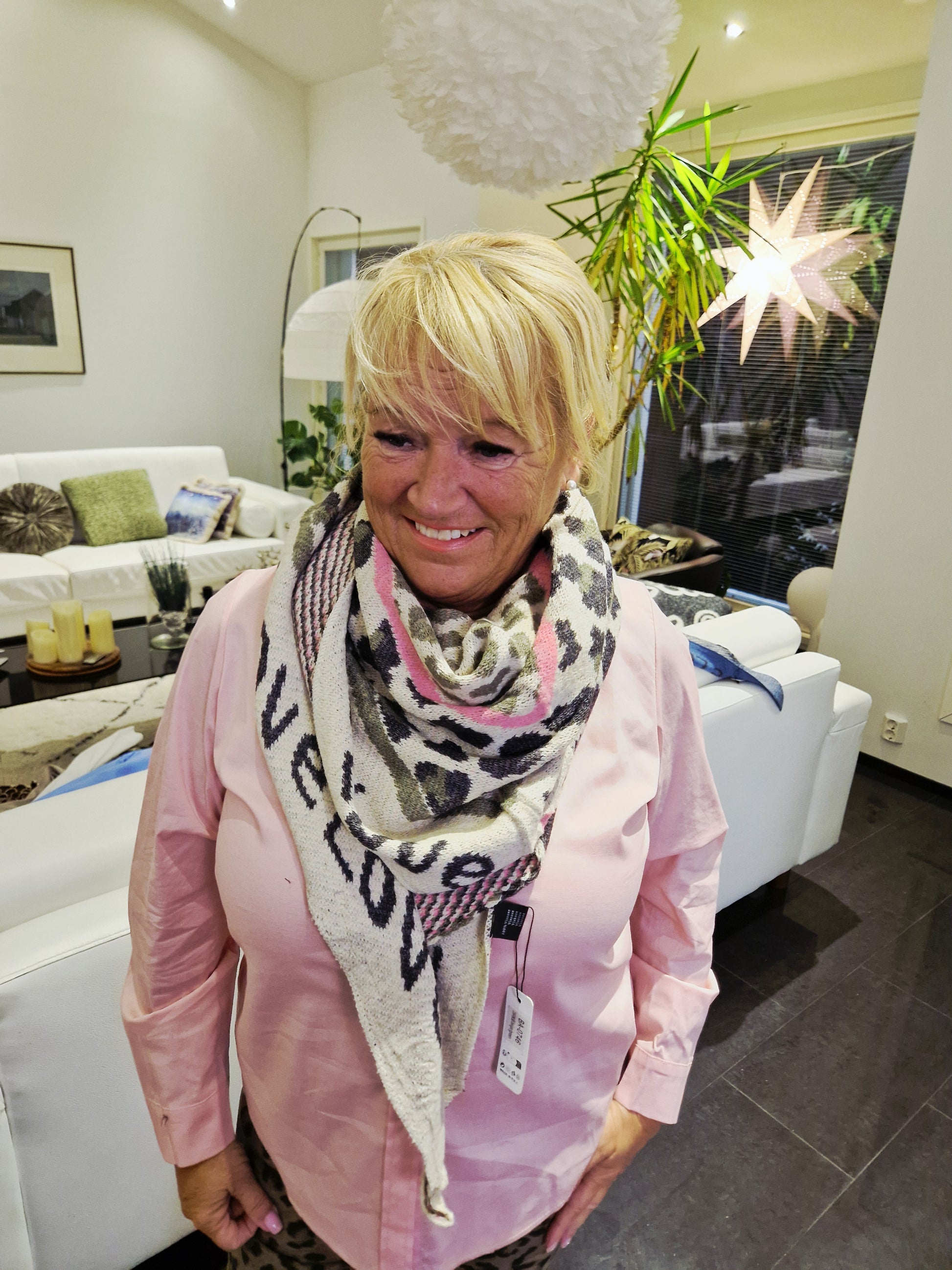 Reilunkokoinen kolmionhuivi, reunassa love teksti.