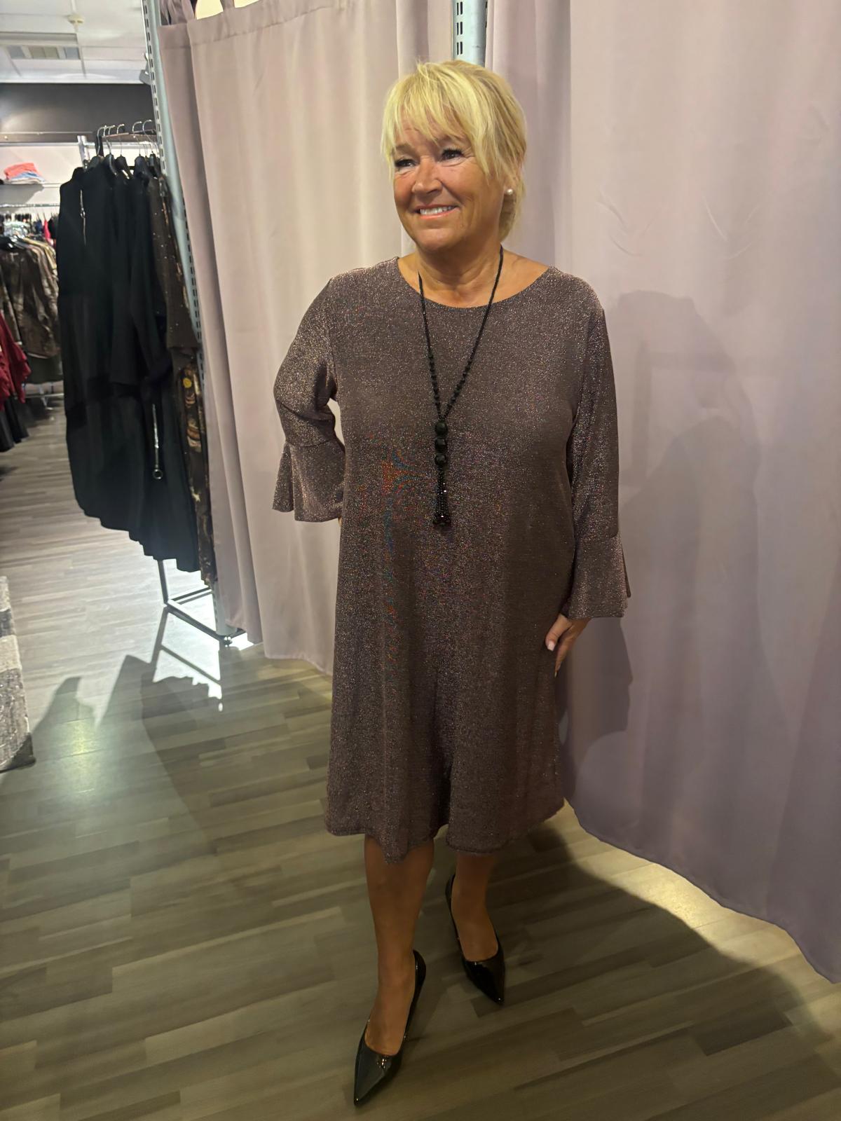 Reilunkokoisen mitoituksen lurex mekko, Ihanan kevyt päällä!