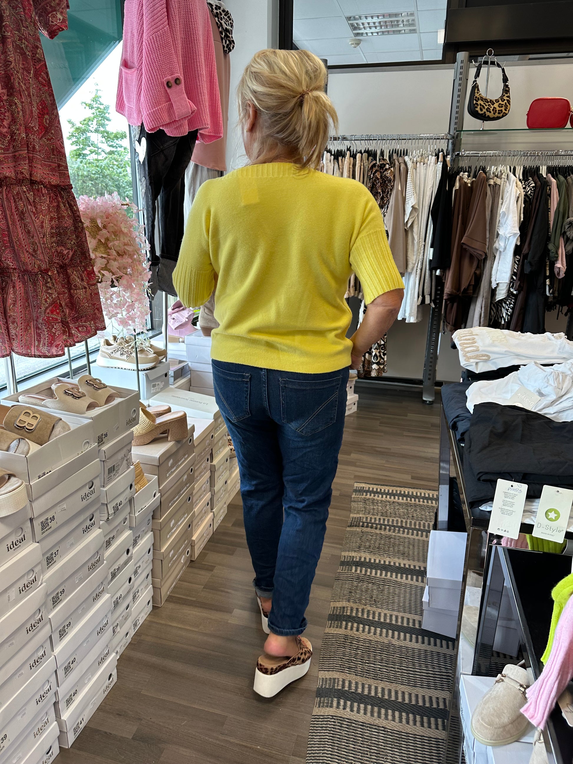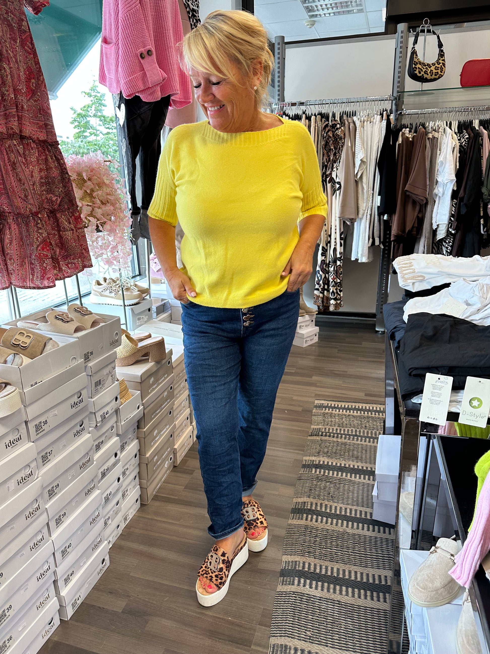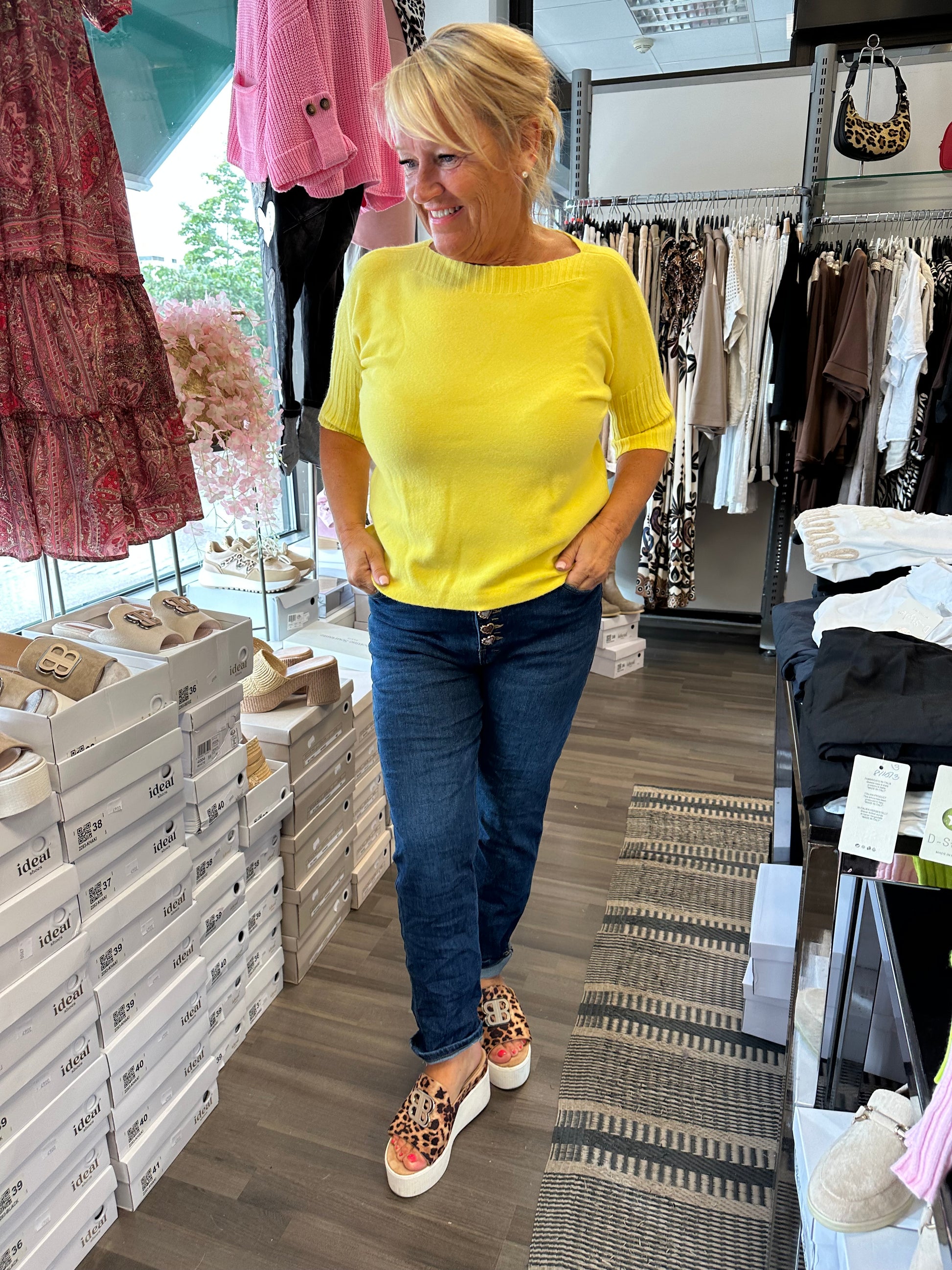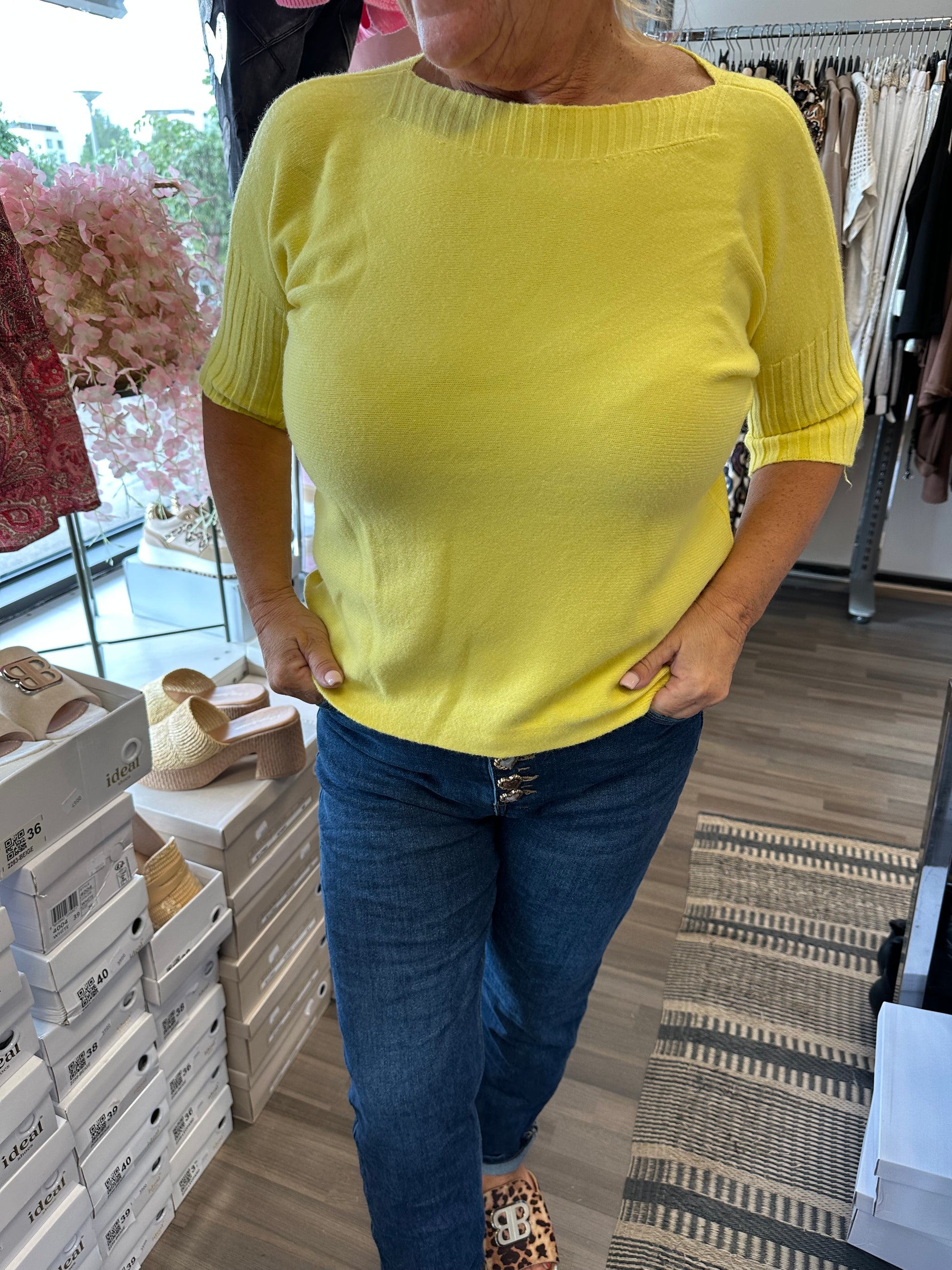 Ihanan pehmeä neule venepääntiellä ja lyhyillä resorihihoilla.