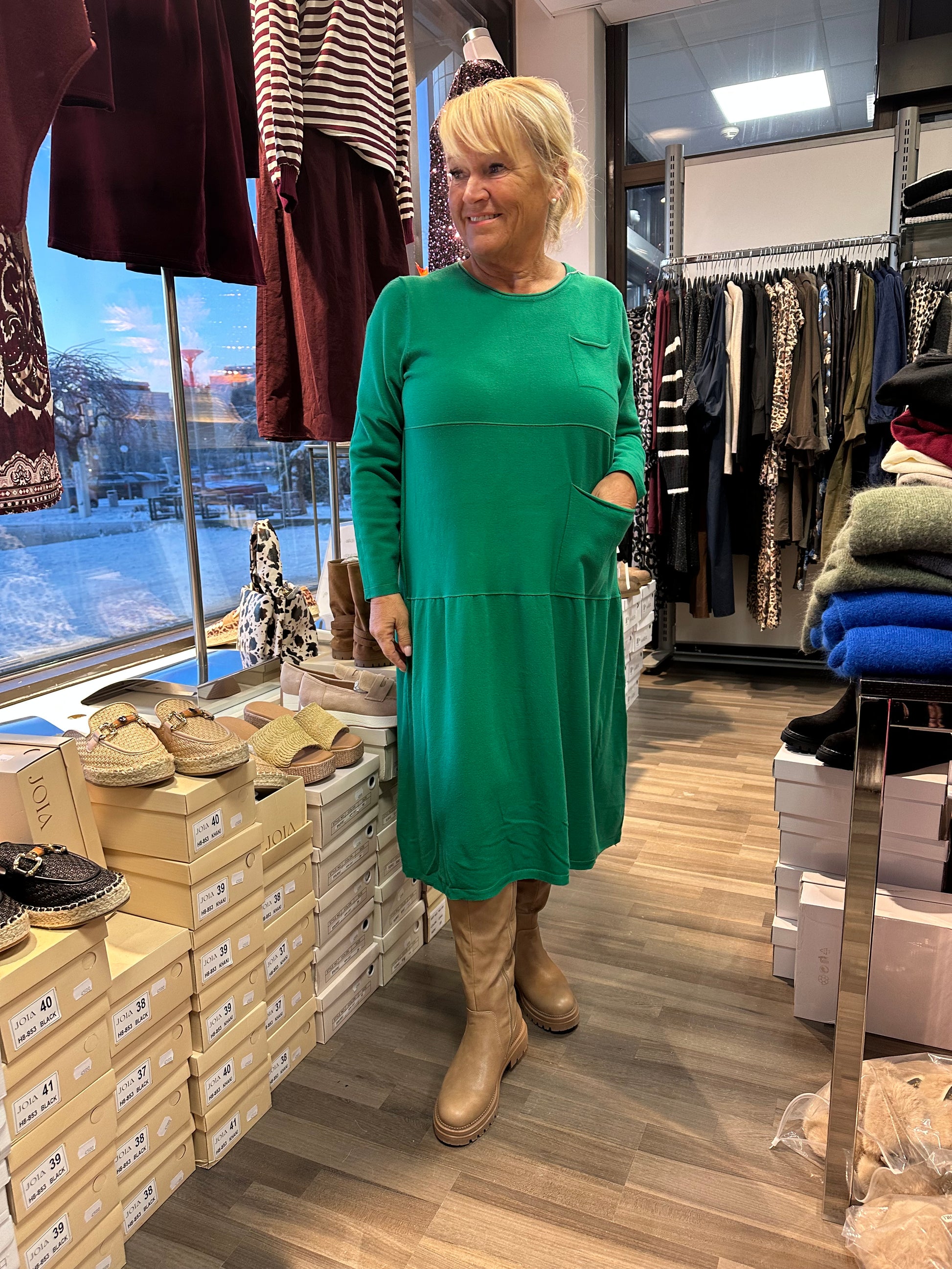 Kiva neulemekko miellyttävän joustavaa ja sileäpintaista neulosta! Kaksi taskua koristeina. Pyöreä pääntie ja pitkät hihat. Kaksi poikkisaumaa.