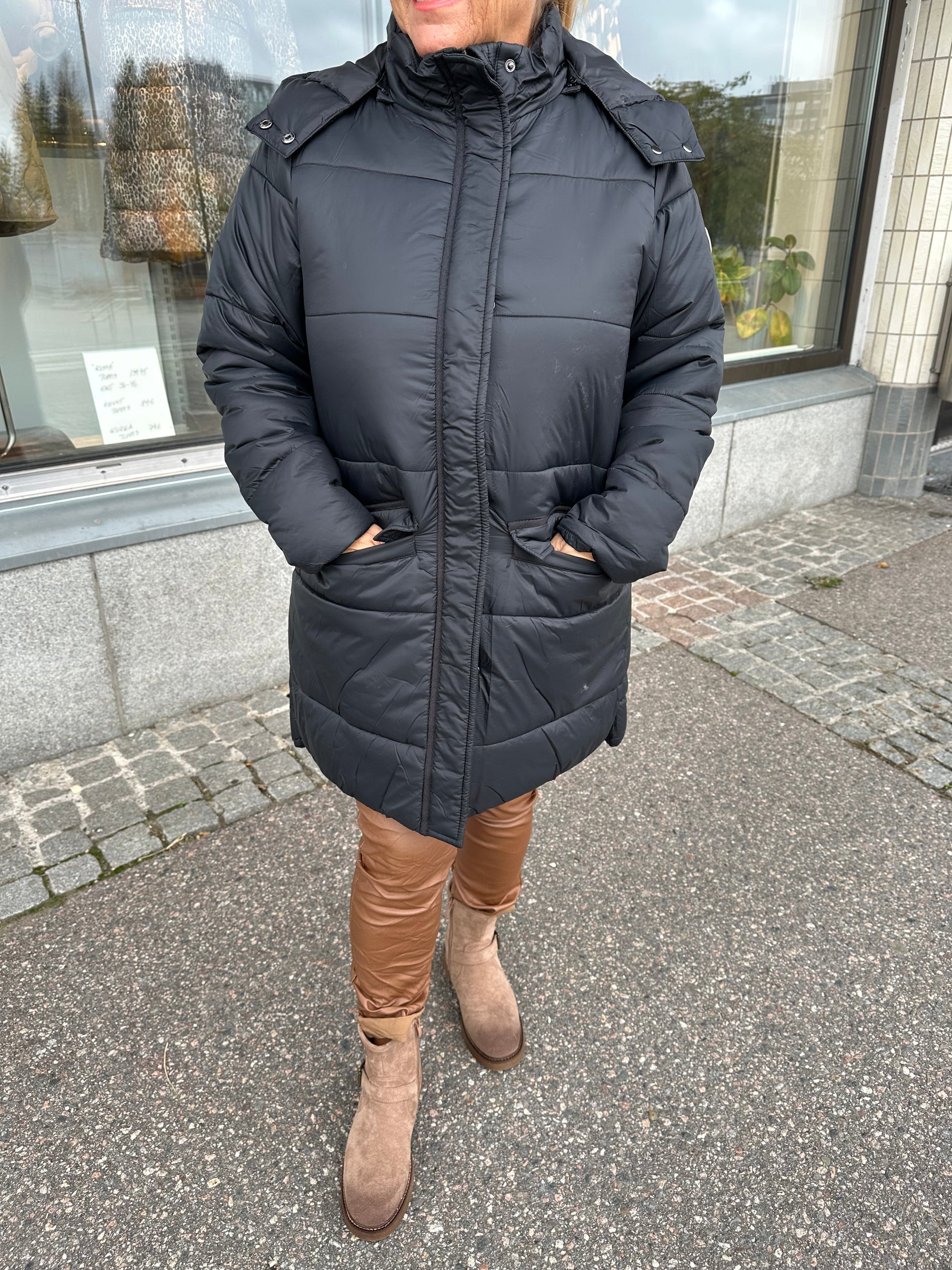 Midimittainen toppatakki musta