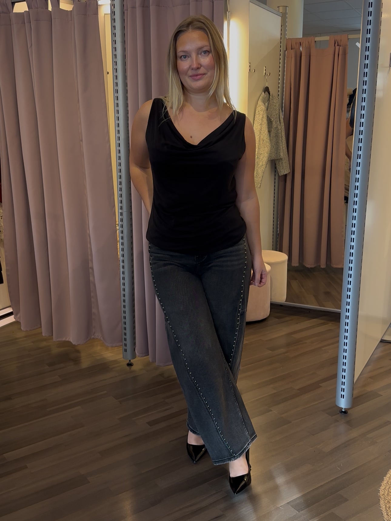 Yhdenkoon toppi miellyttävän pehmeää ja joustavaa modaalia. Kaunis vesiputouskaulus.