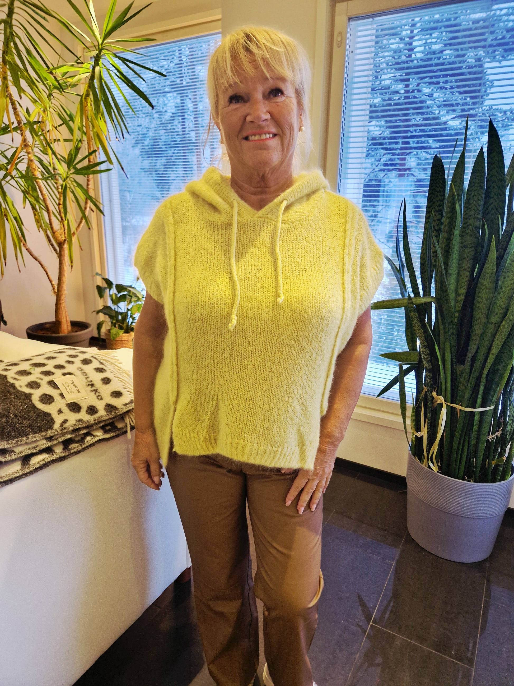 Mohair liivi hupulla keltainen