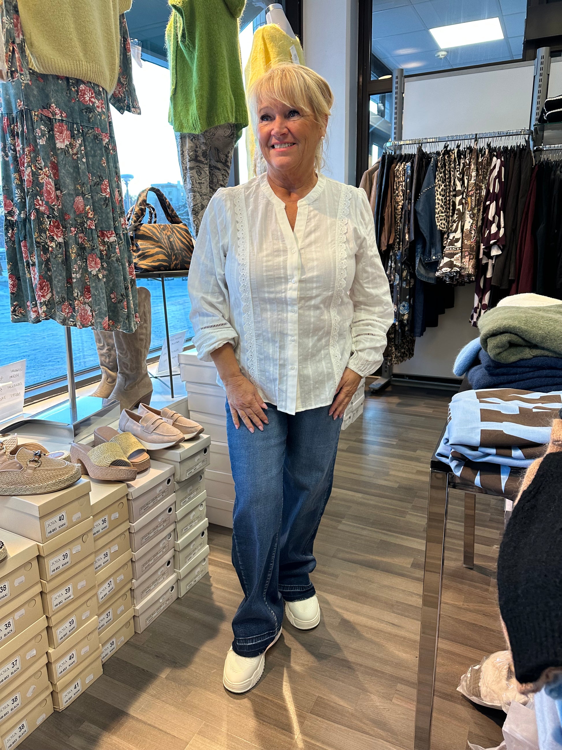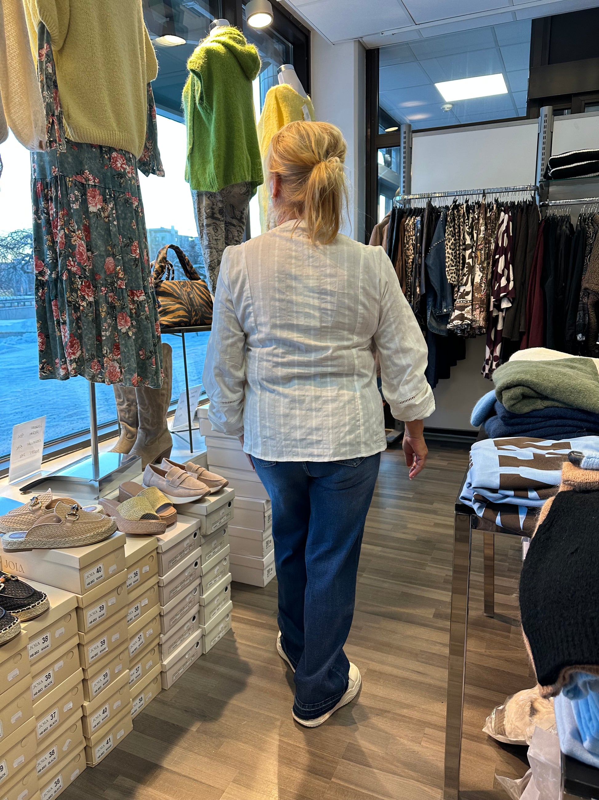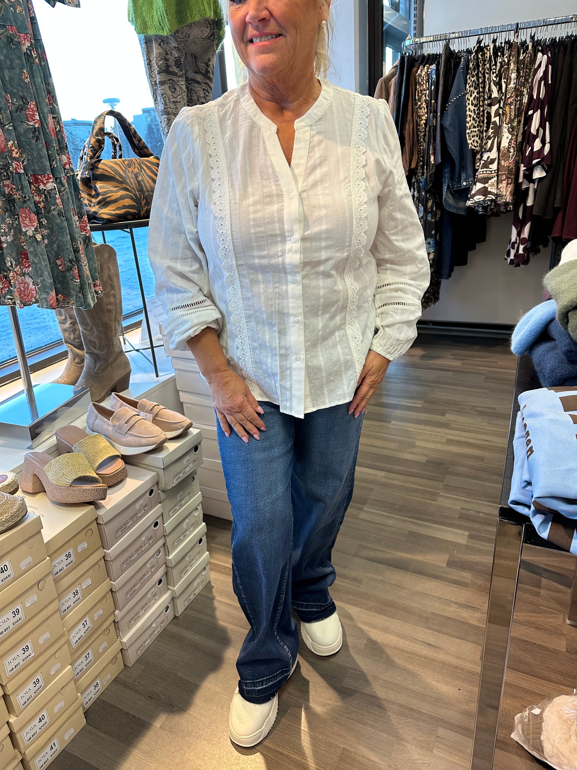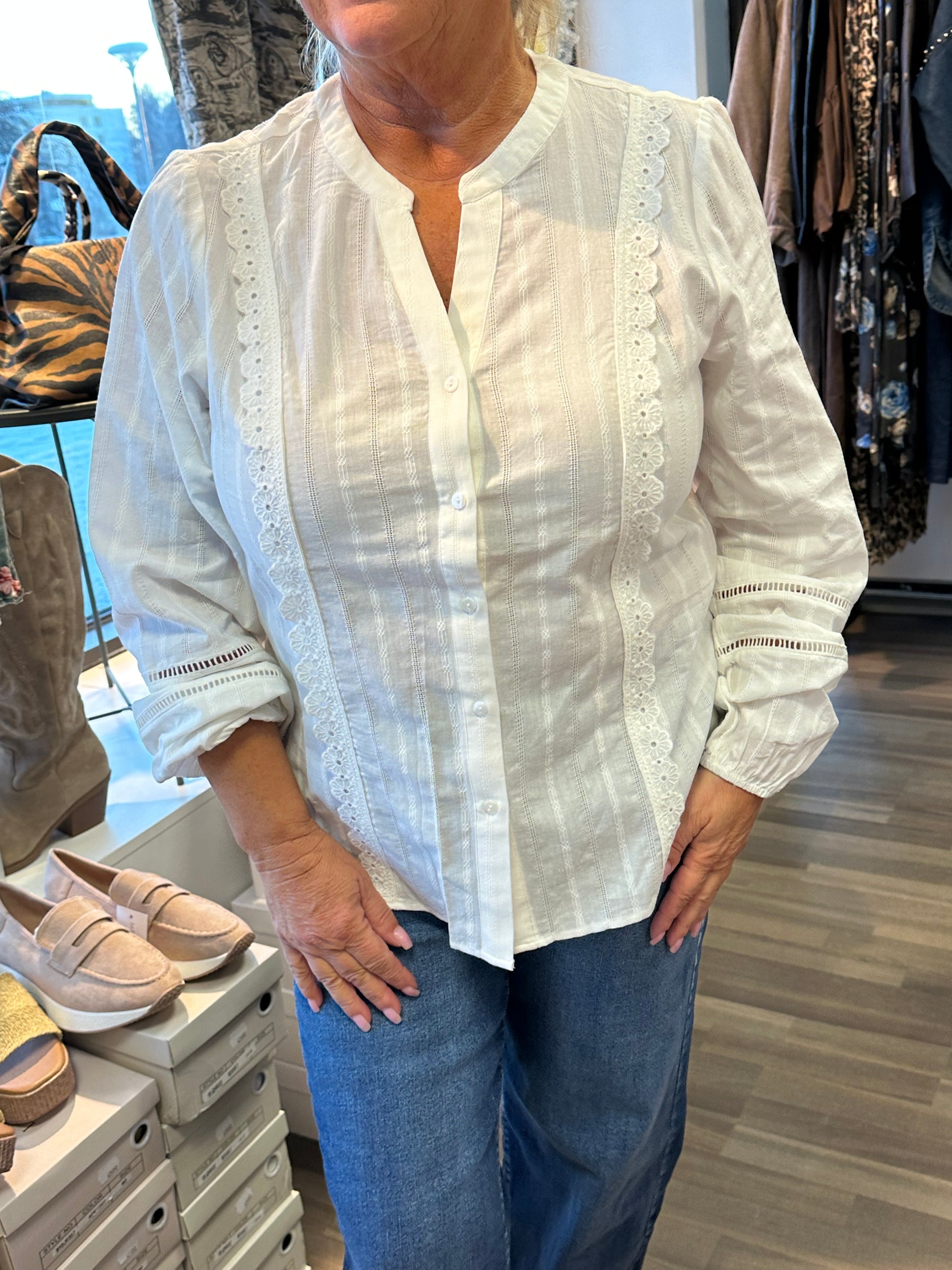 Kaunis klassinen paitis kevyttä puuvillaa. Hieman pussimaiset hihat ja hihansuissa joustava kuminauha. Napit edessä koko pituudelta.