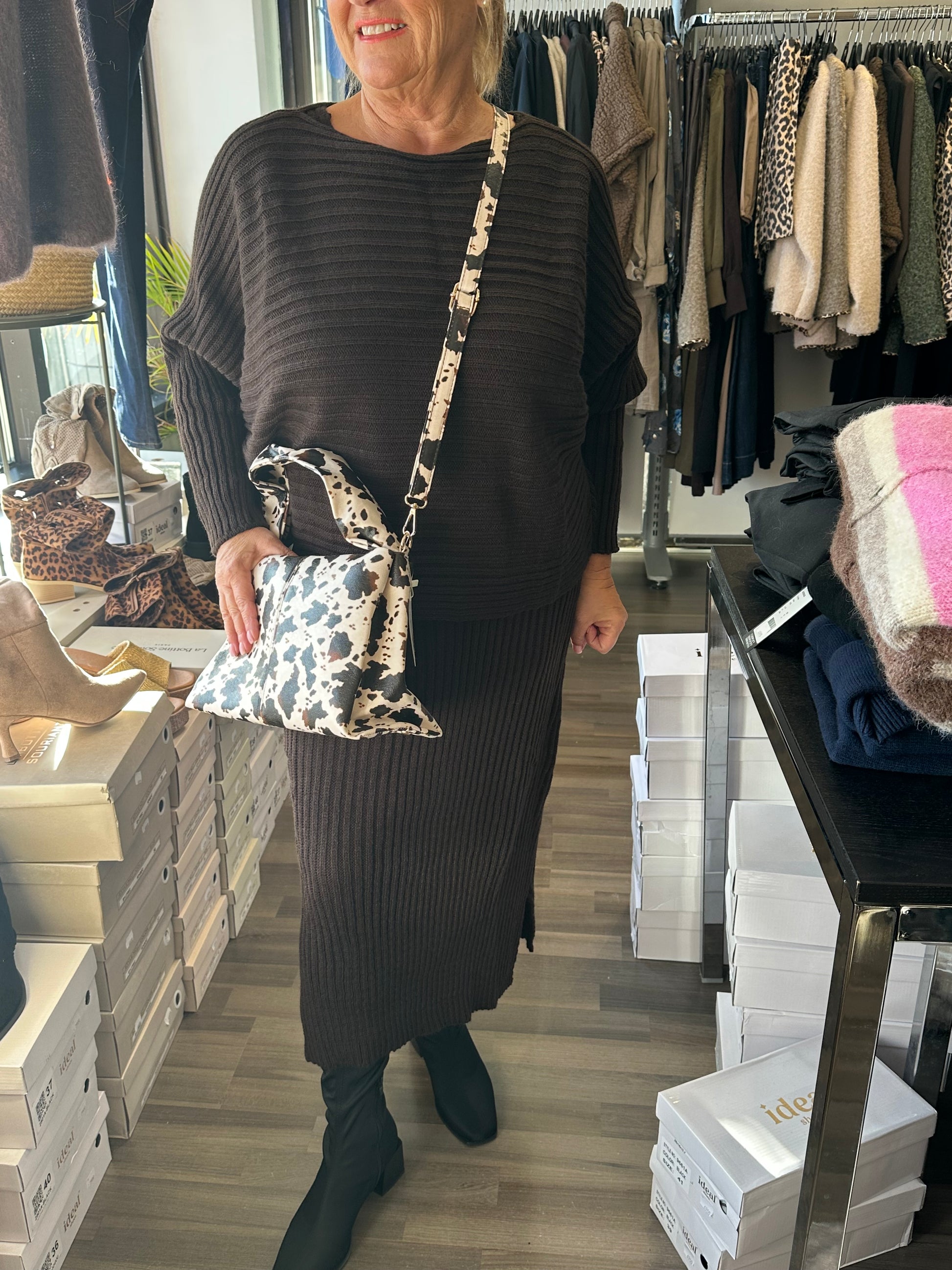 Neulemekko ja pusero ruskea