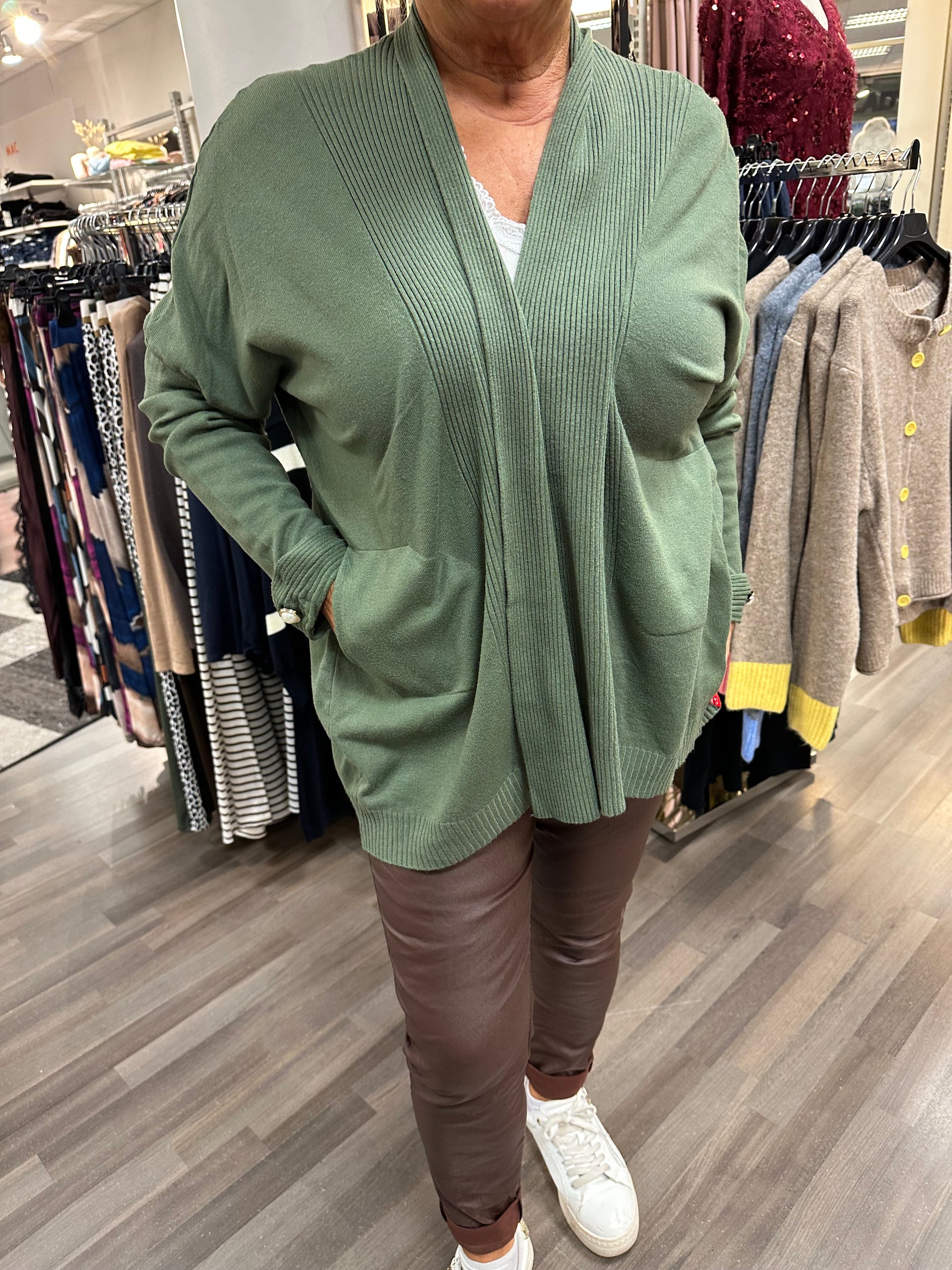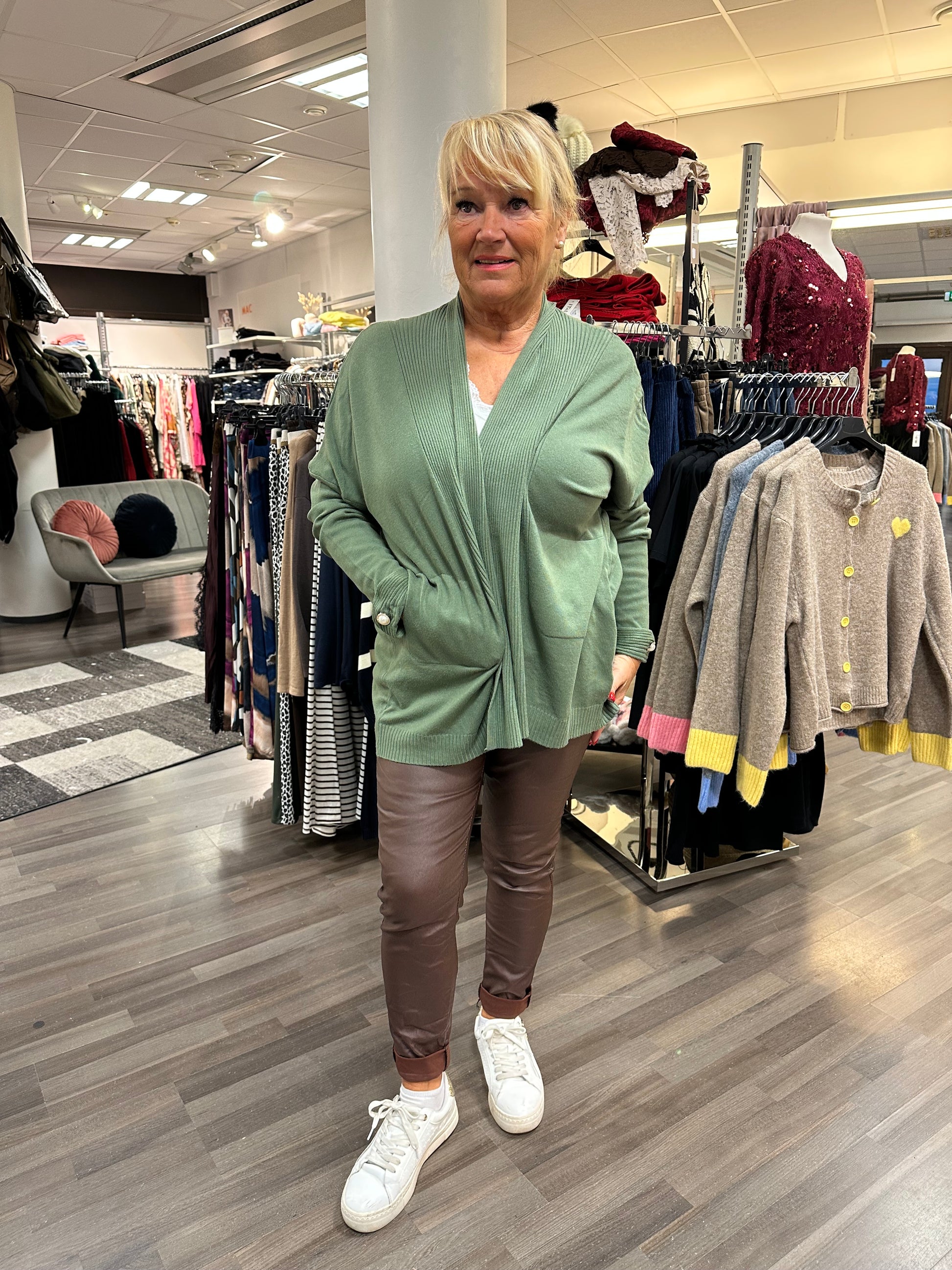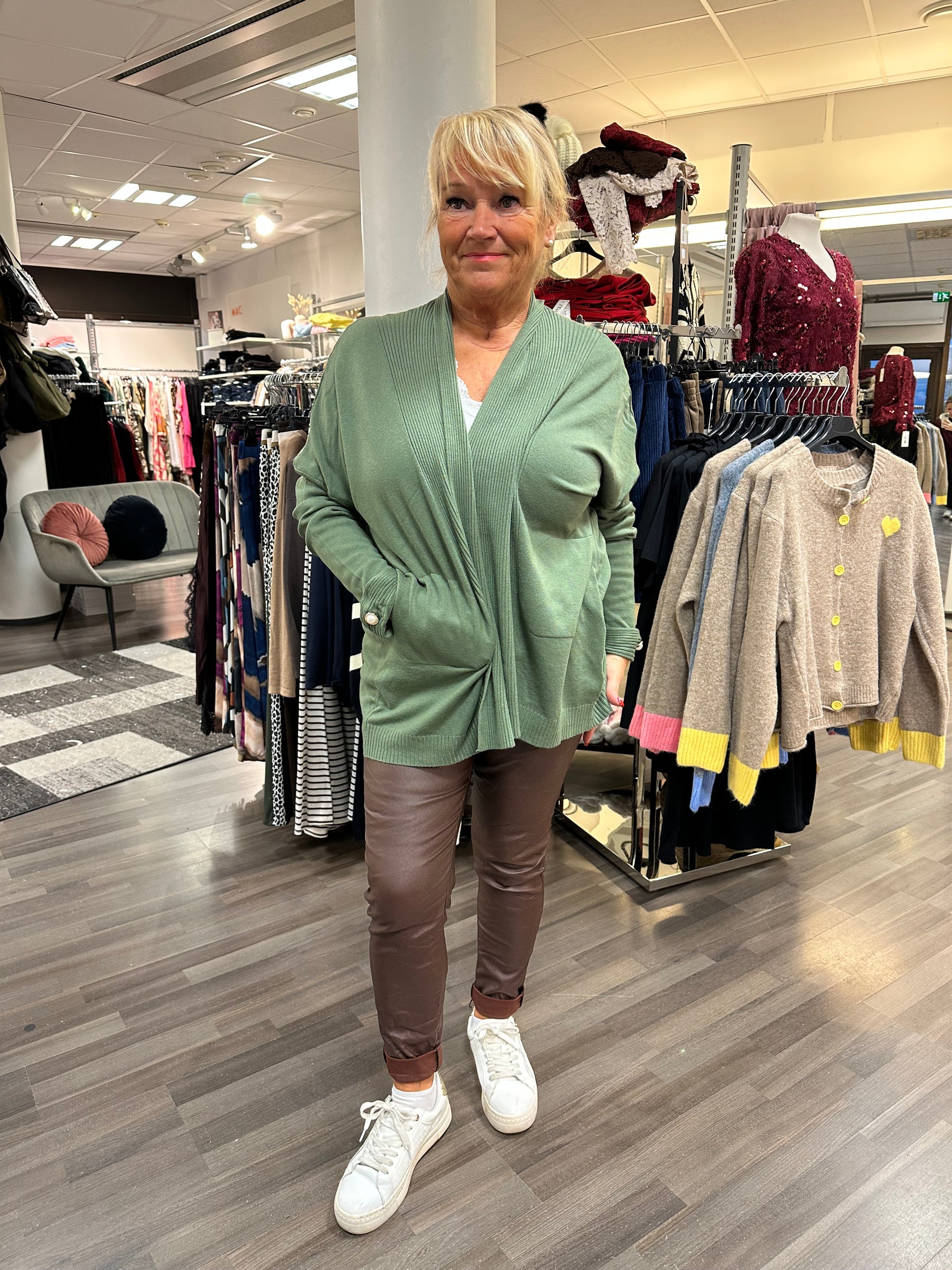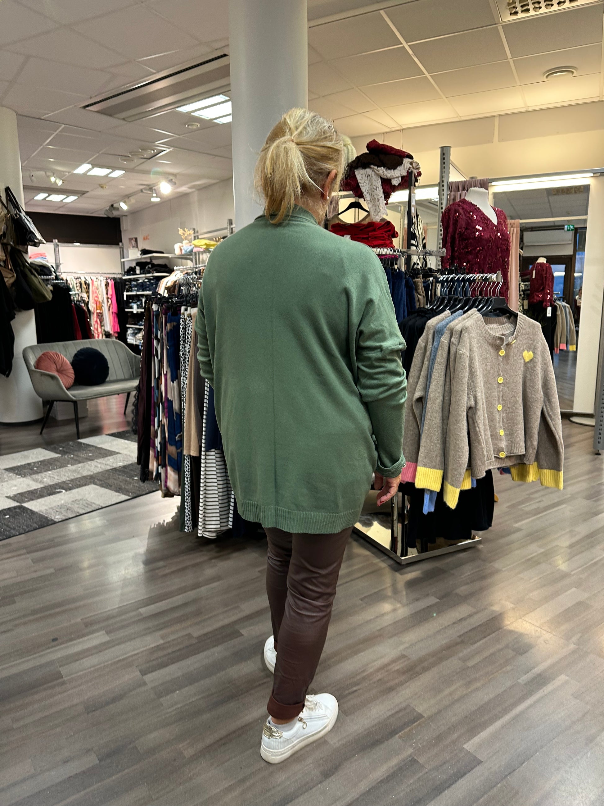 Mukavan tuntuinen neuletakki joustavaa ja kevyttä neulosta. Reunoilla kiva resori ja hihansuissa helmikoristeet.