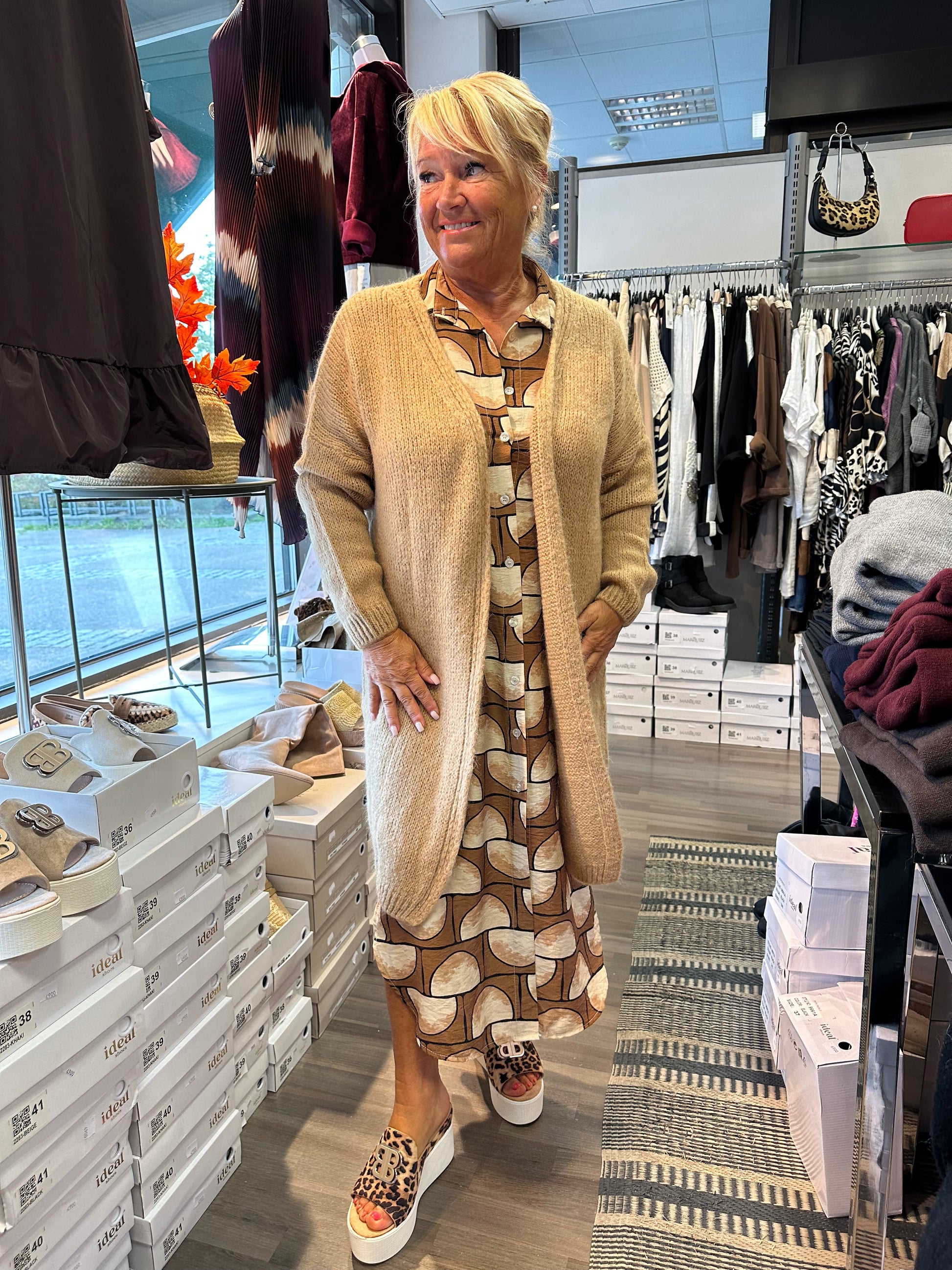 Puolipitkä neuletakki mohairsekoitetta. Kyynärpäissä glittertähdet antaa ilmettä.