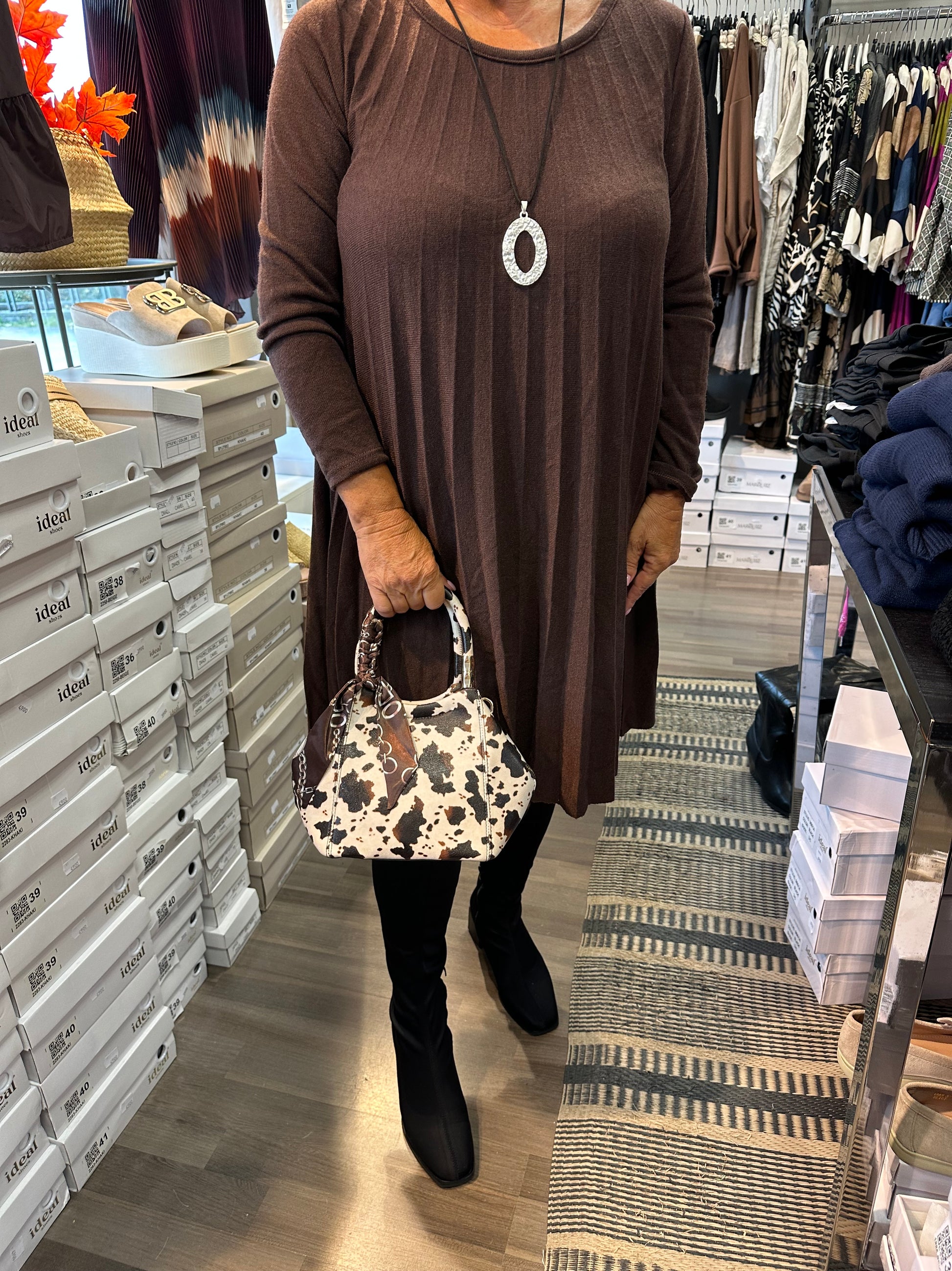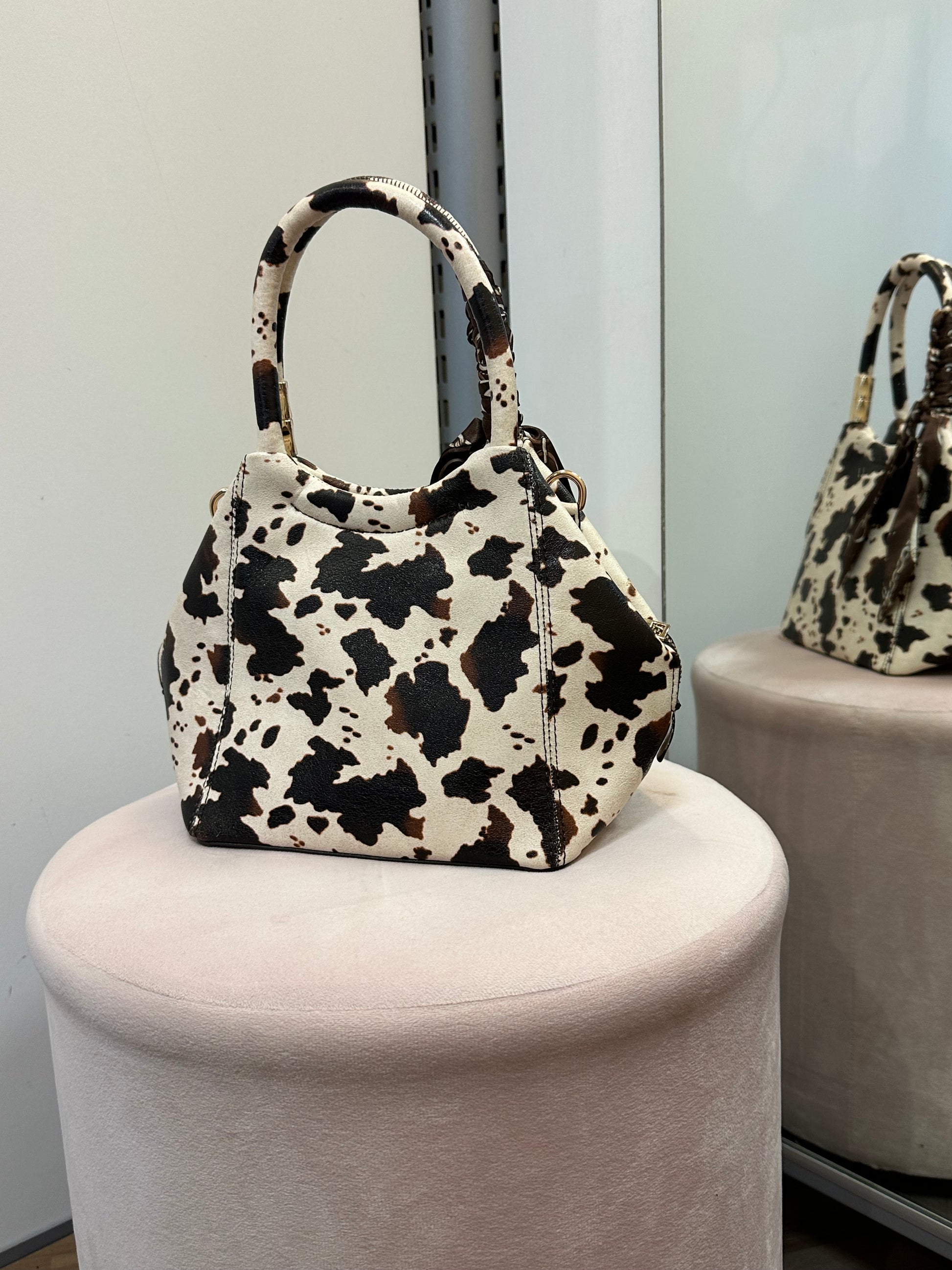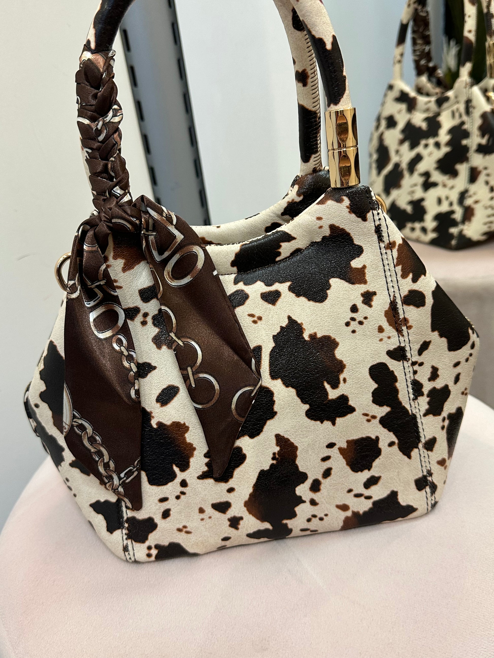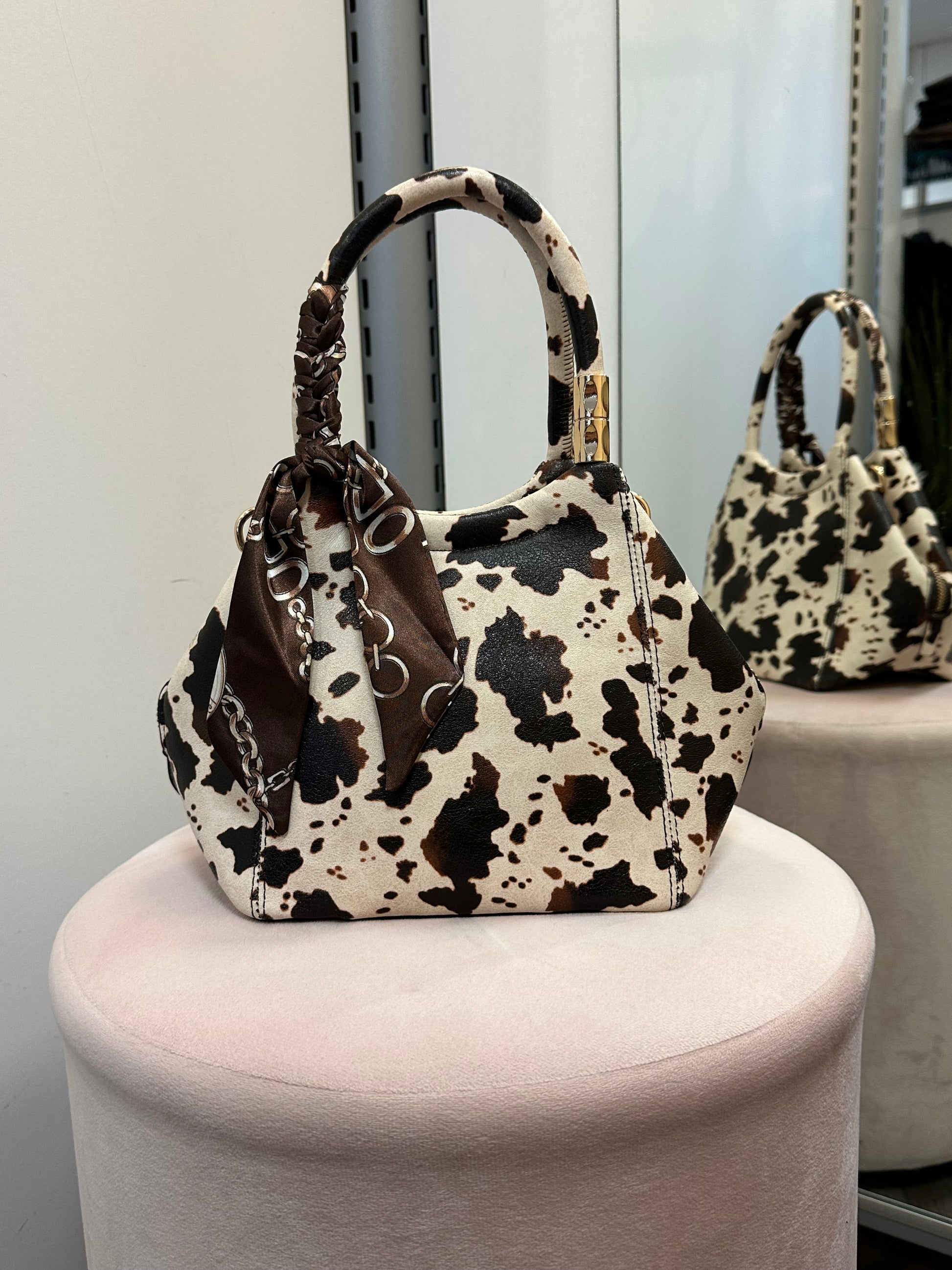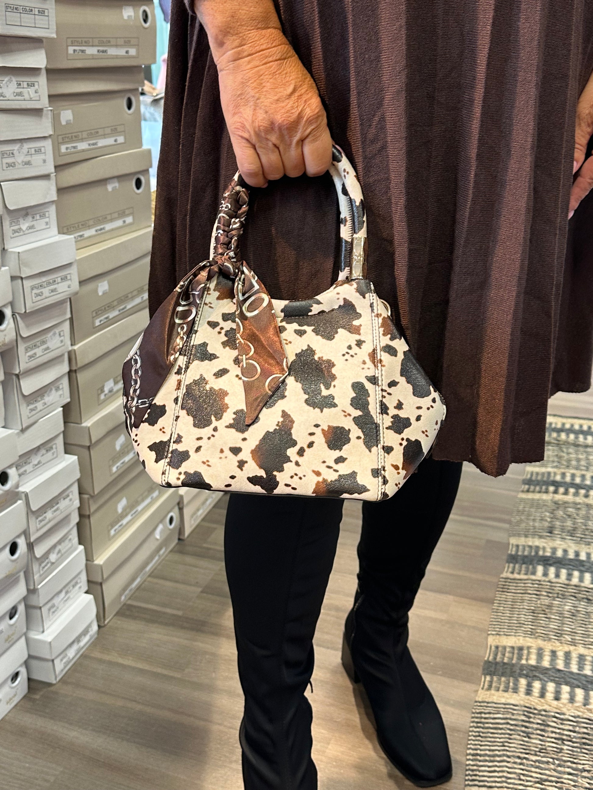 Pikkulaukku huivilla lehmä