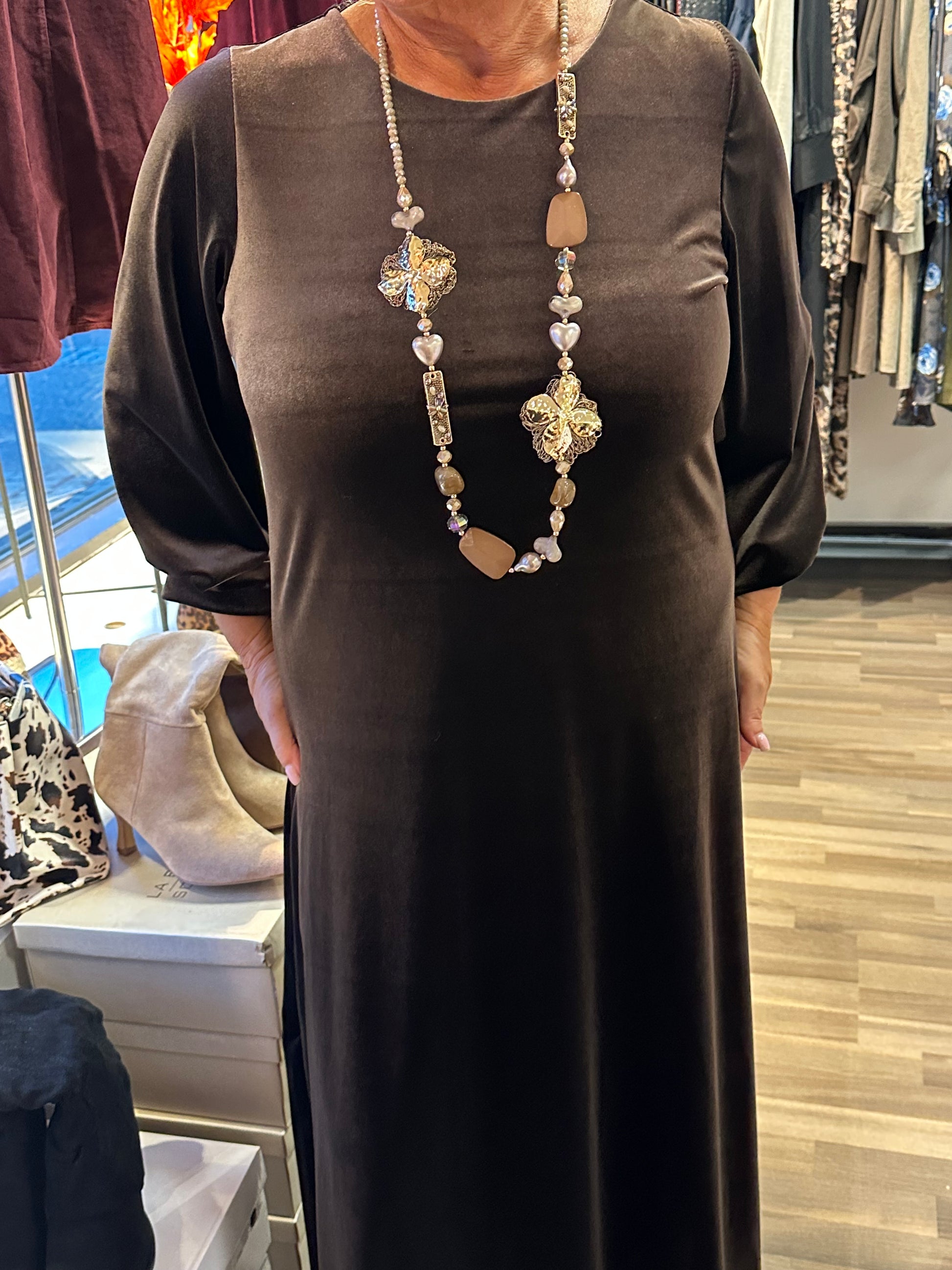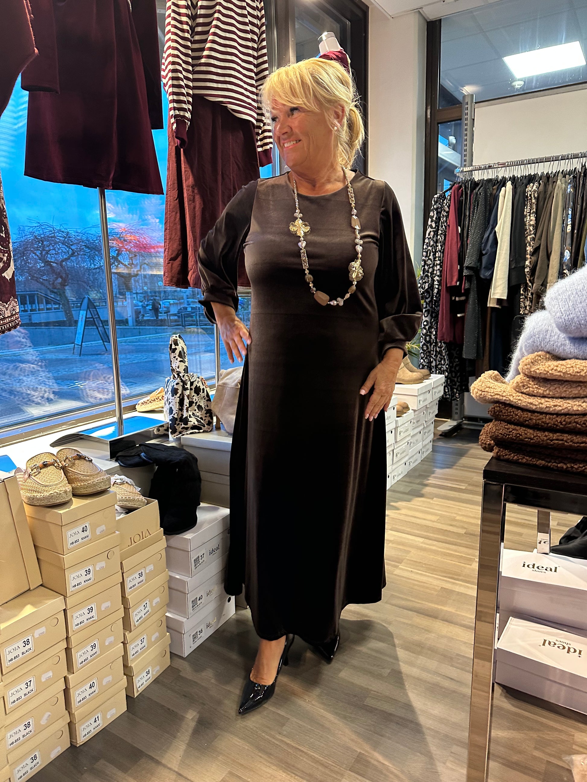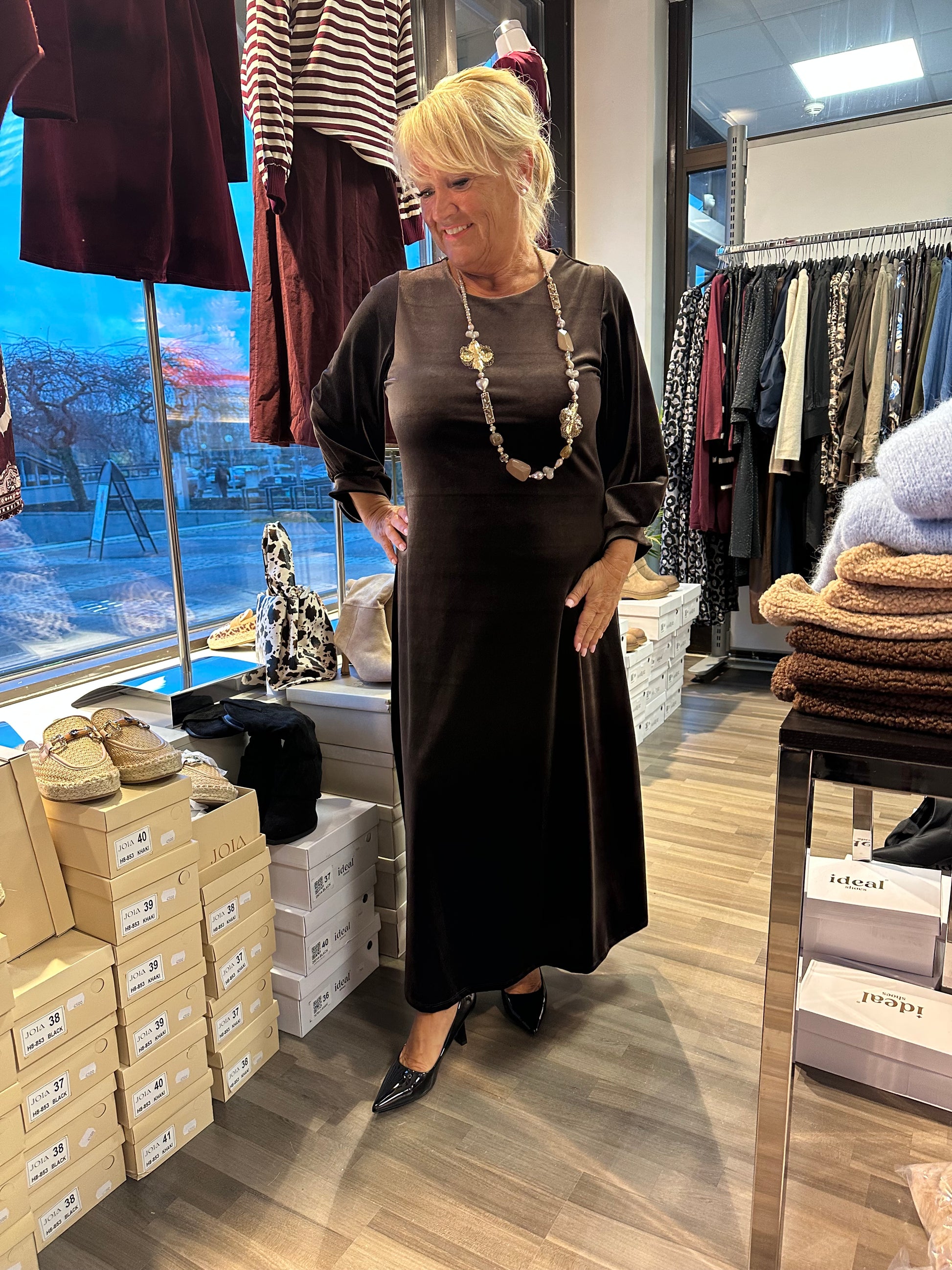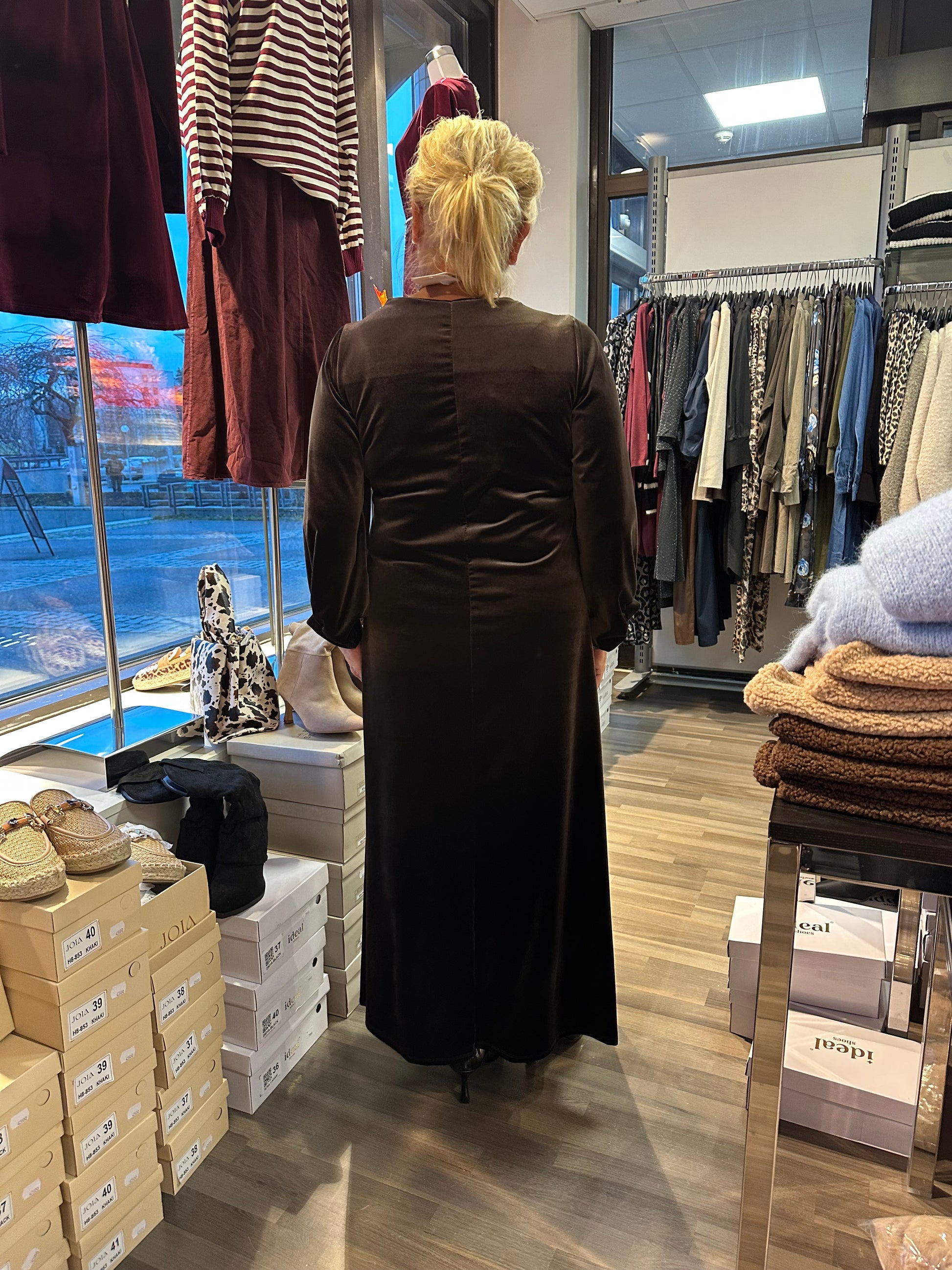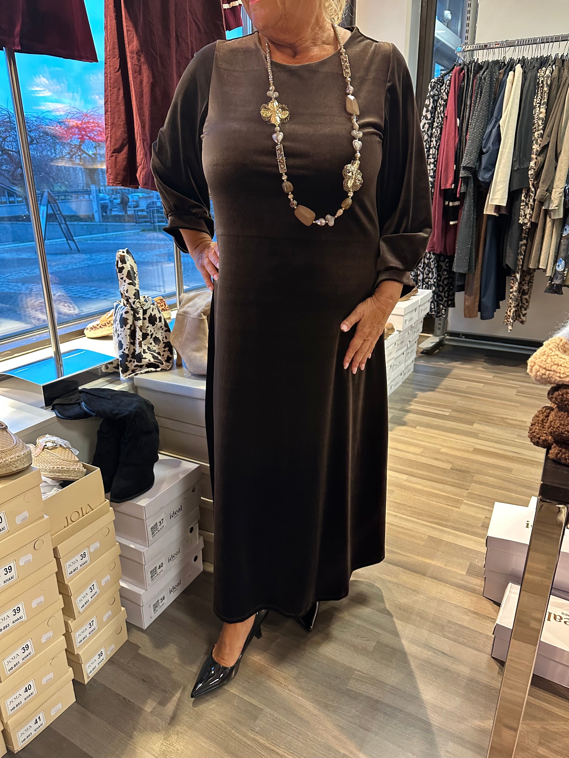 Pitkä samettiveluurimekko ruskea