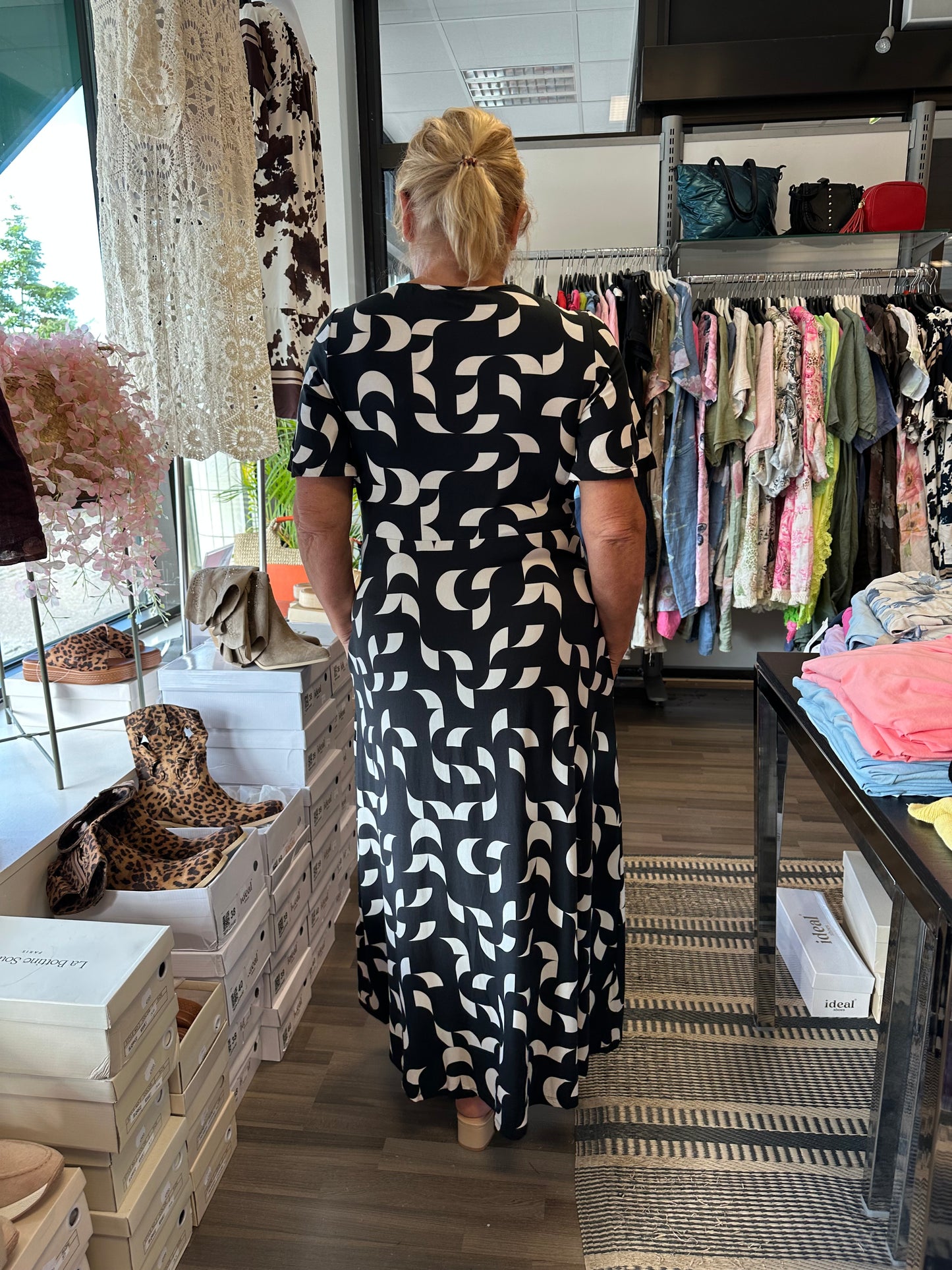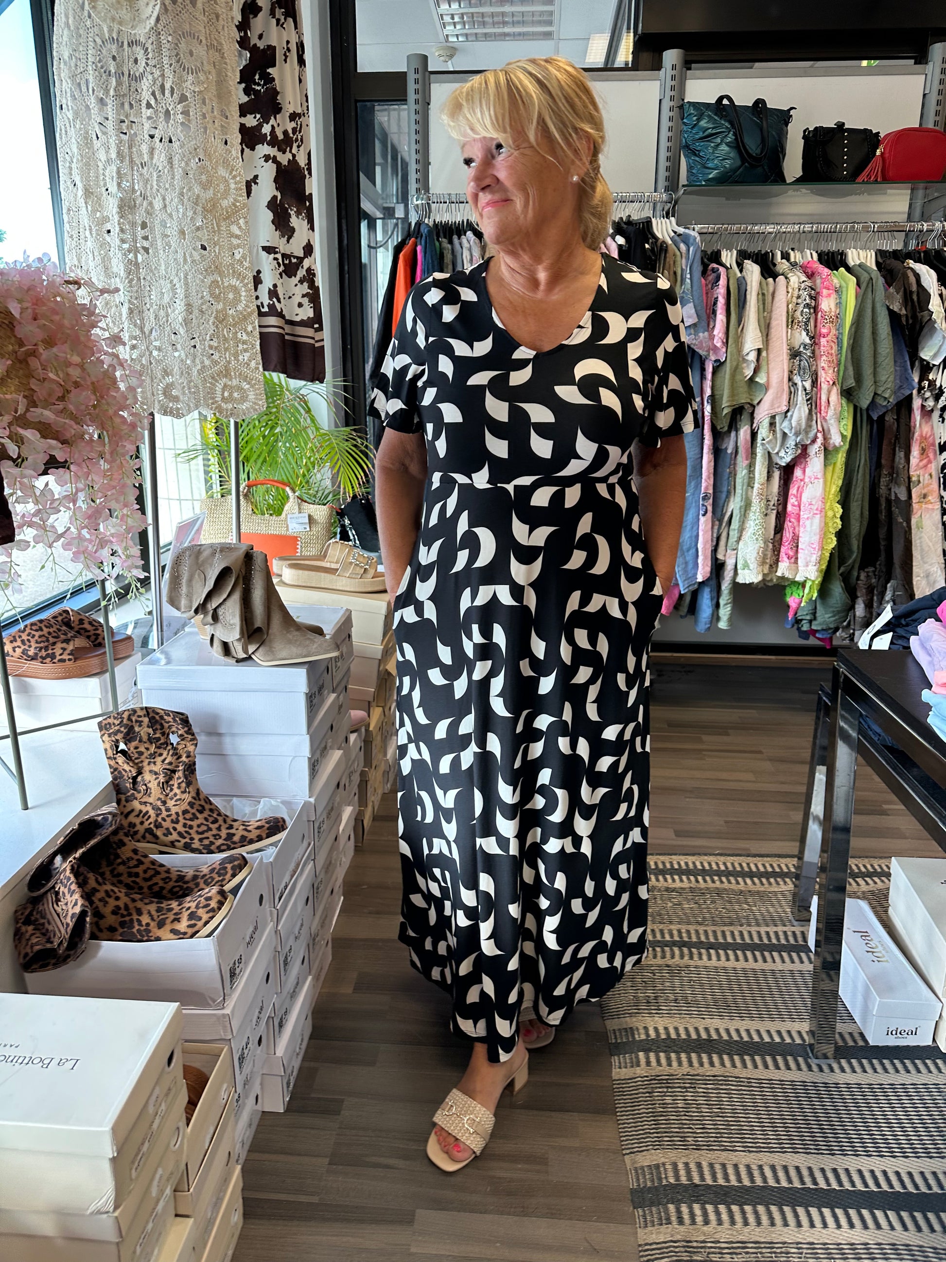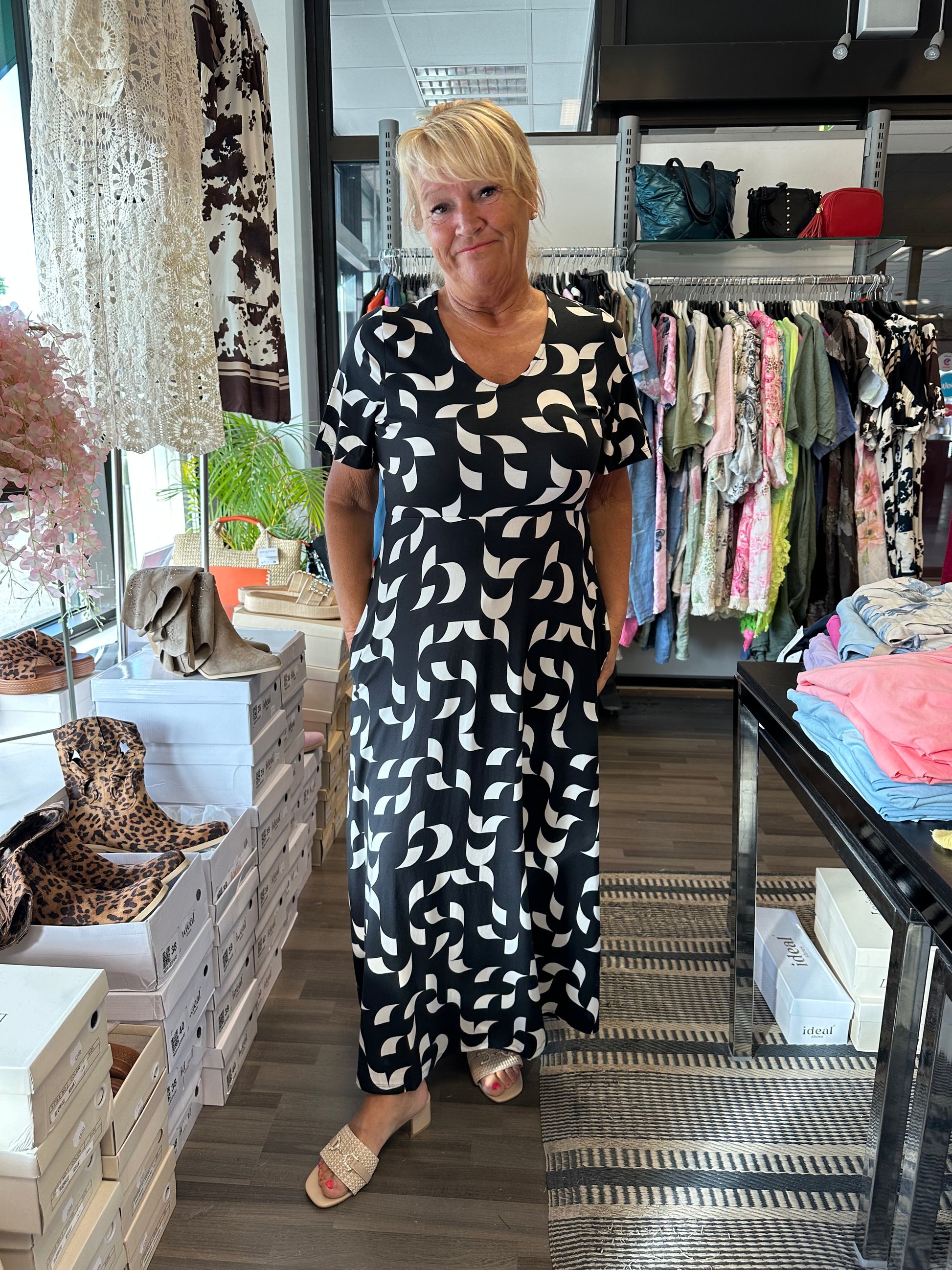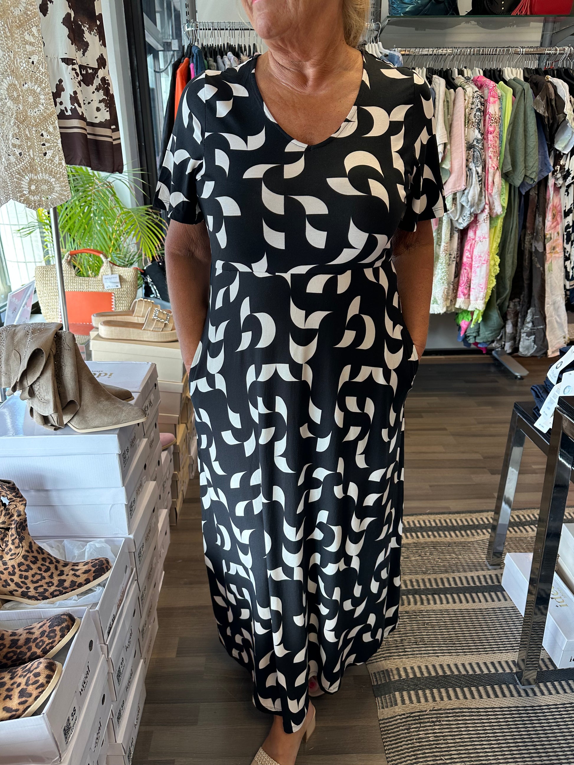 Pitkä trikoomekko mustavalkoinen