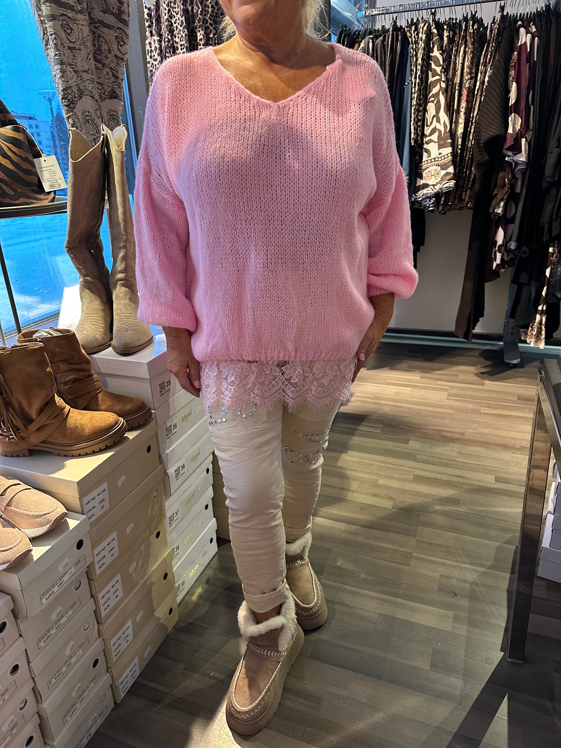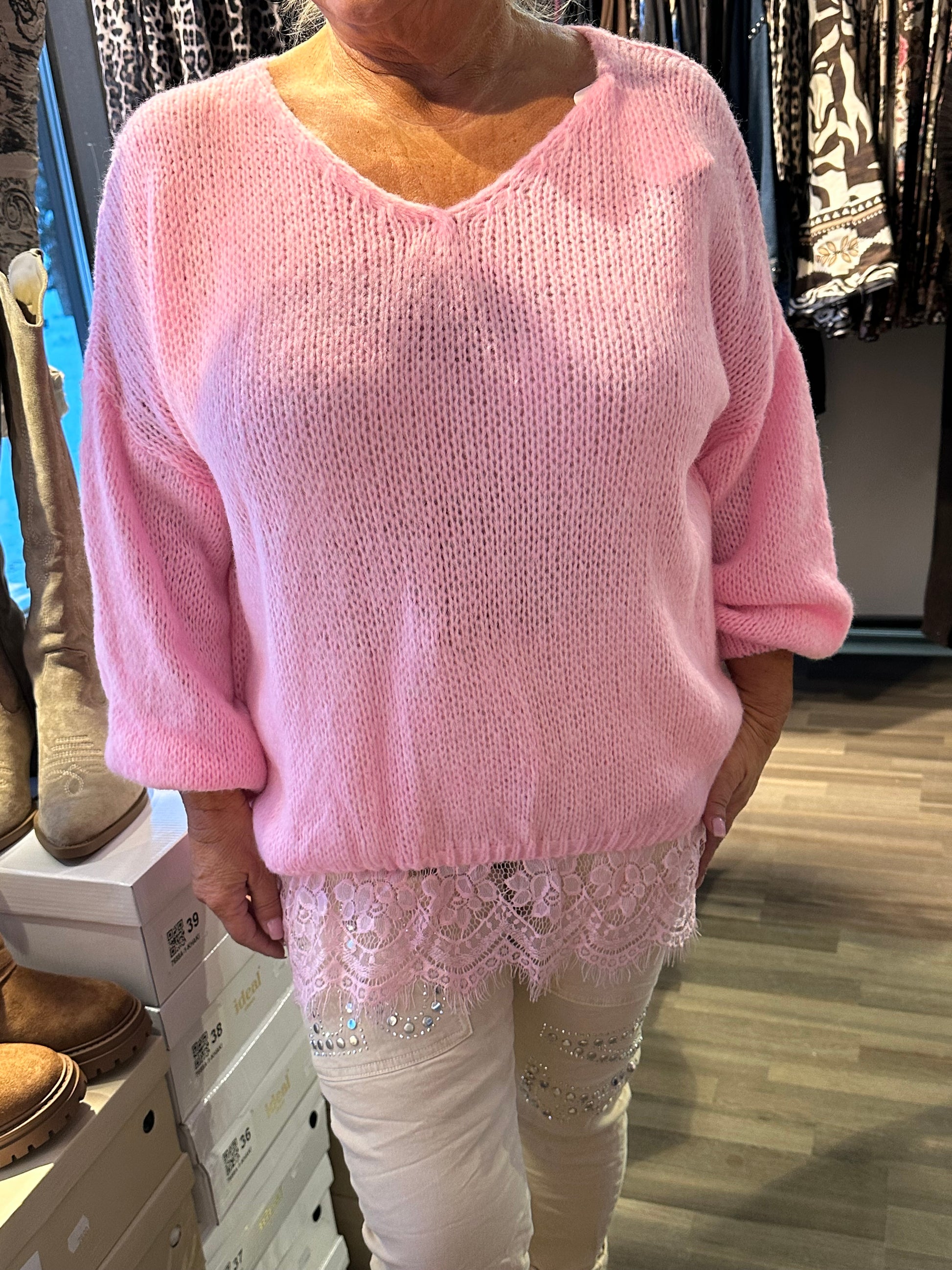 Pitsihelmainen neule roosa