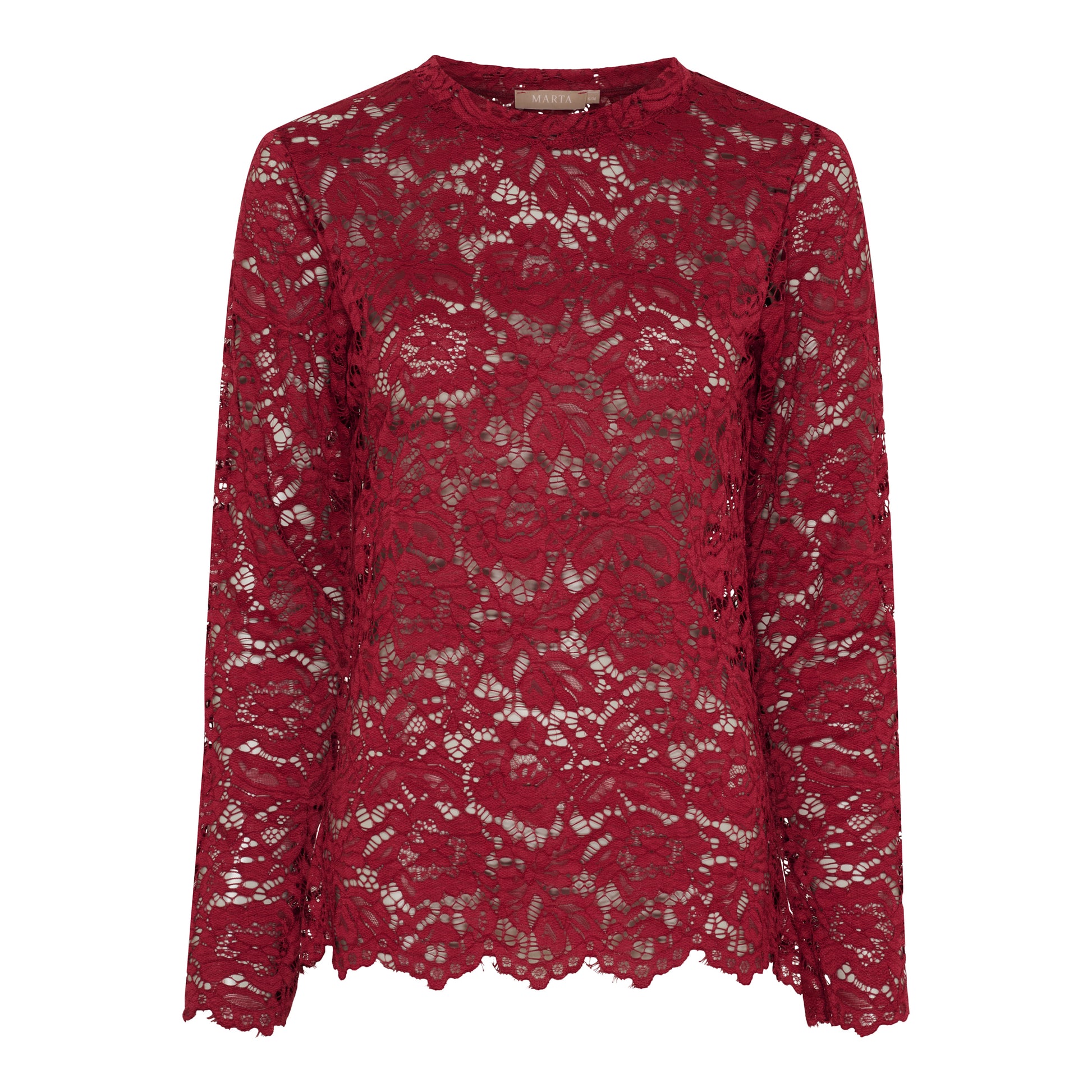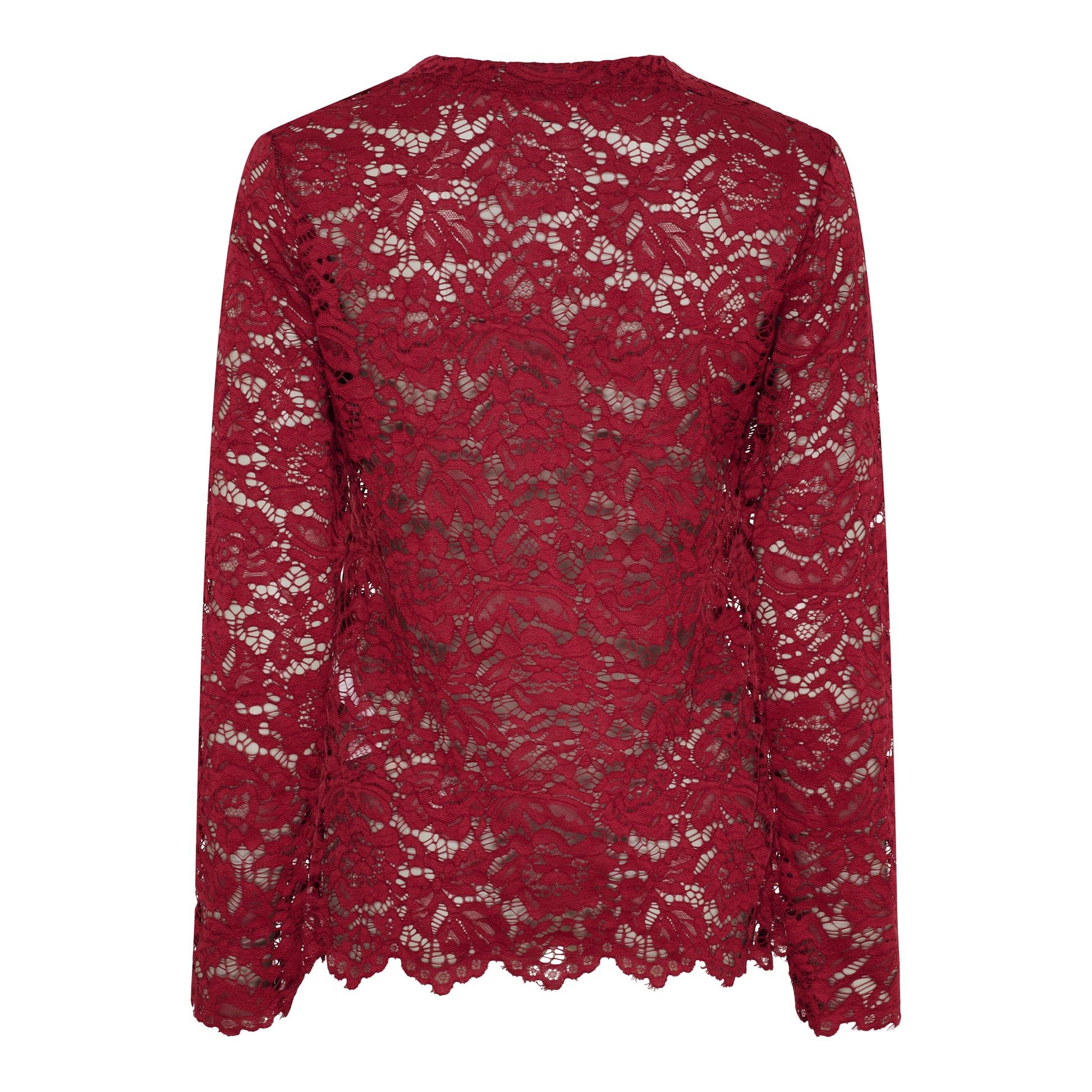 Kaunis pitsipusero miellyttävän joustavaa kangasta. Hieman pidempi malli pitkillä hihoilla ja korkealla pääntiellä. Toimii hyvin aluspuserona!