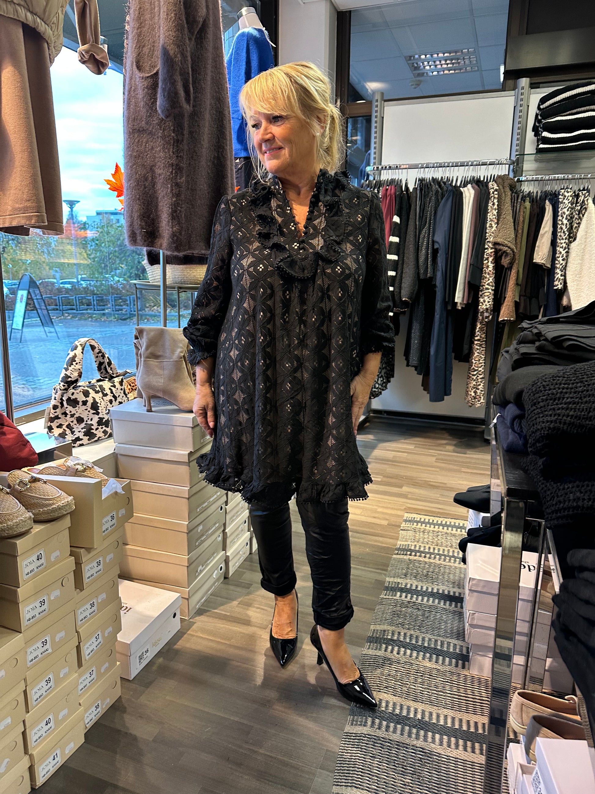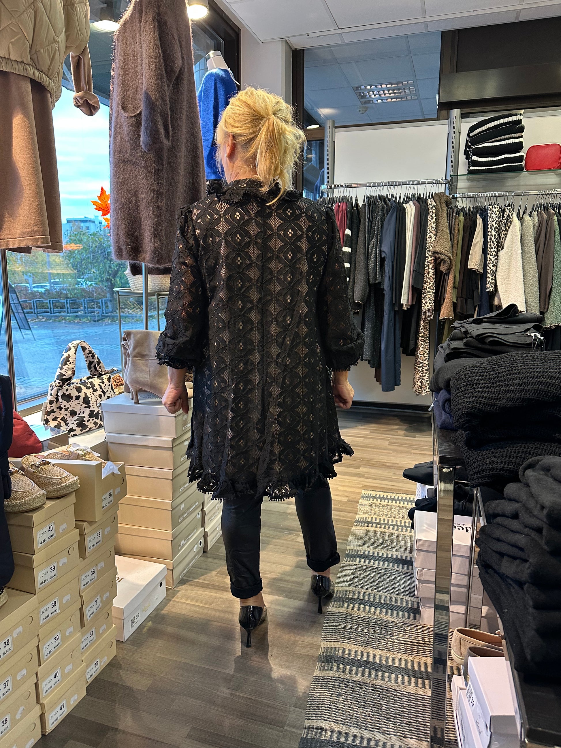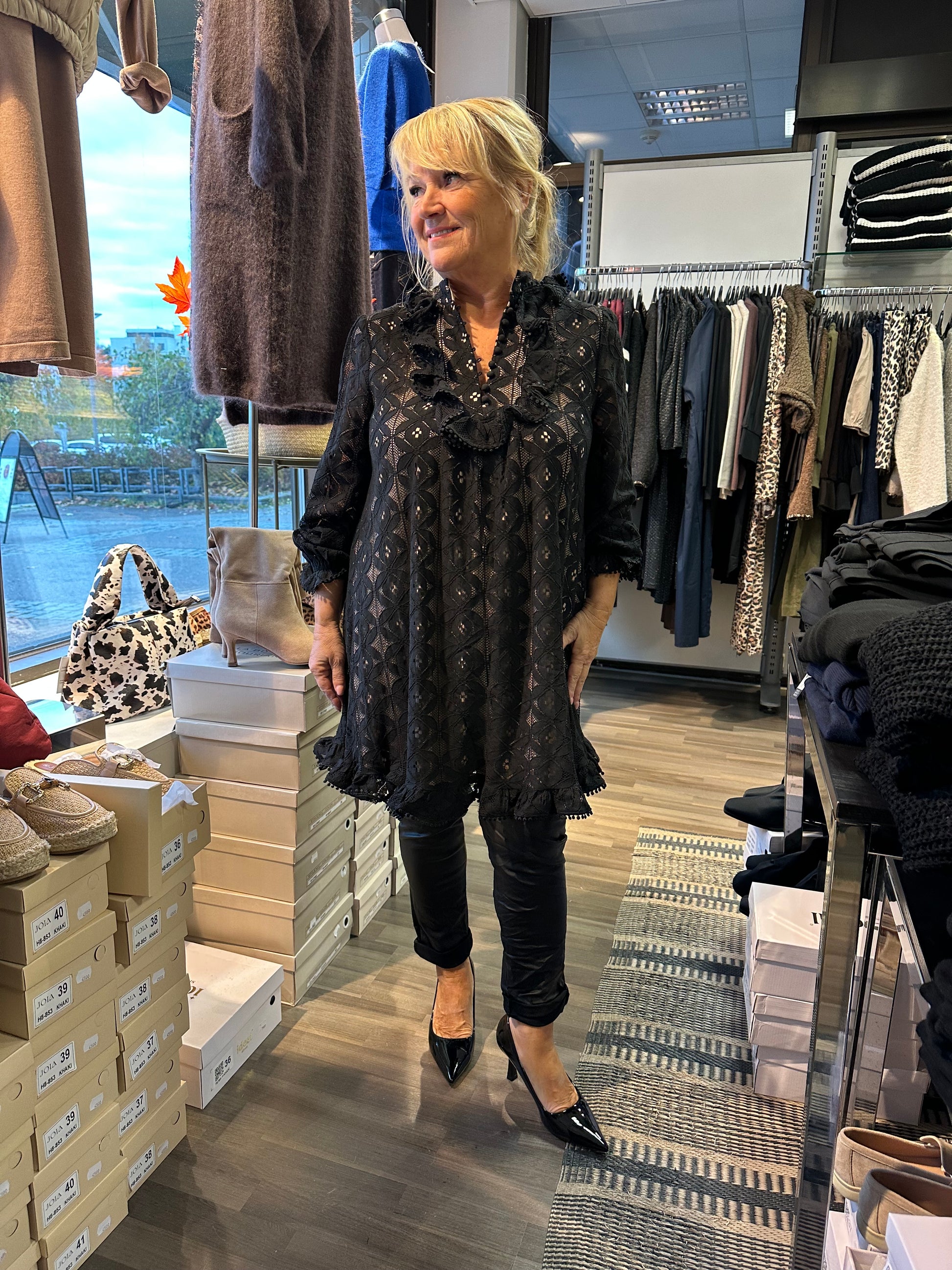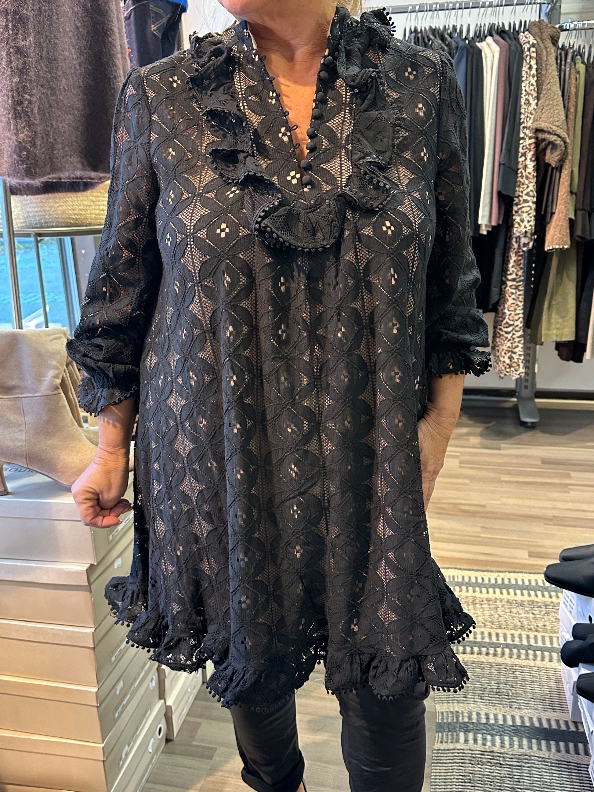 Kaunis pitsitunika/mekko. Pitkät hihat. Napit edessä pääntiellä. Alla vuori.