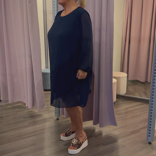Reilumman kokoinen vuorellinen sifonkitunika/mekko. Päällikankaassa pliseerausta. Mukava joustava vuori. Vuorettomat hihat.