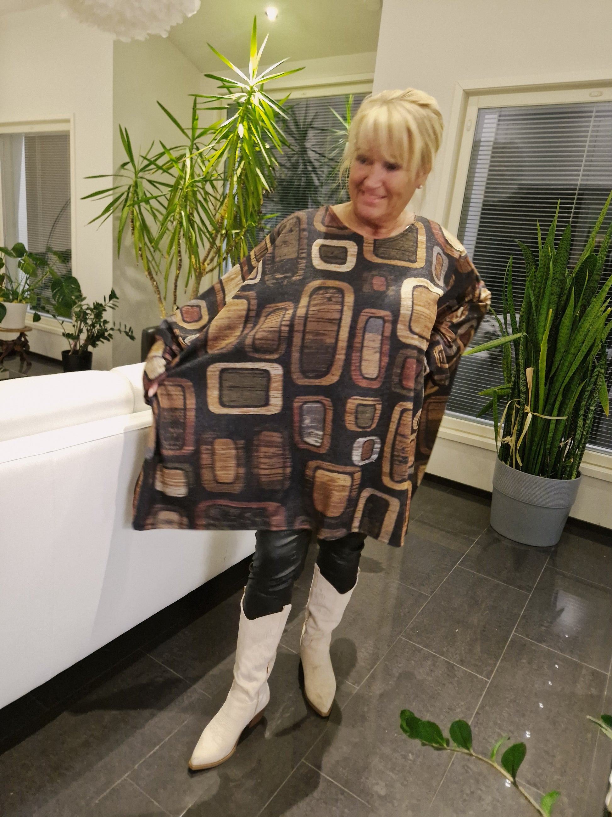 O-aukkoinen pääntie. Ns. Laatikkomallinen suora tunika, rinnanympärys jopa 200cm!