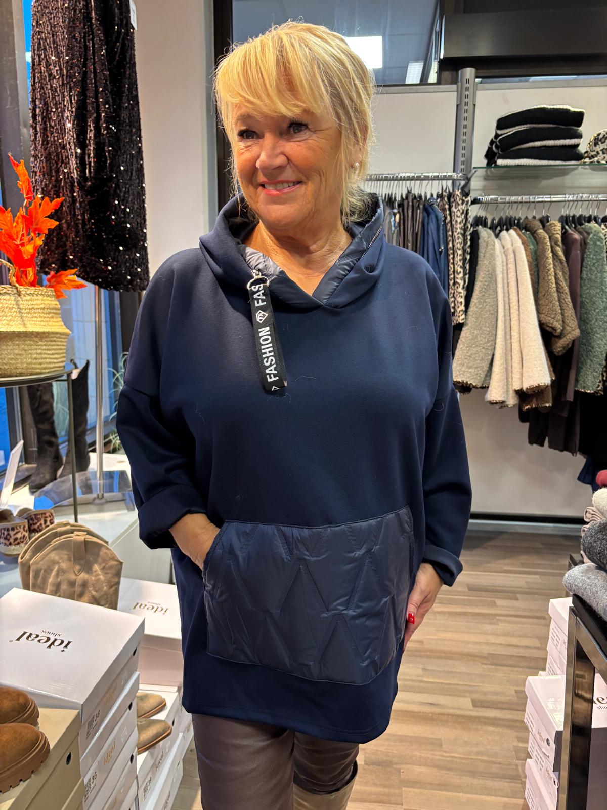Tässä hupparissa reilumpi mitoitus! Kivat yksityiskohdat, edessä tikattu kengurutasku ja hupun reunassa tikkaus ja vetskari.
