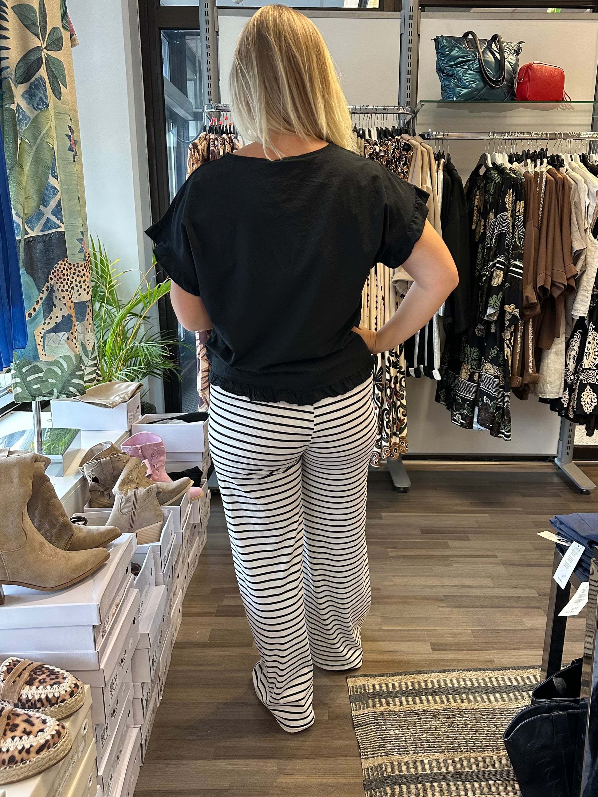 Ribbineulottu vapaa-ajan housu musta