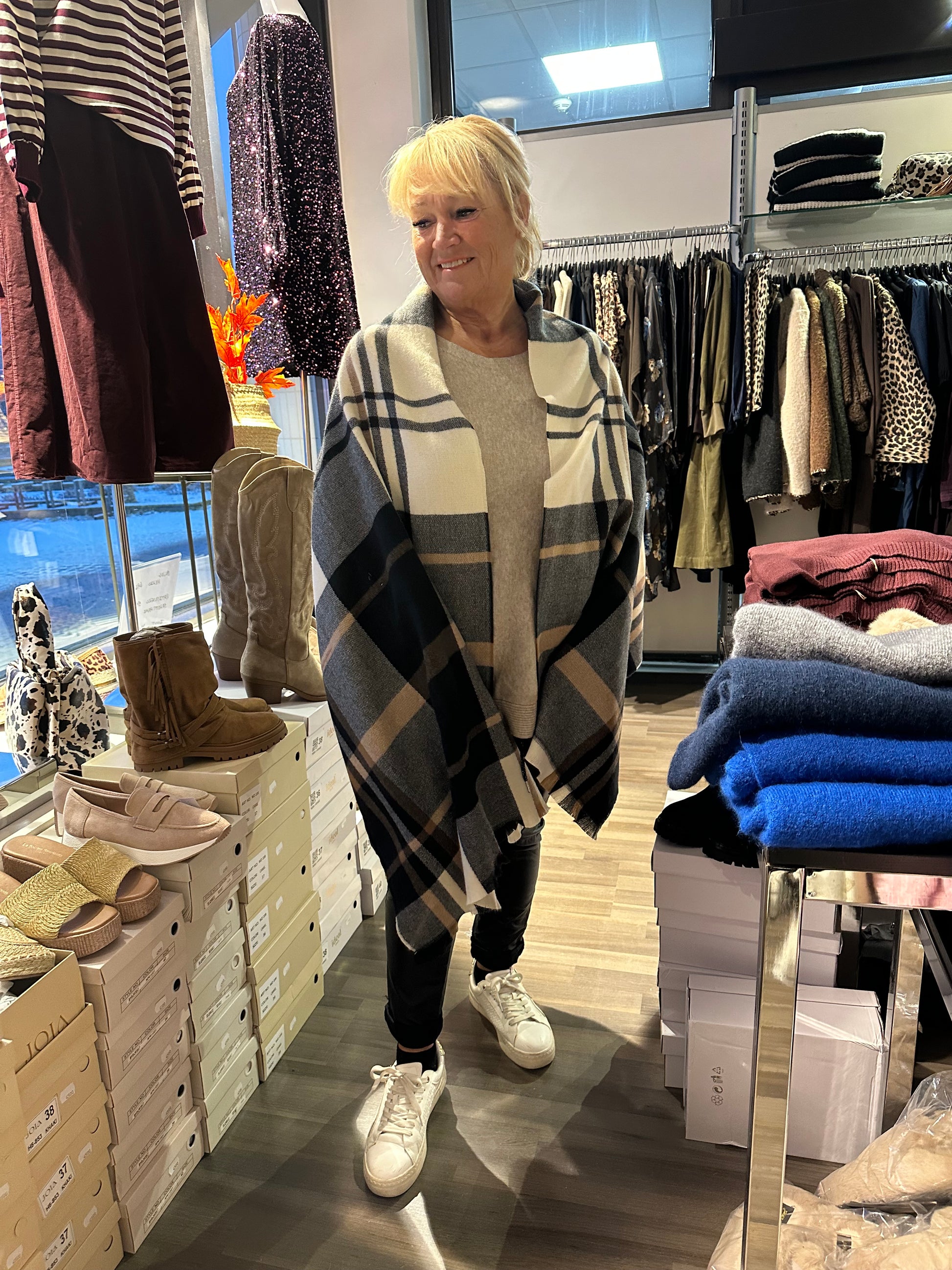 Pehmeä ruudullinen kaulahuivi.