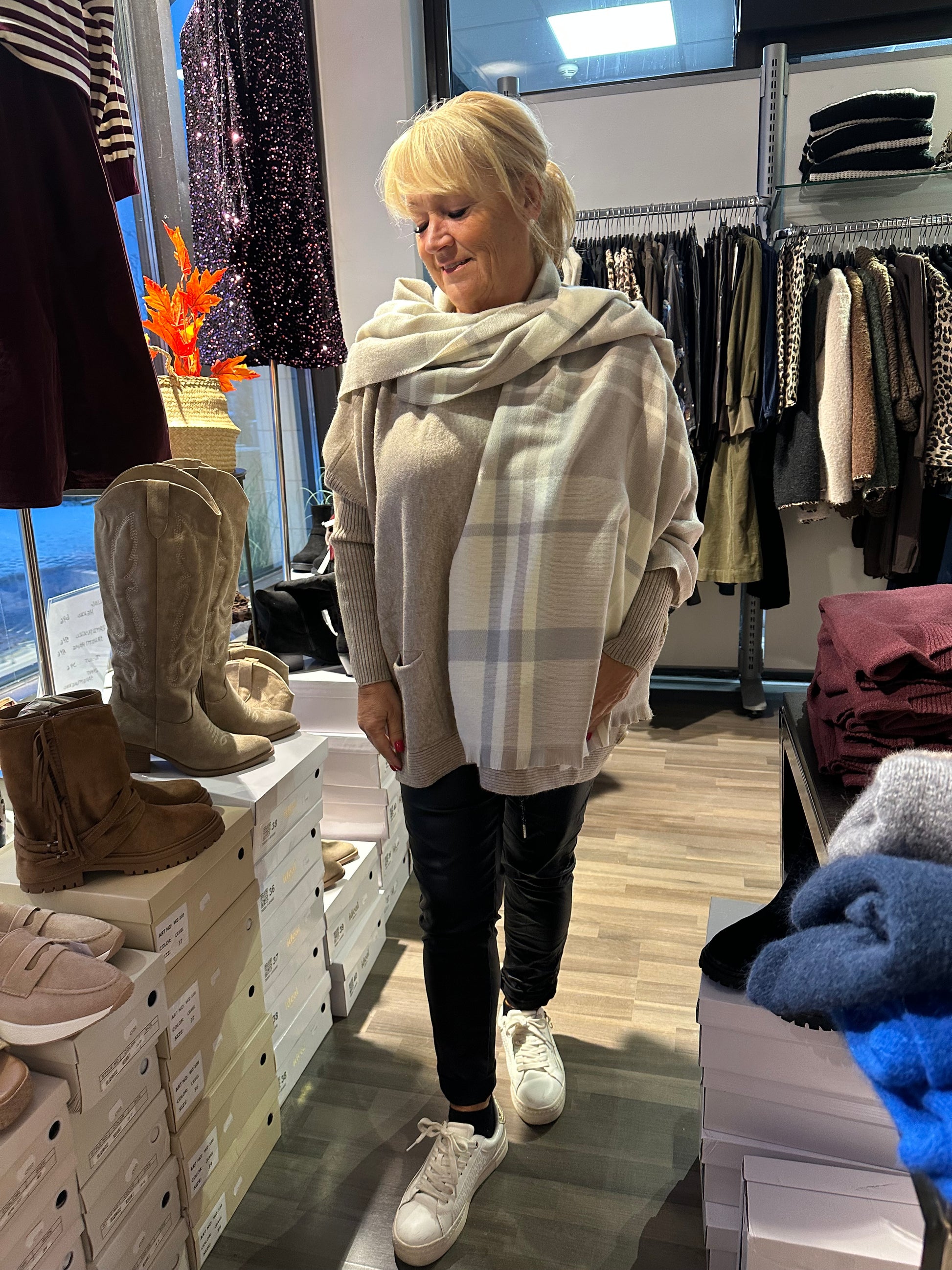 Ruutu kaulahuivi vaalea