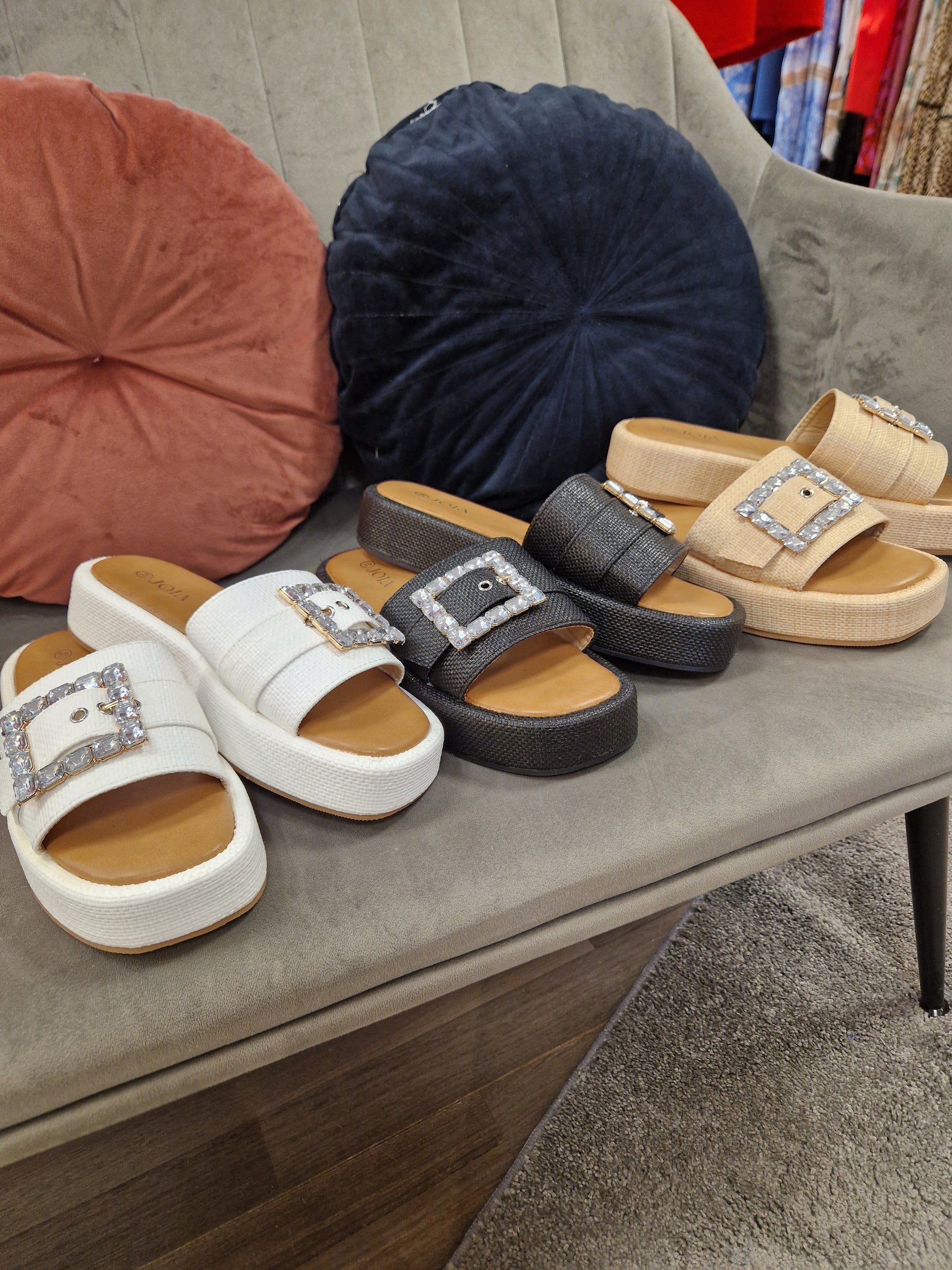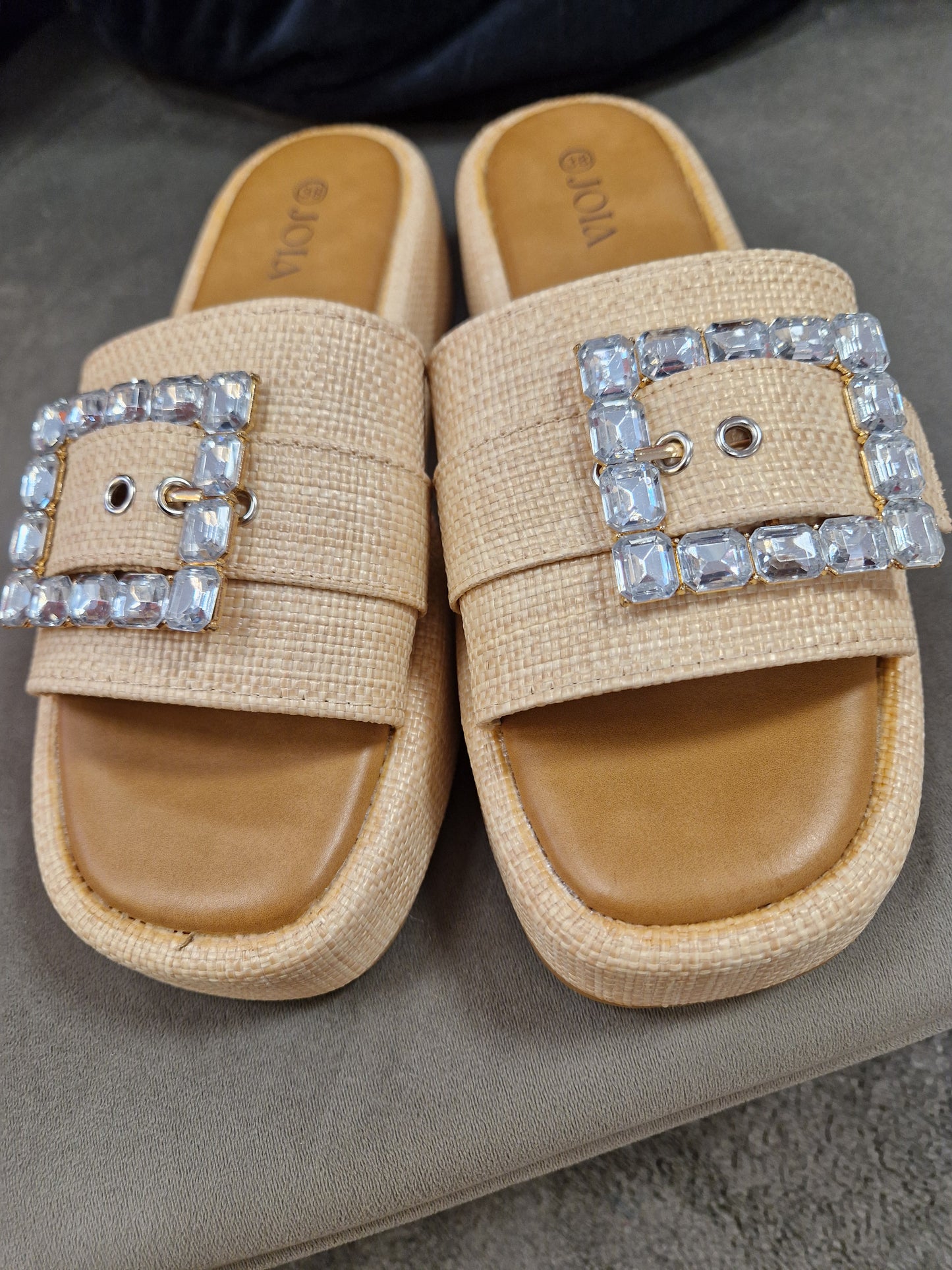 Kevyet sandaalit, jossa strassi koriste. Pehmeä sisäpohja