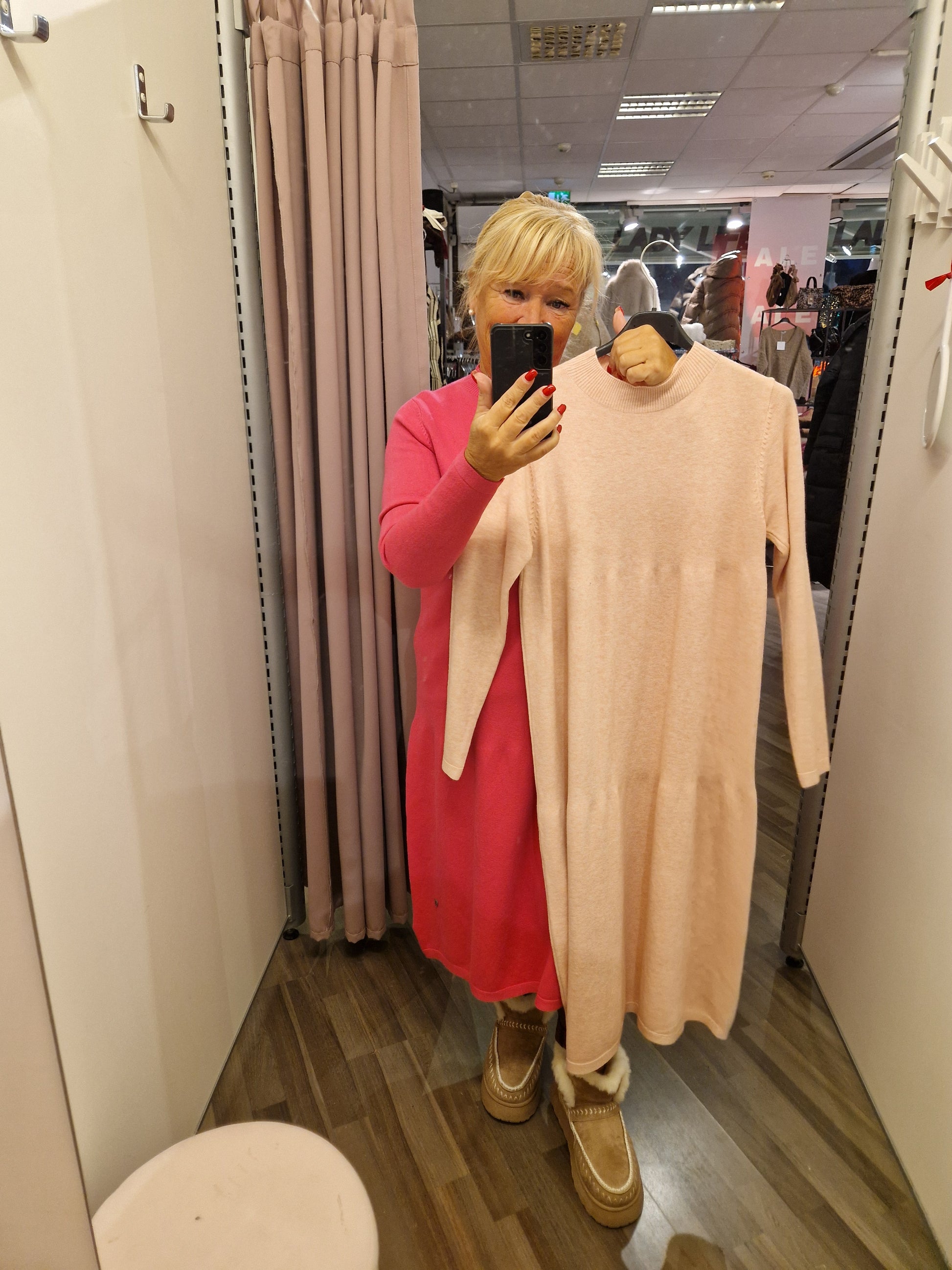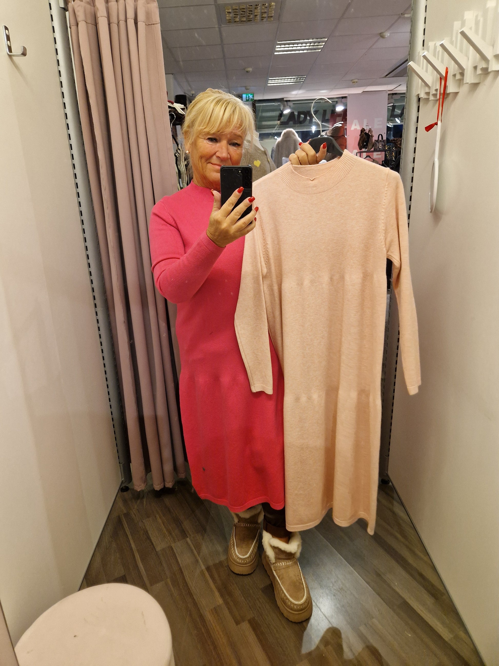 Sirompi midimittainen neulemekko. Kilpparikaulus.