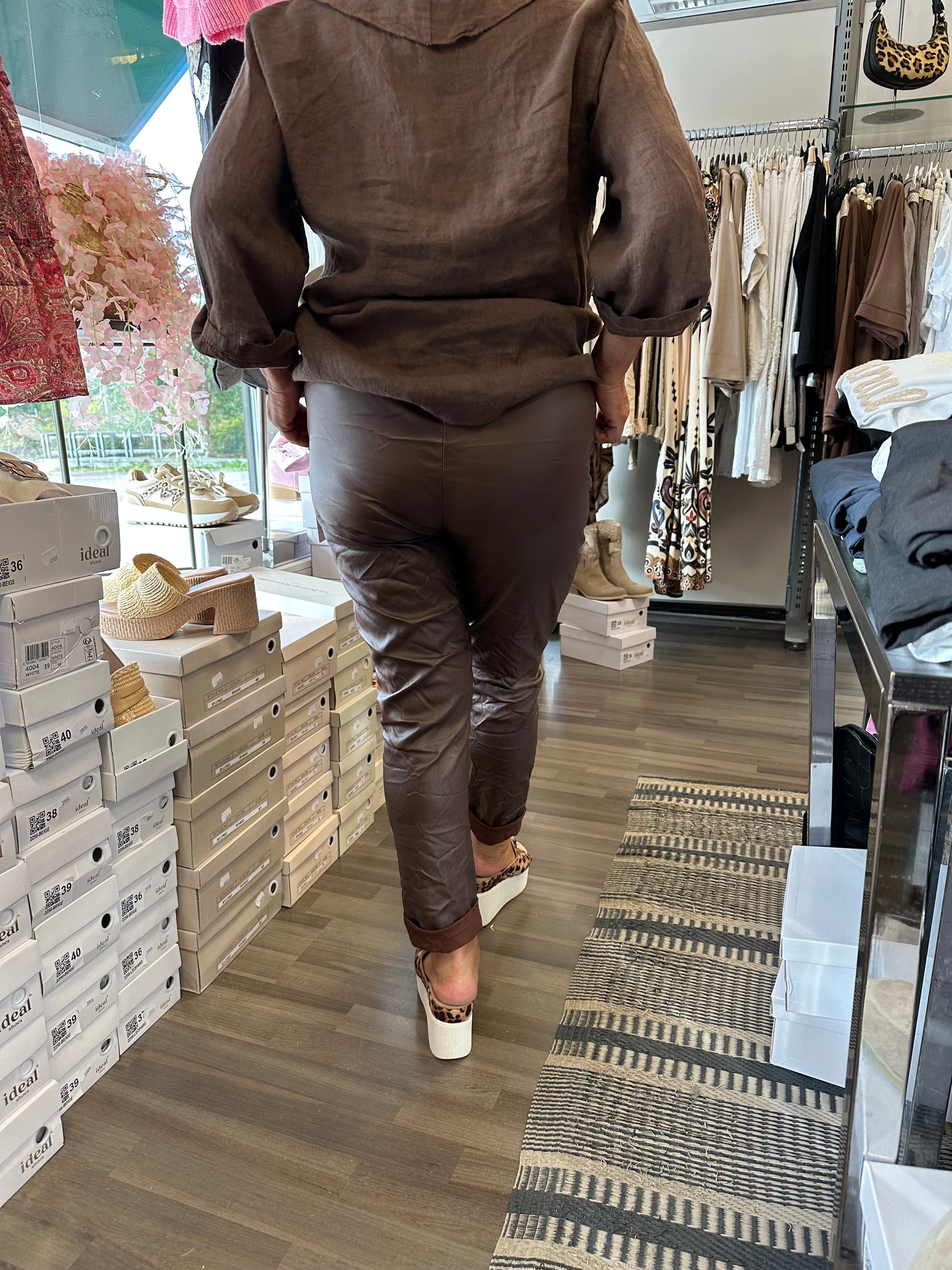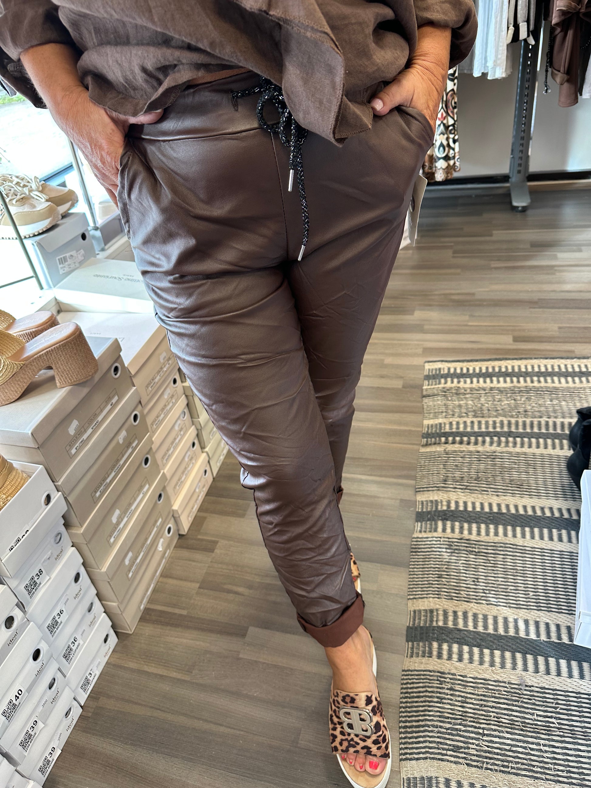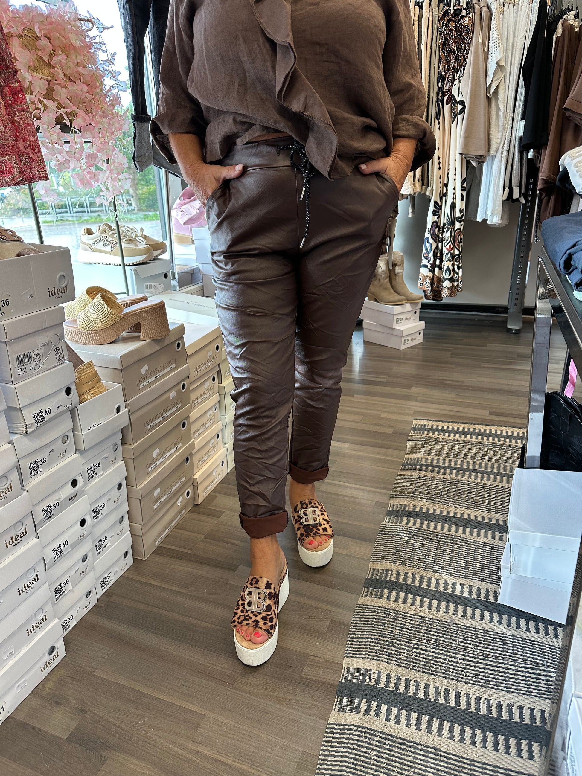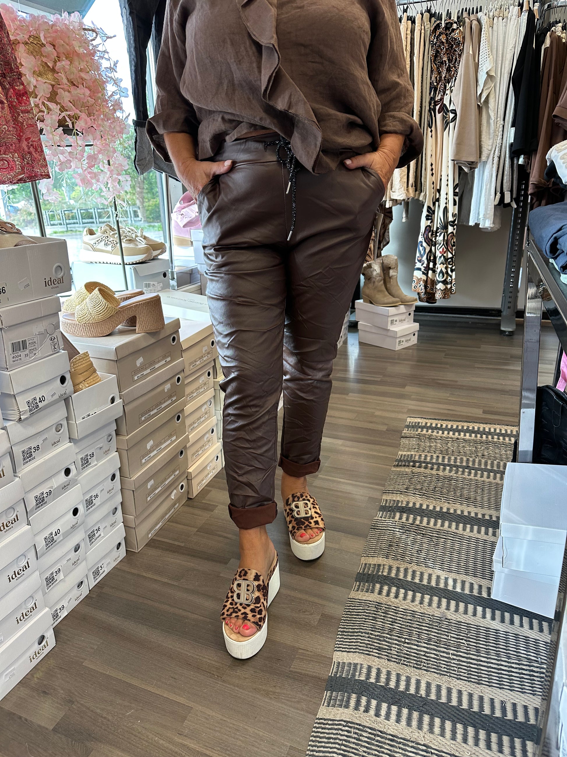 Stretch keinonahkahousu tummanruskea